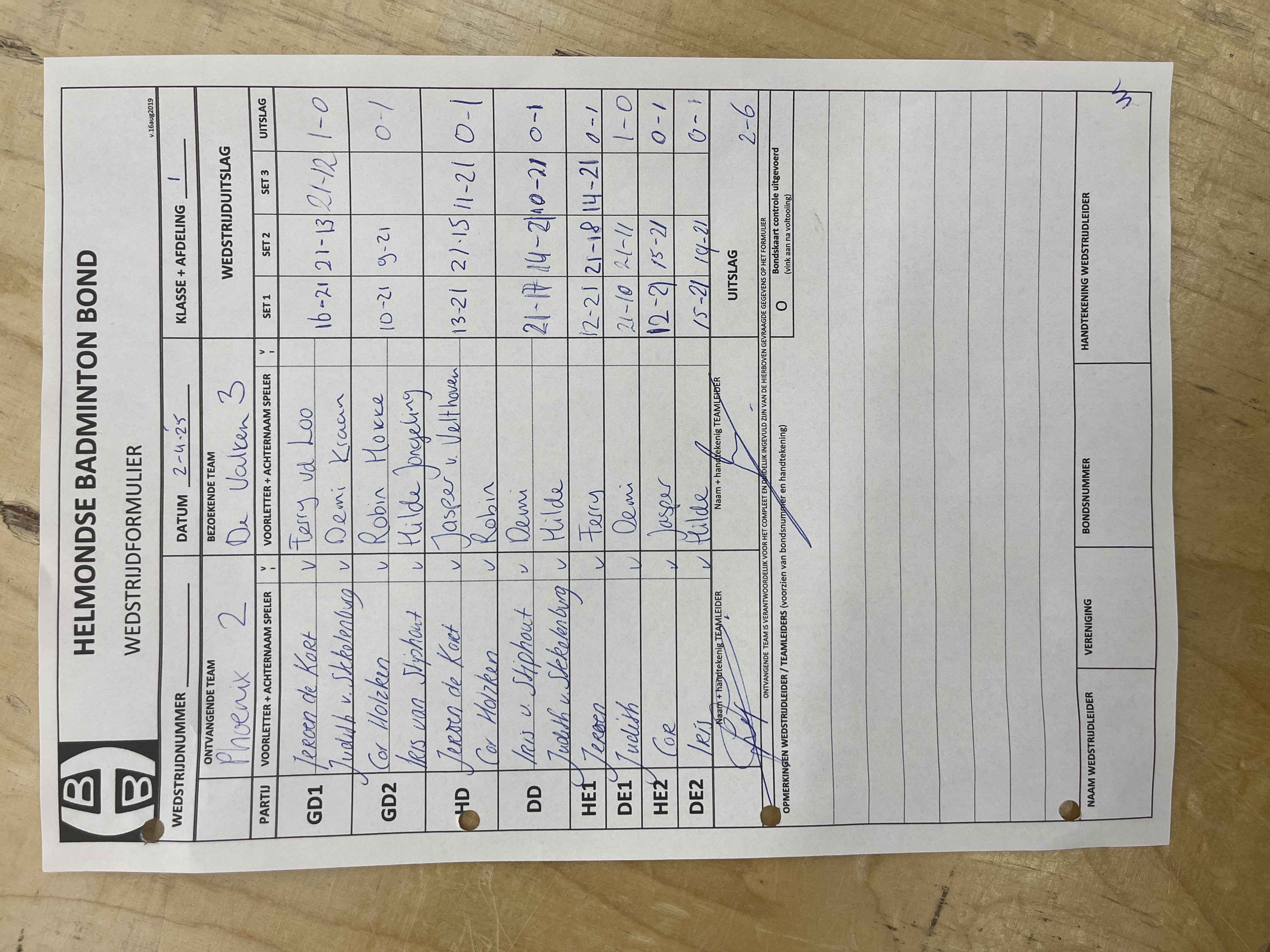 | 1083 | wo. 02-04-2025 | Phoenix 2 | - | De Valken 3 | 3 | 2 - 6 | |||