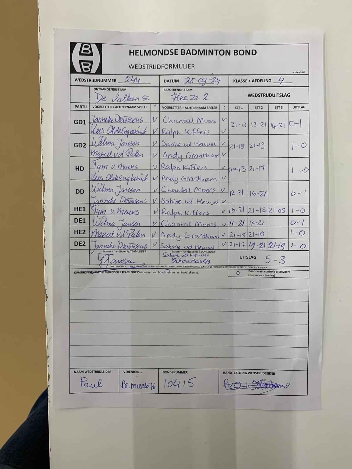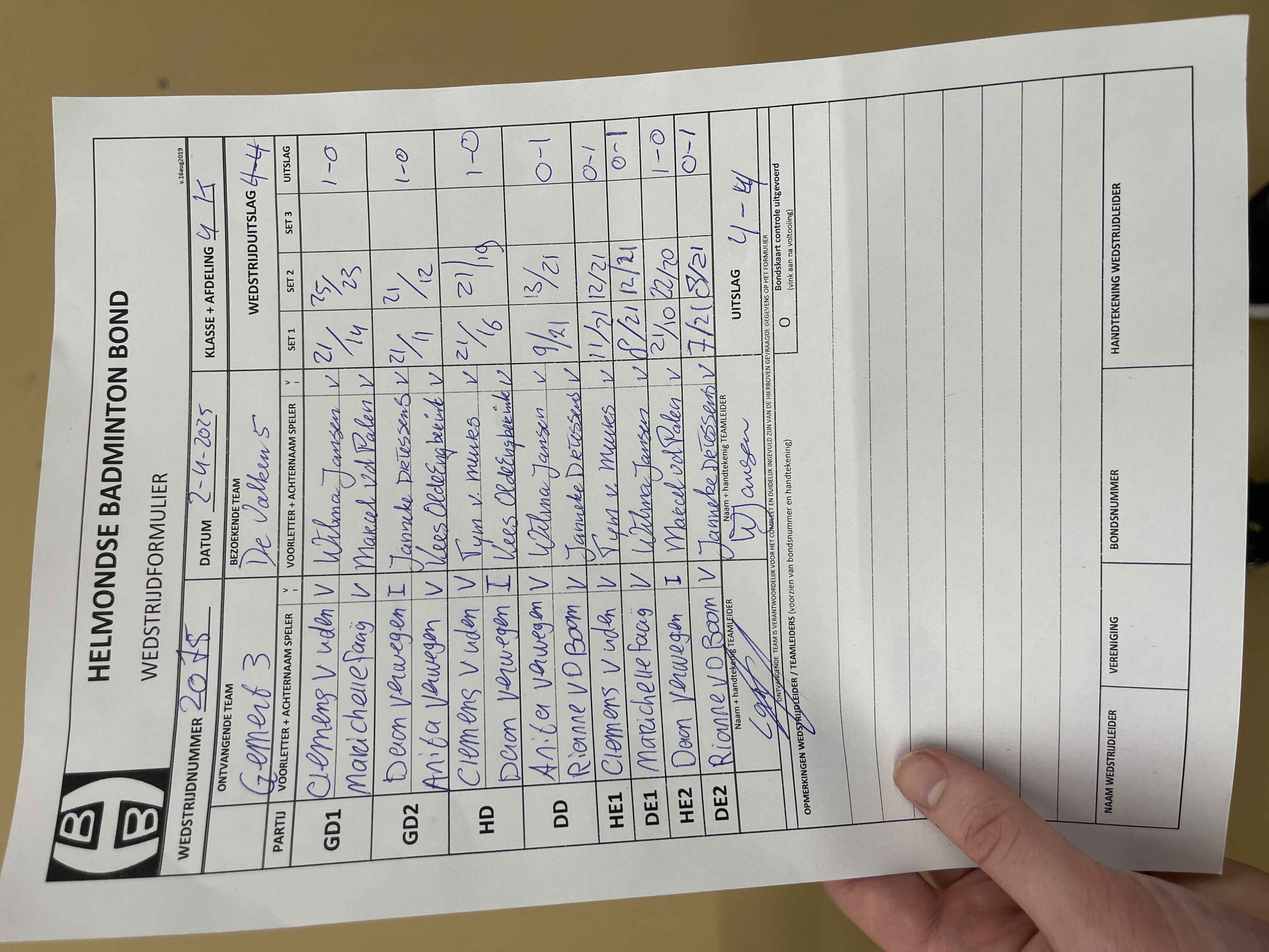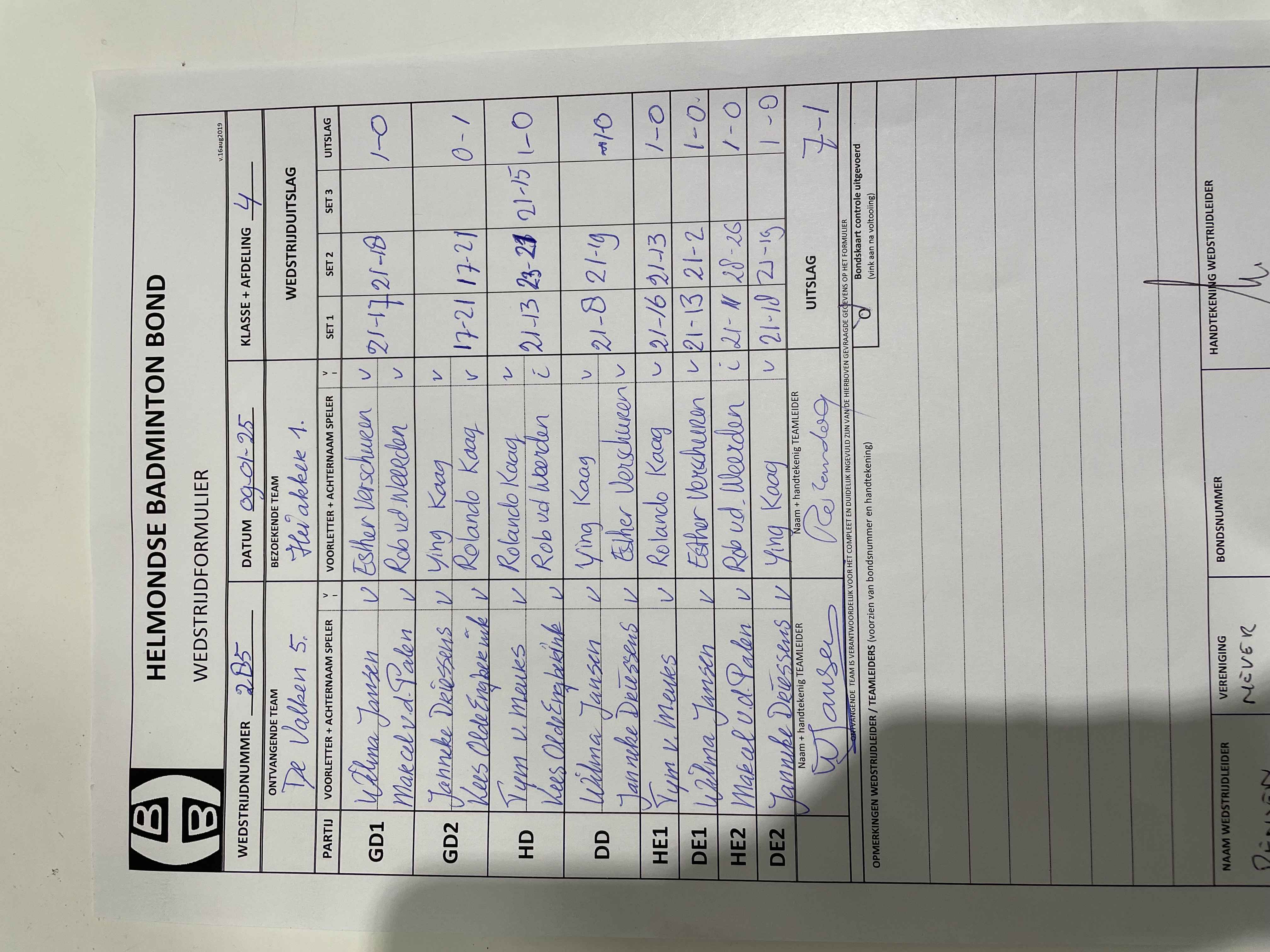 | 2069 | do. 27-03-2025 | De Valken 5 | - | Heeze 2 | 13 | 3 - 5 | |||