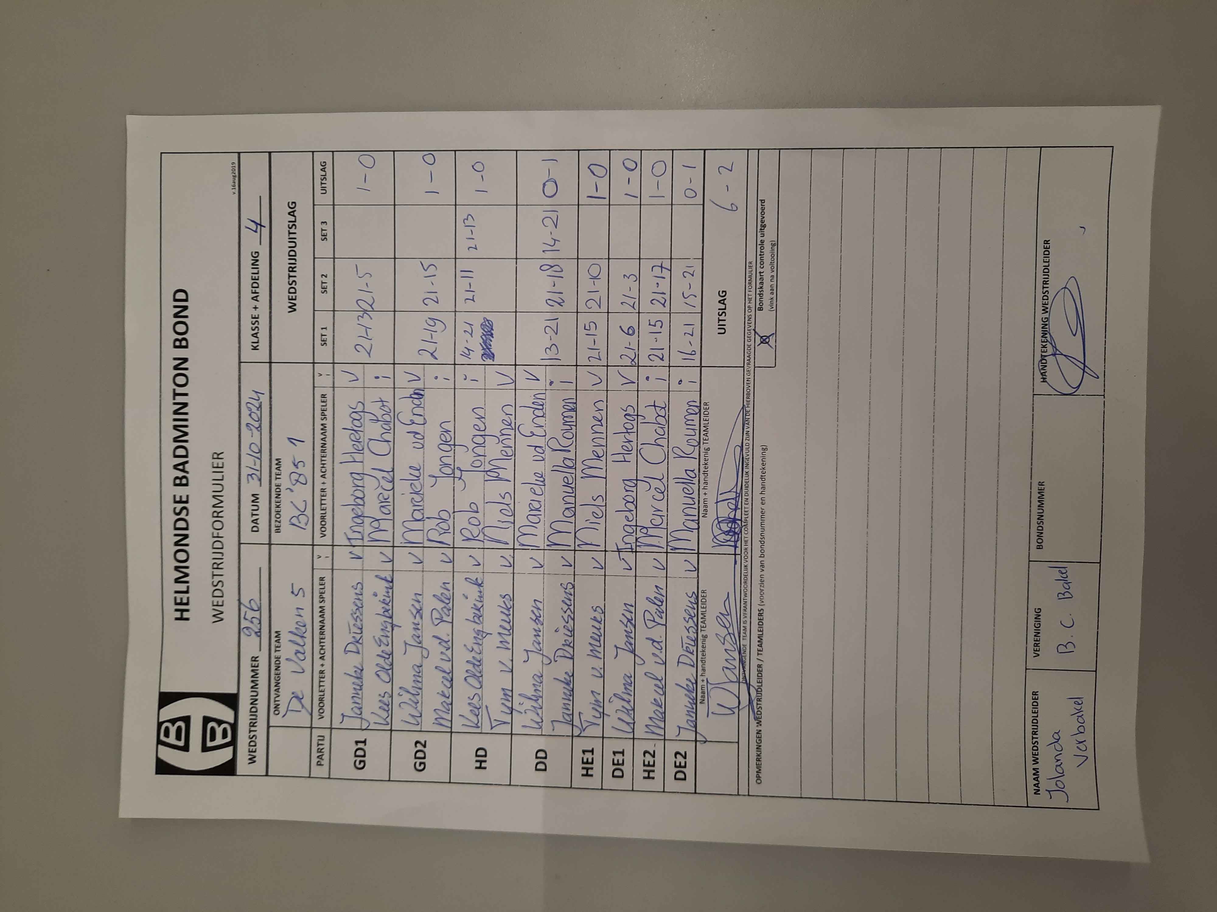 | 256 | do. 31-10-2024 | De Valken 5 | - | BC '85 1 | 14 | 6 - 2 | |||