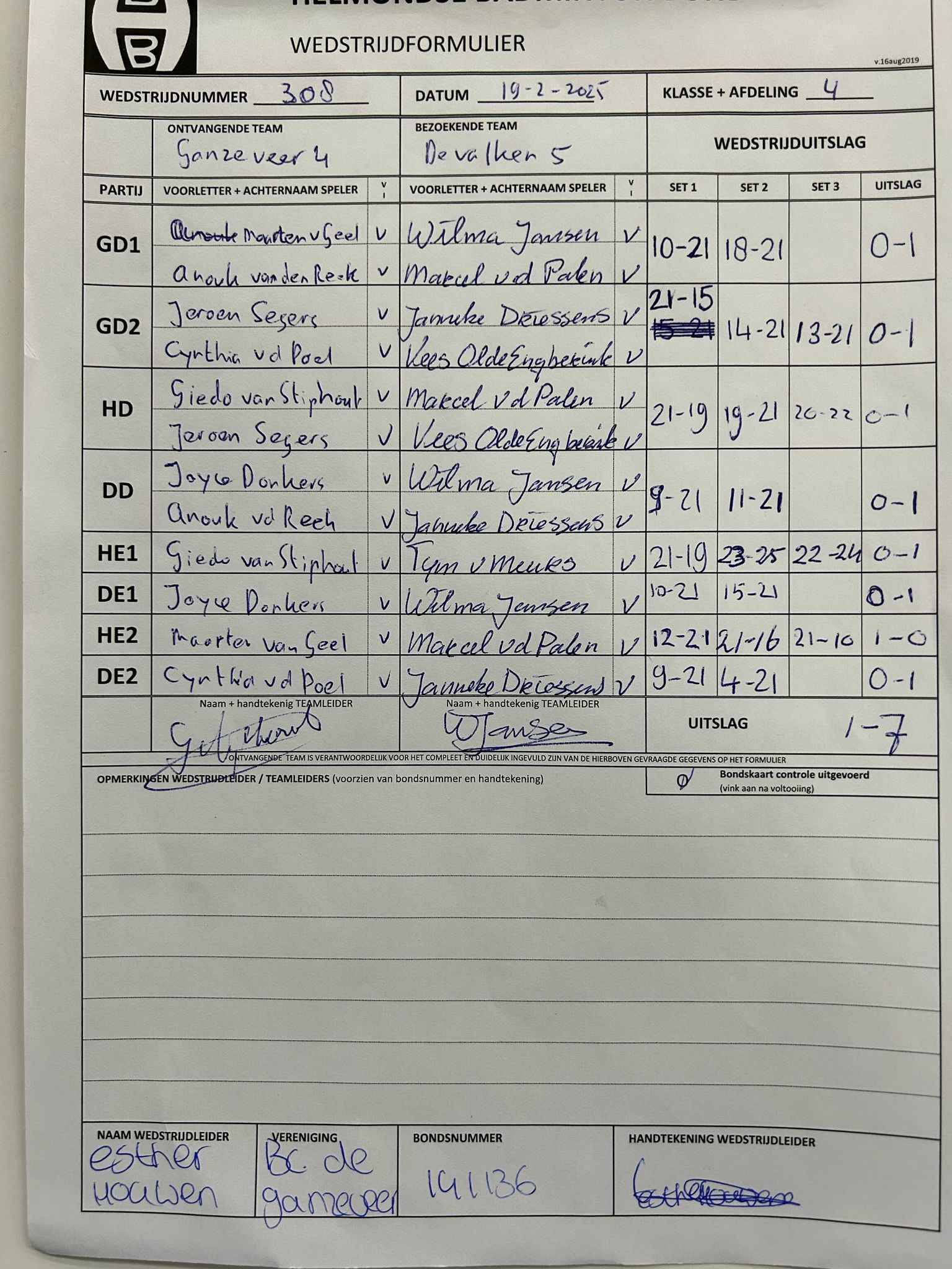 | 308 | wo. 19-02-2025 | Ganzeveer 4 | - | De Valken 5 | 15 | 1 - 7 | |||