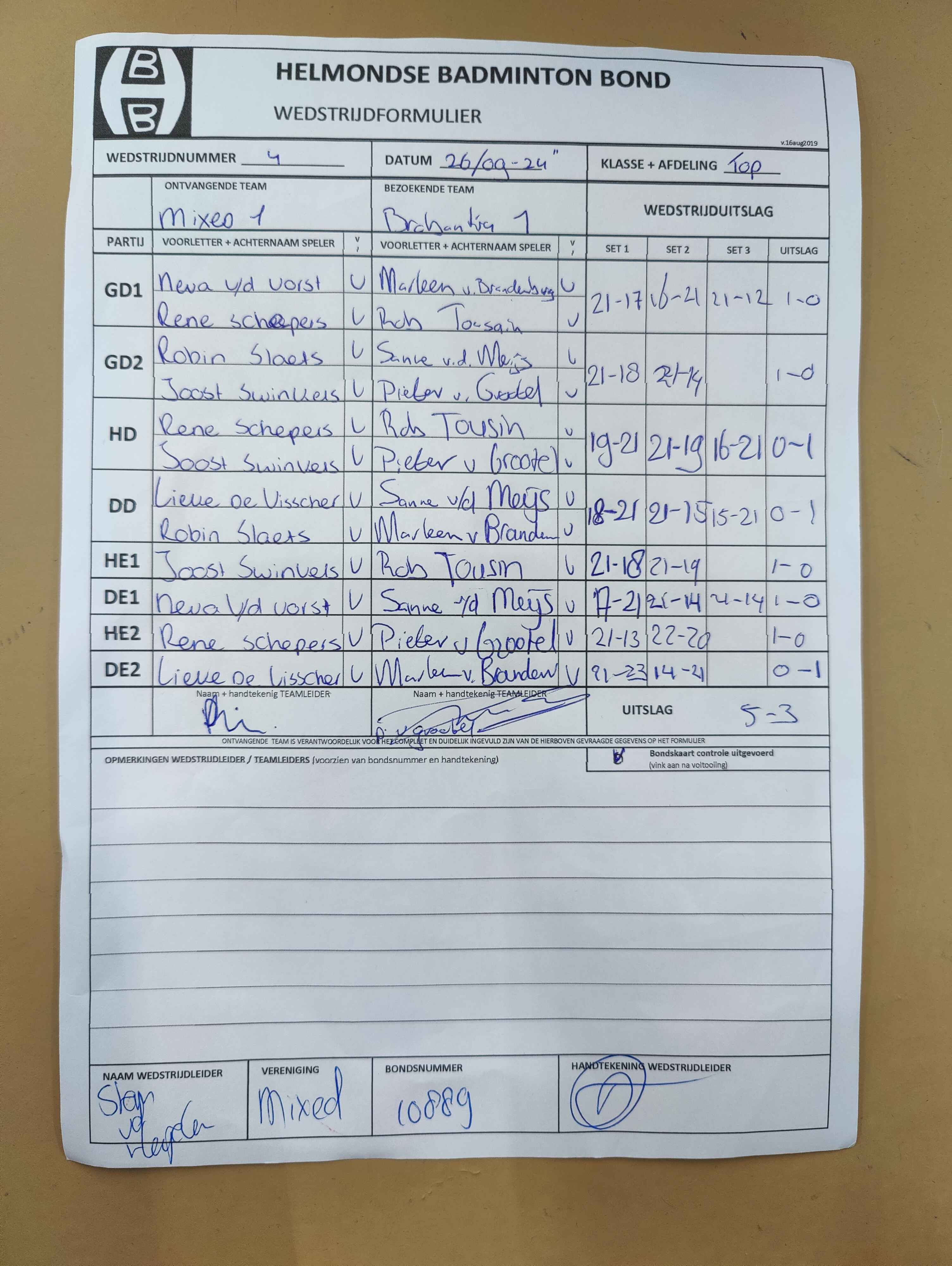 | 4 | do. 26-09-2024 | Mixed 1 | - | Brabantia 1 | 2 | 5 - 3 | |||