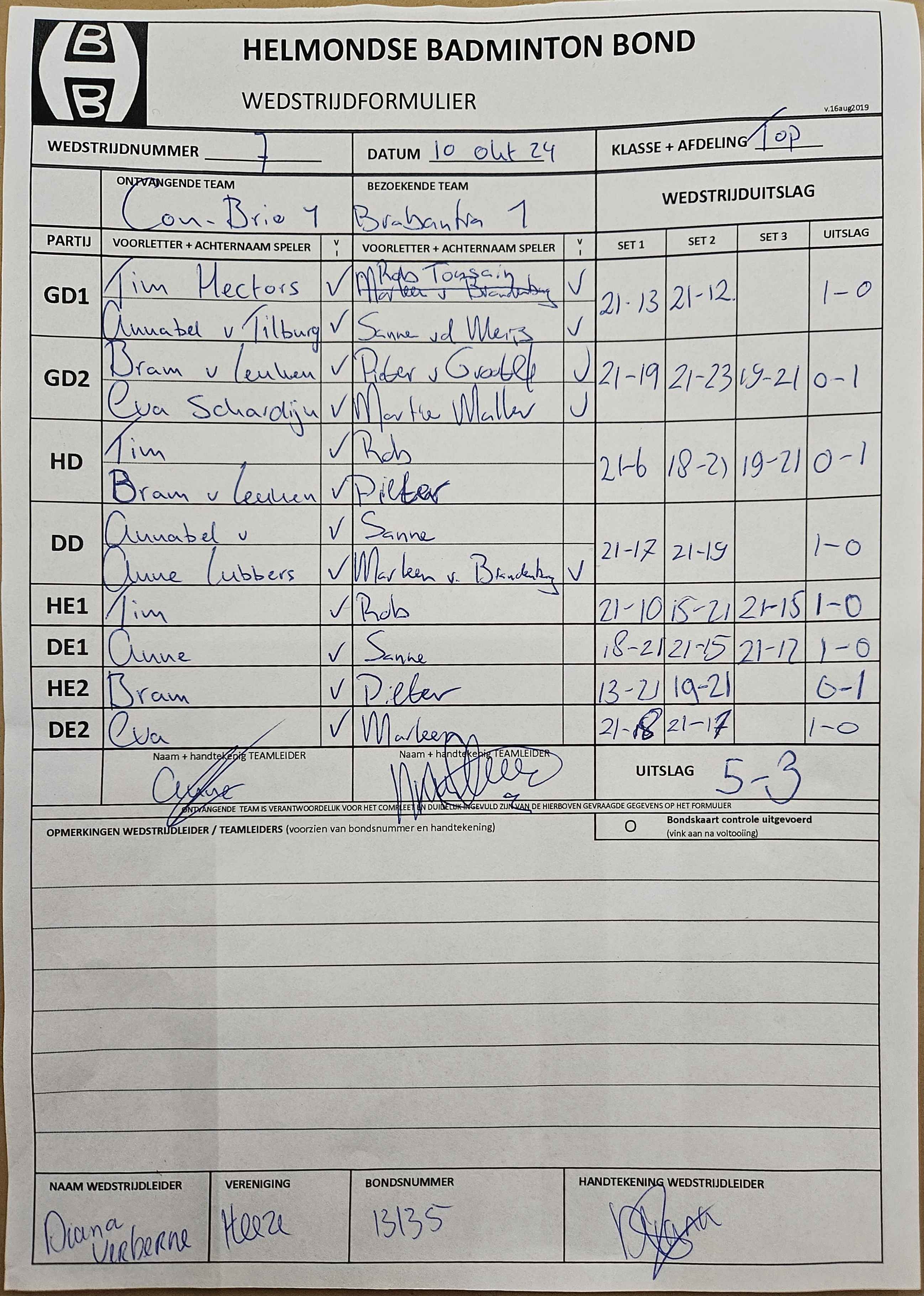 | 1018 | wo. 19-03-2025 | Mierlo 1 | - | Brabantia 1 | 1 | 1 - 7 | |||