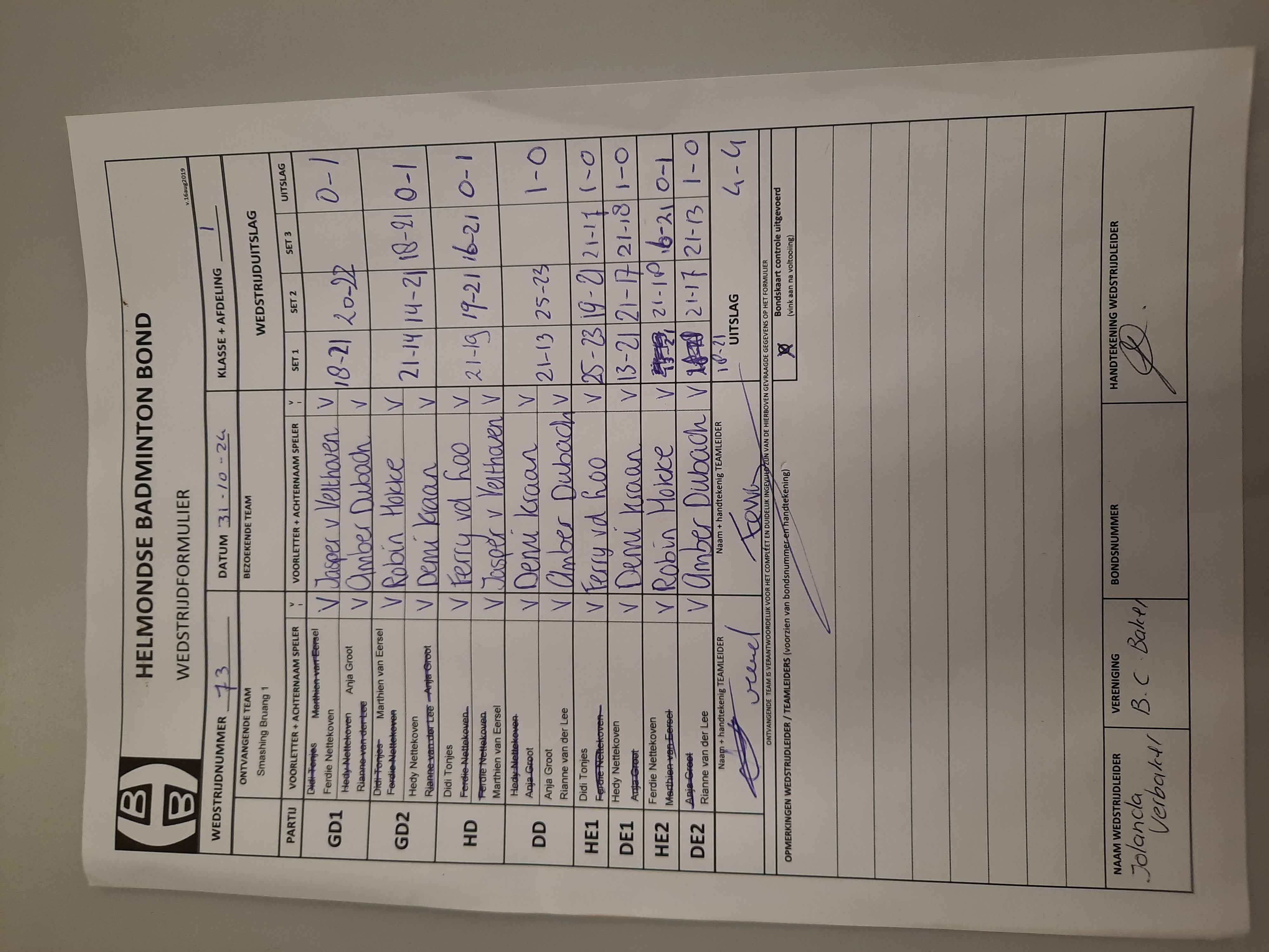 | 73 | do. 31-10-2024 | Smashing Bruang 1 | - | De Valken 3 | 2 | 4 - 4 | |||