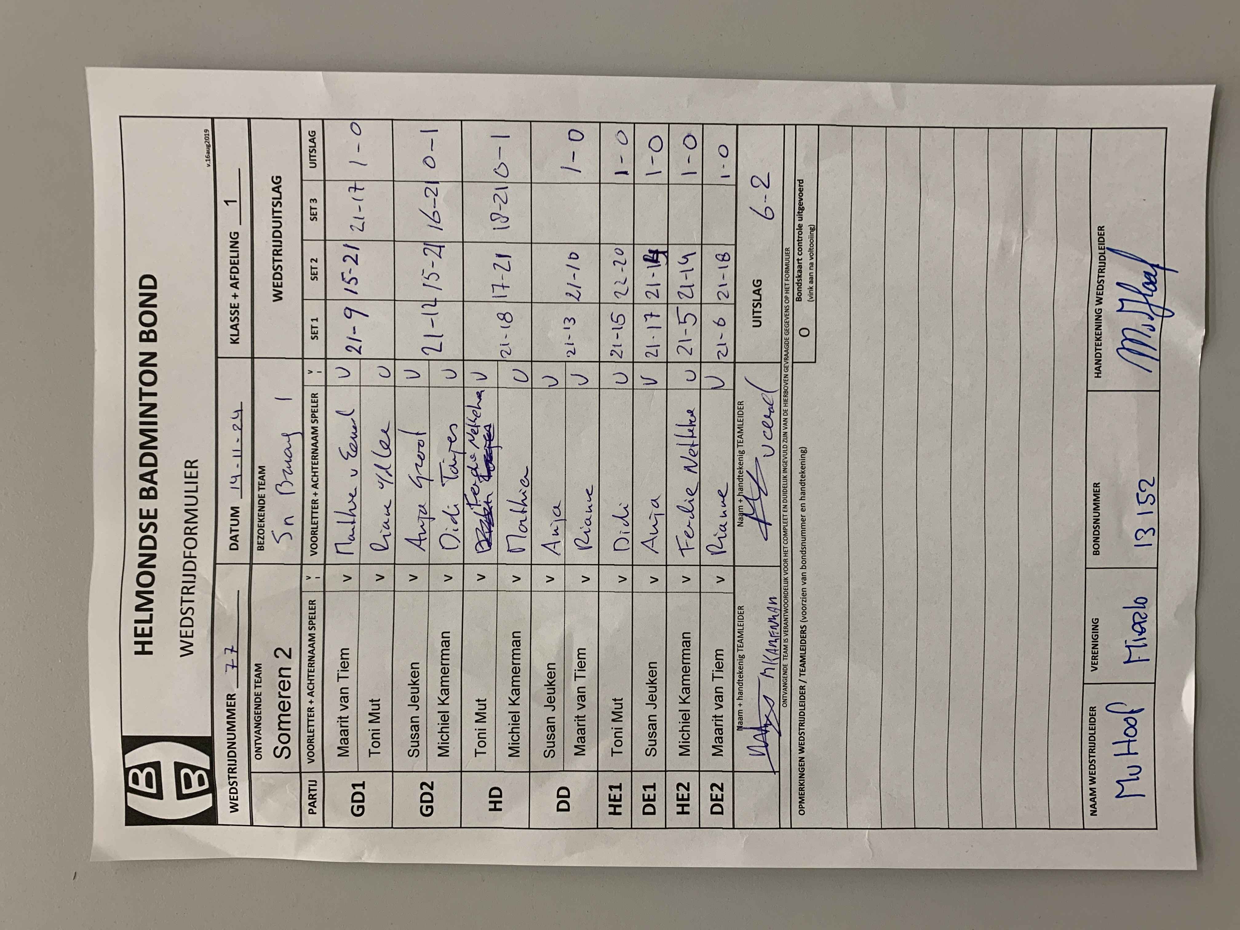 | 77 | do. 14-11-2024 | Someren 2 | - | Smashing Bruang 1 | 3 | 6 - 2 | |||