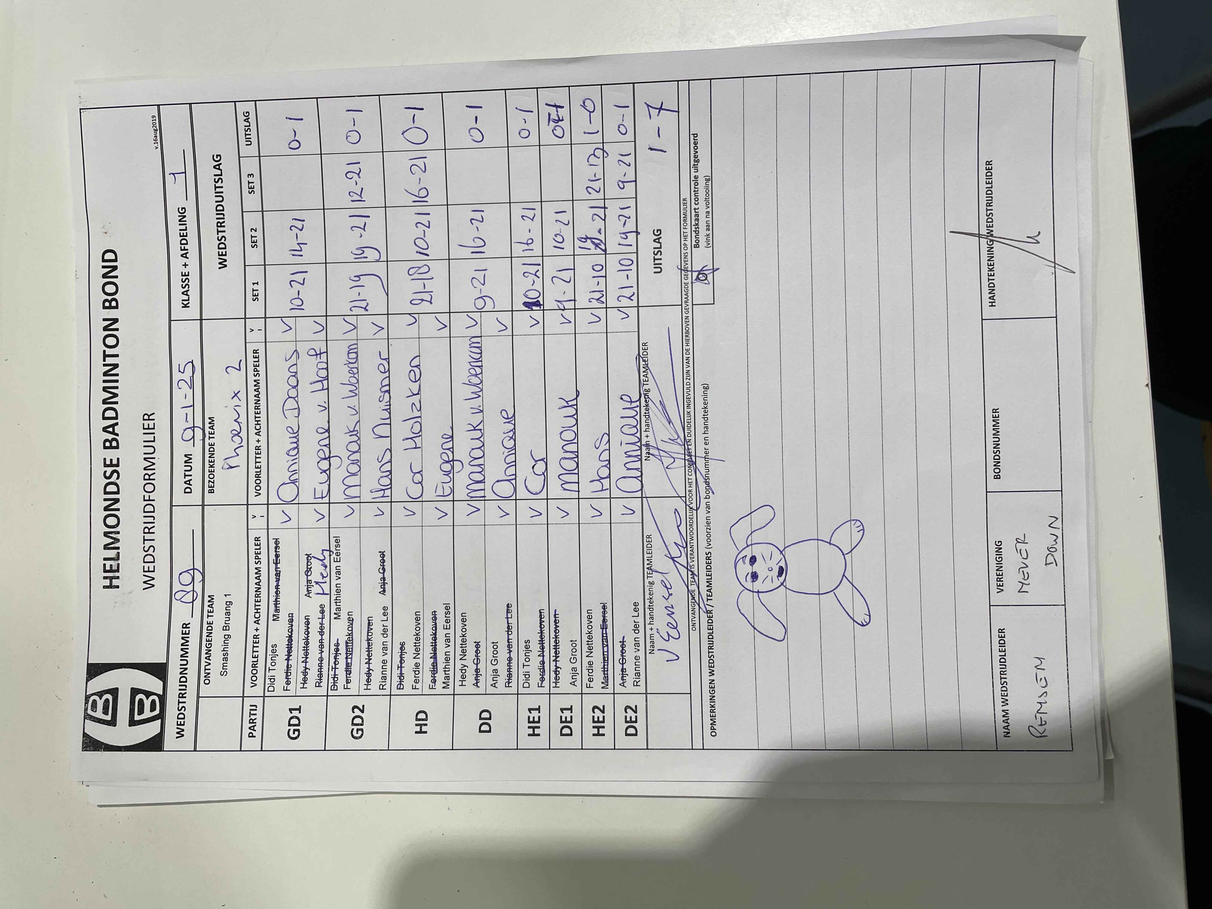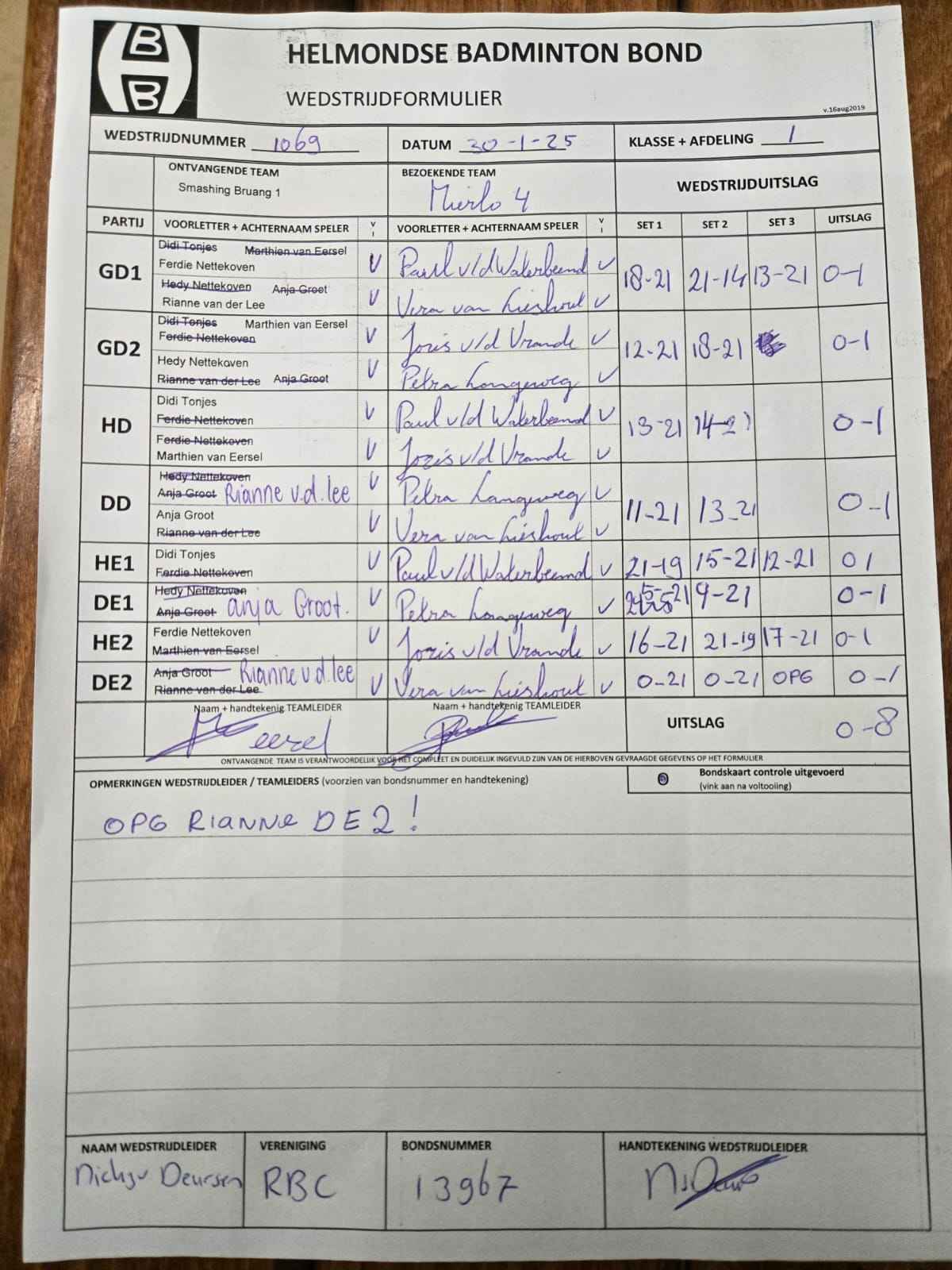 | 1069 | do. 30-01-2025 | Smashing Bruang 1 | - | Mierlo 4 | 3 | 0 - 8 | |||