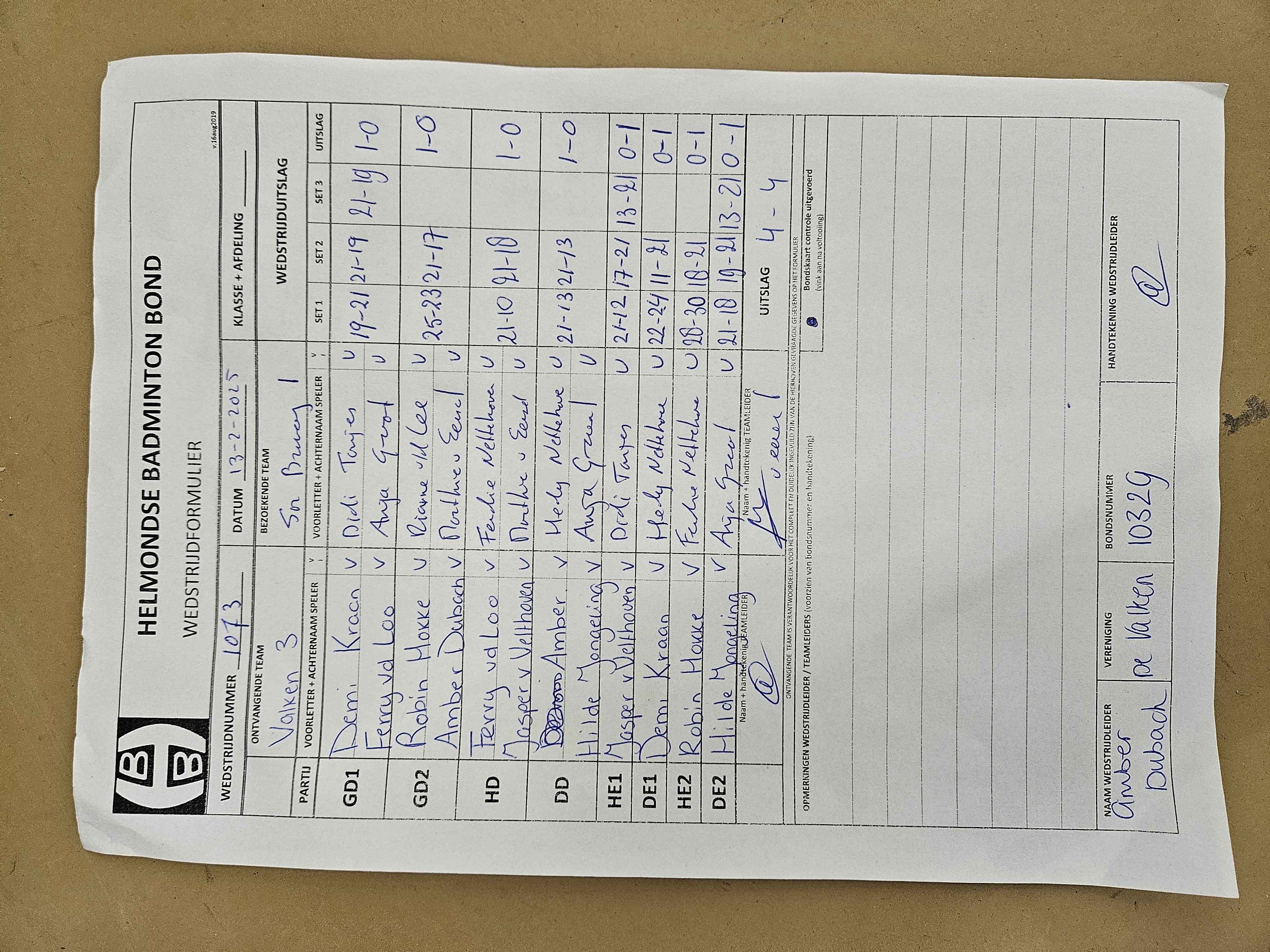 | 1073 | do. 13-02-2025 | De Valken 3 | - | Smashing Bruang 1 | 4 | 4 - 4 | |||