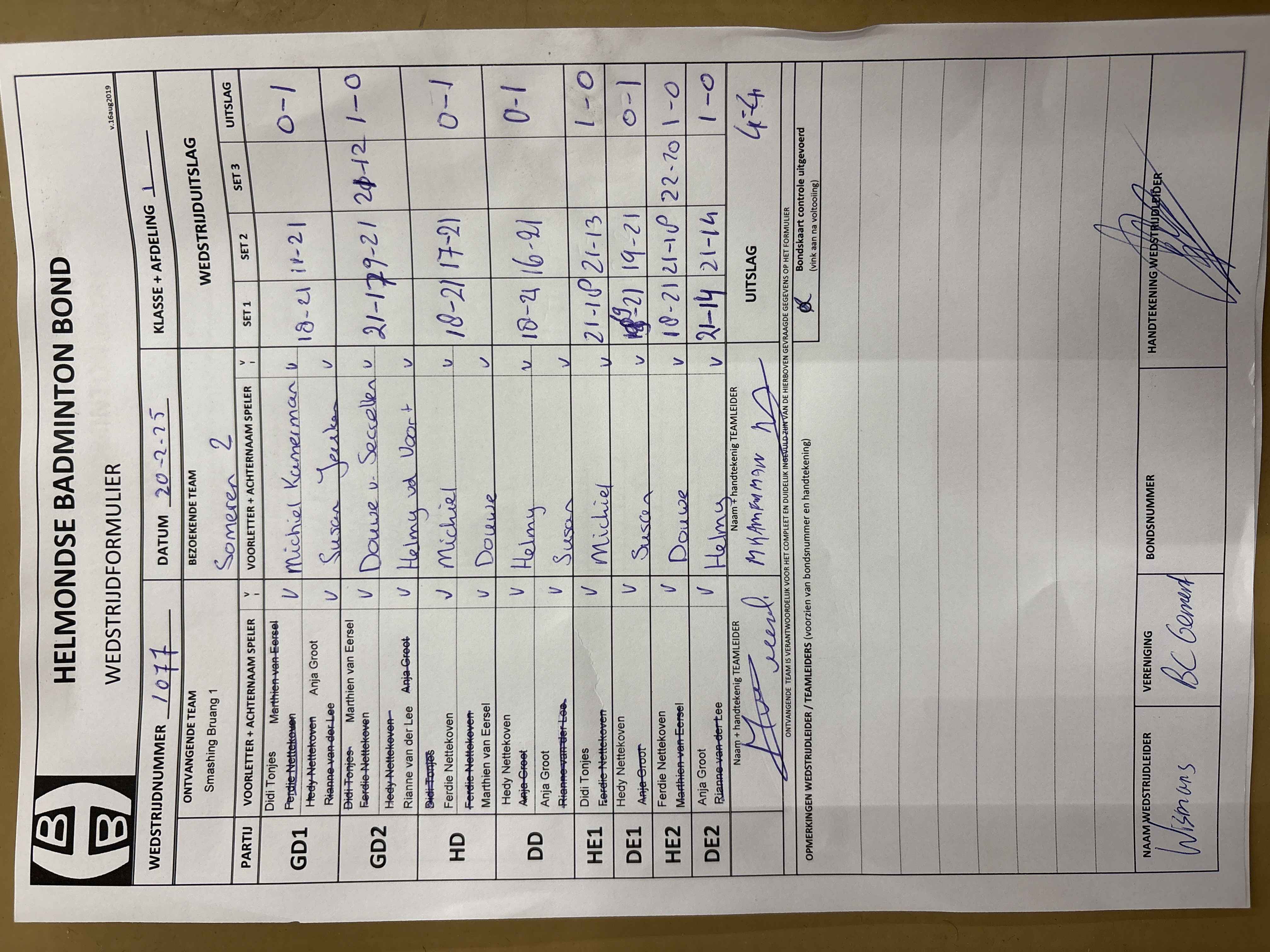 | 1077 | do. 20-02-2025 | Smashing Bruang 1 | - | Someren 2 | 3 | 4 - 4 | |||