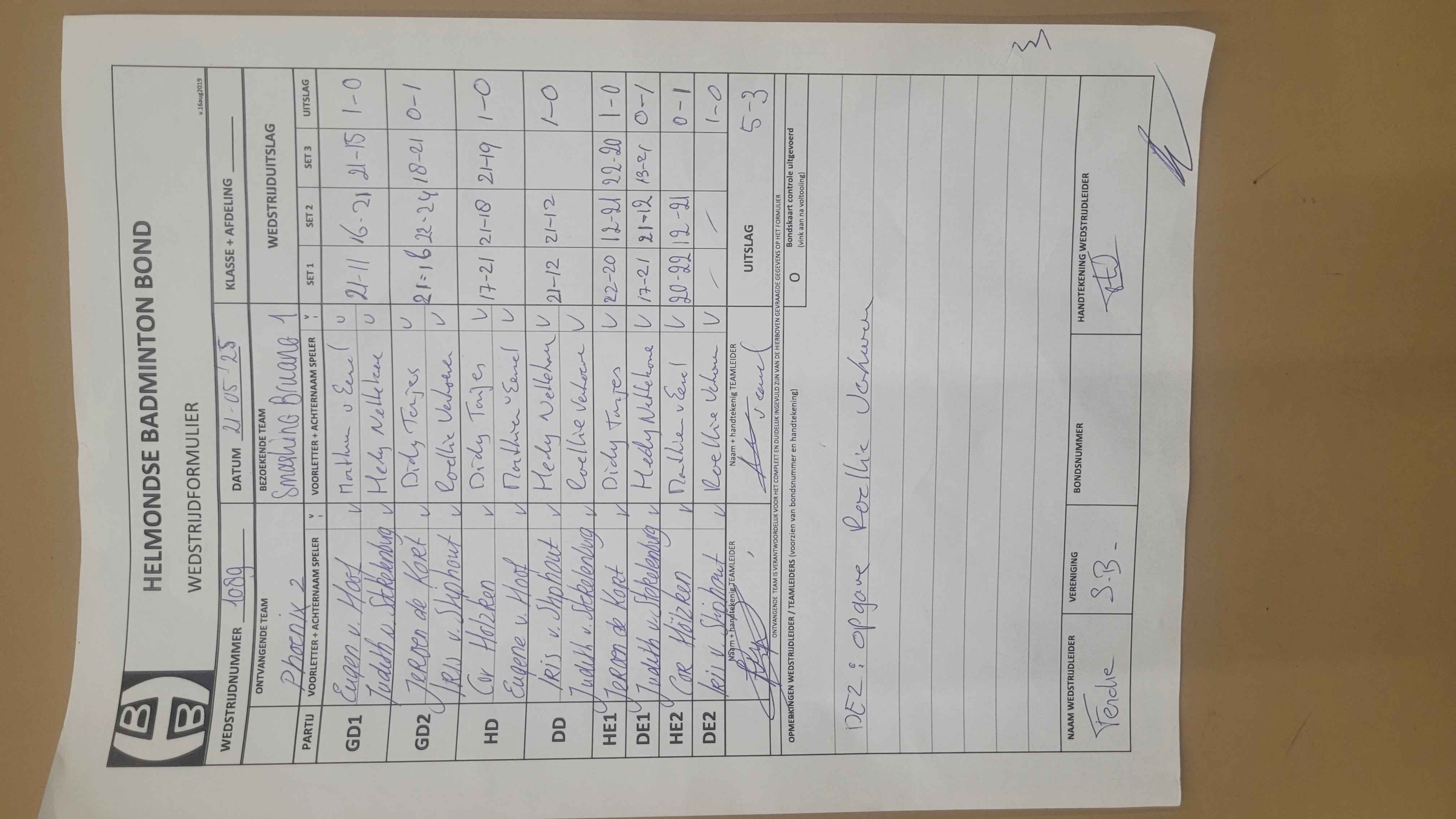 | 1089 | wo. 21-05-2025 | Phoenix 2 | - | Smashing Bruang 1 | 3 | 5 - 3 |