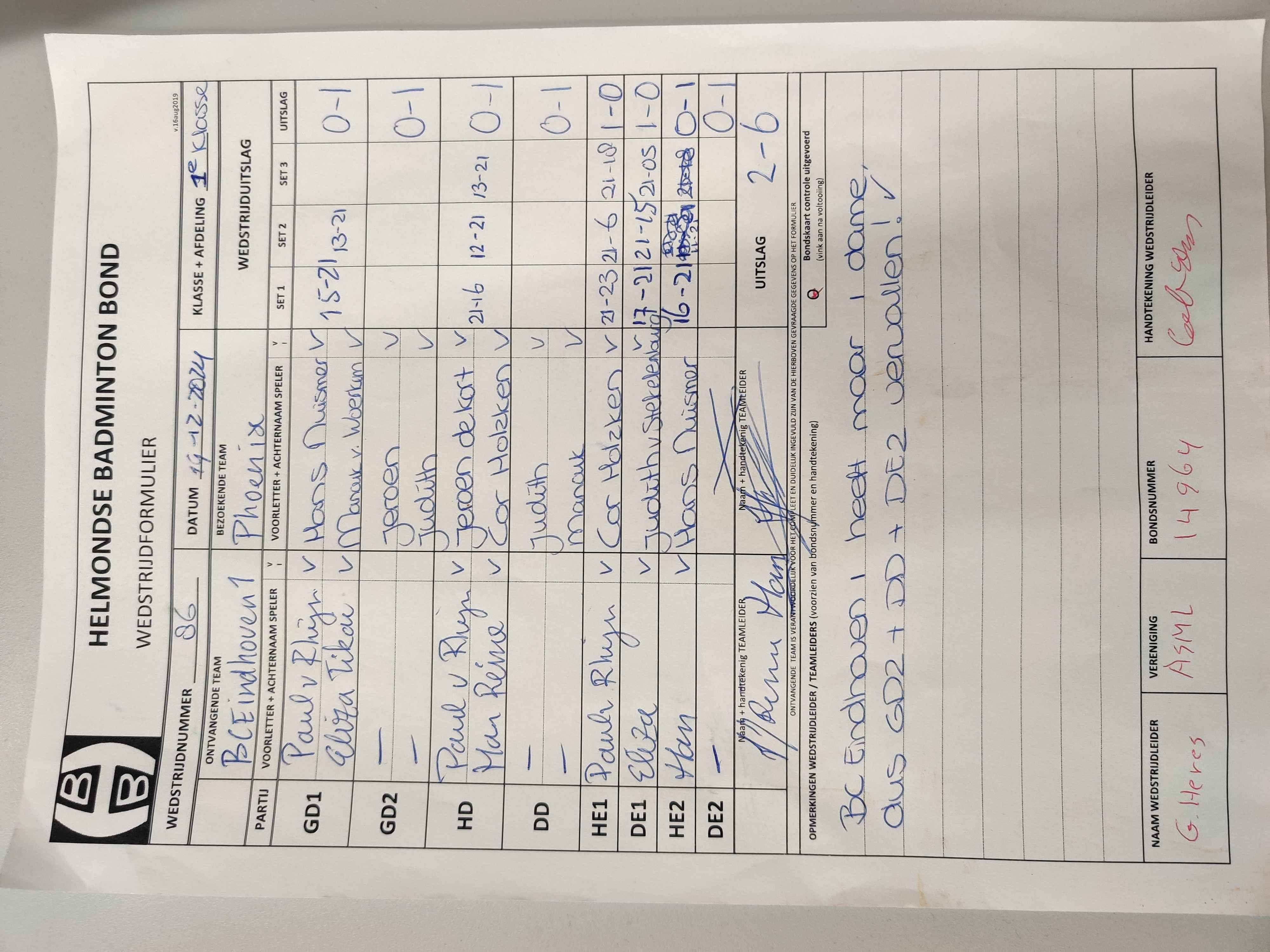 | 86 | do. 19-12-2024 | Eindhoven 1 | - | Phoenix 2 | 5 | 2 - 6 | |||