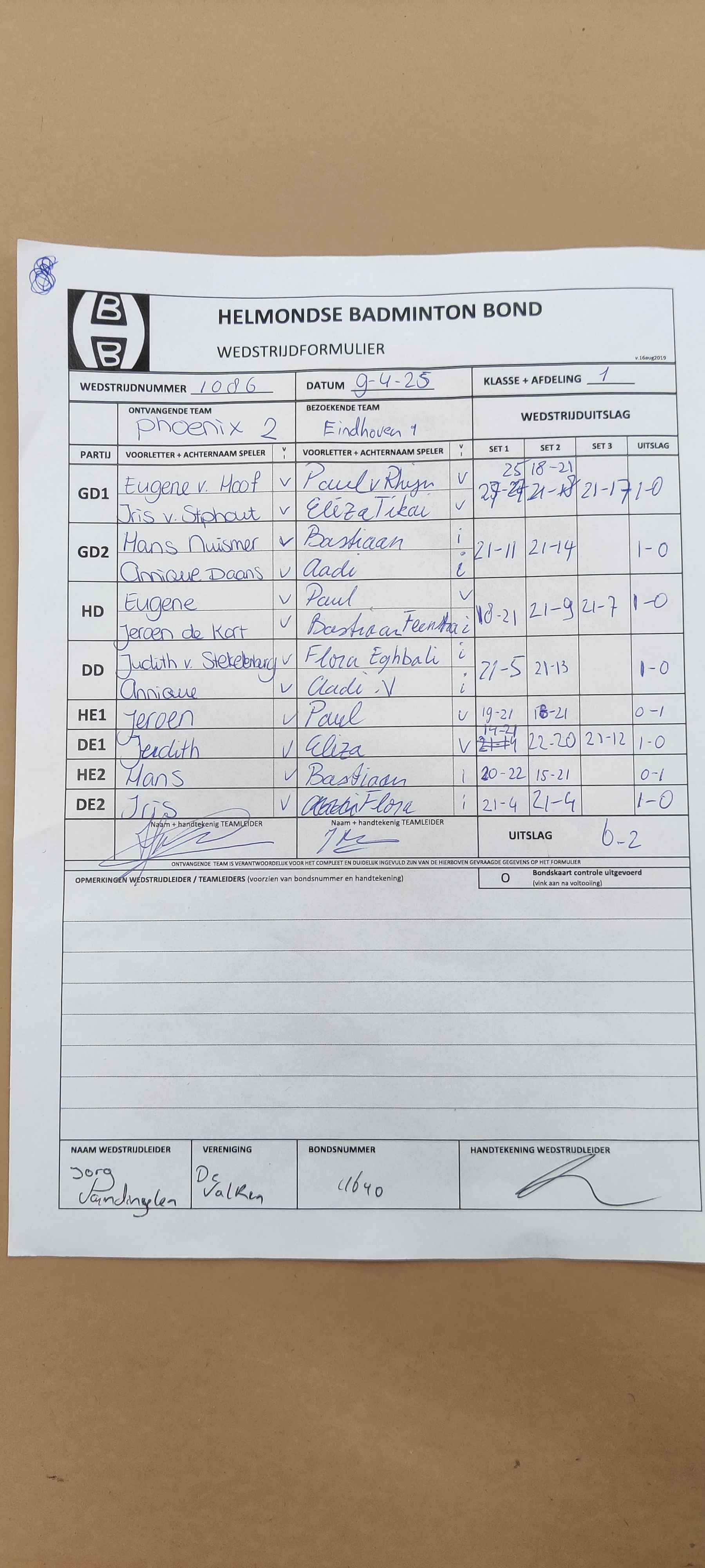 | 1086 | wo. 09-04-2025 | Phoenix 2 | - | Eindhoven 1 | 4 | 6 - 2 | |||