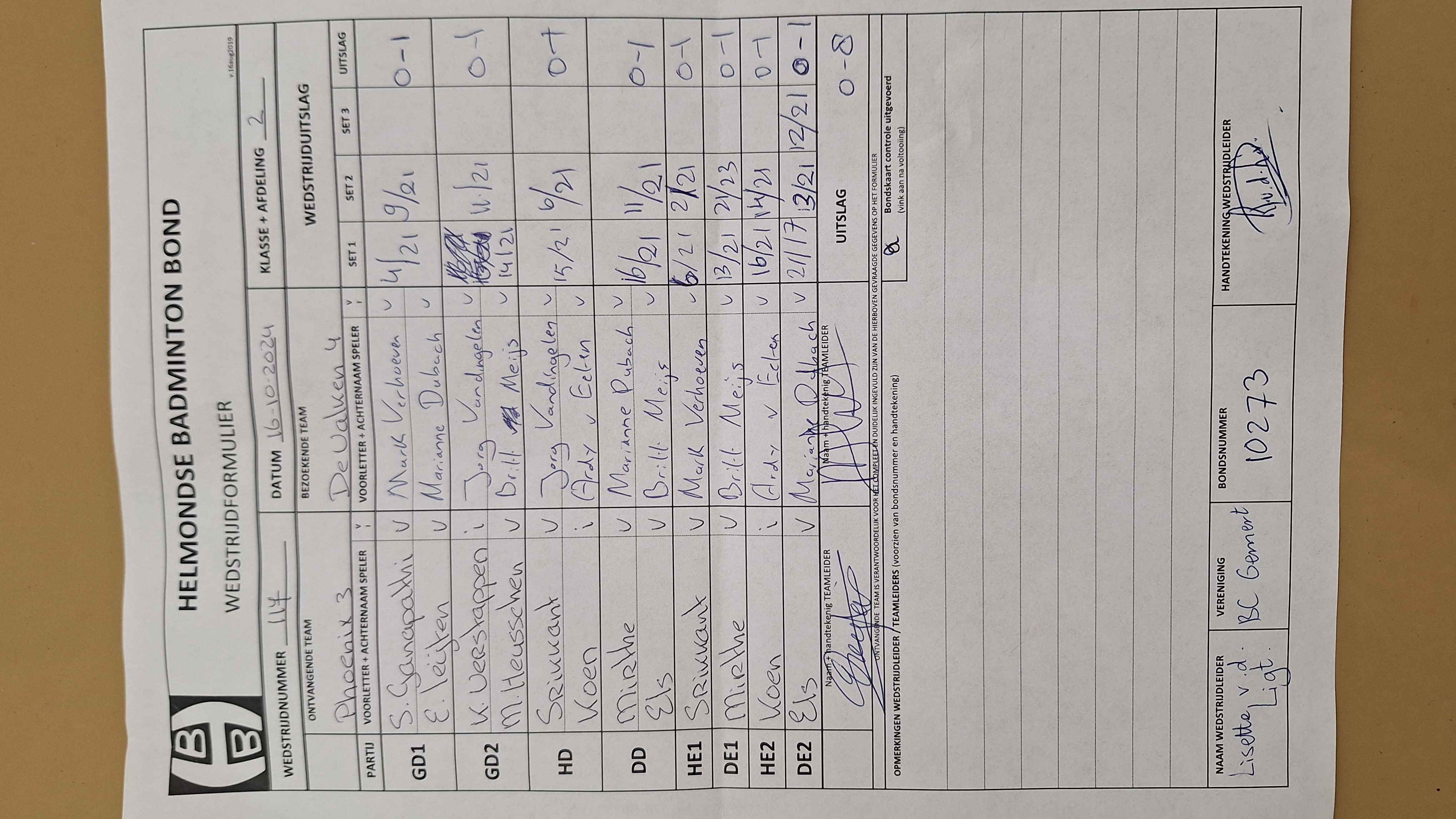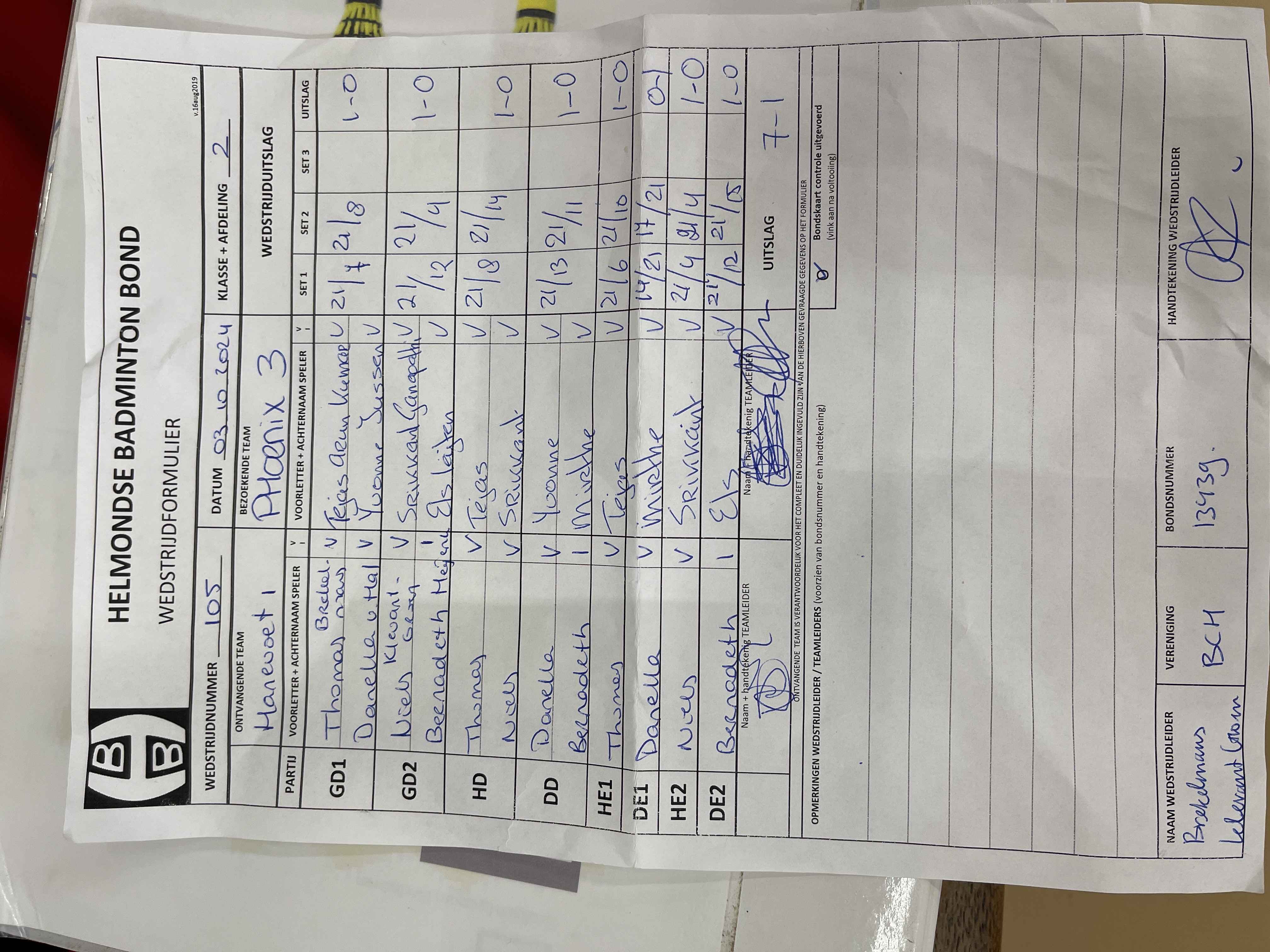 | 105 | do. 03-10-2024 | Hanevoet 1 | - | Phoenix 3 | 11 | 7 - 1 | |||