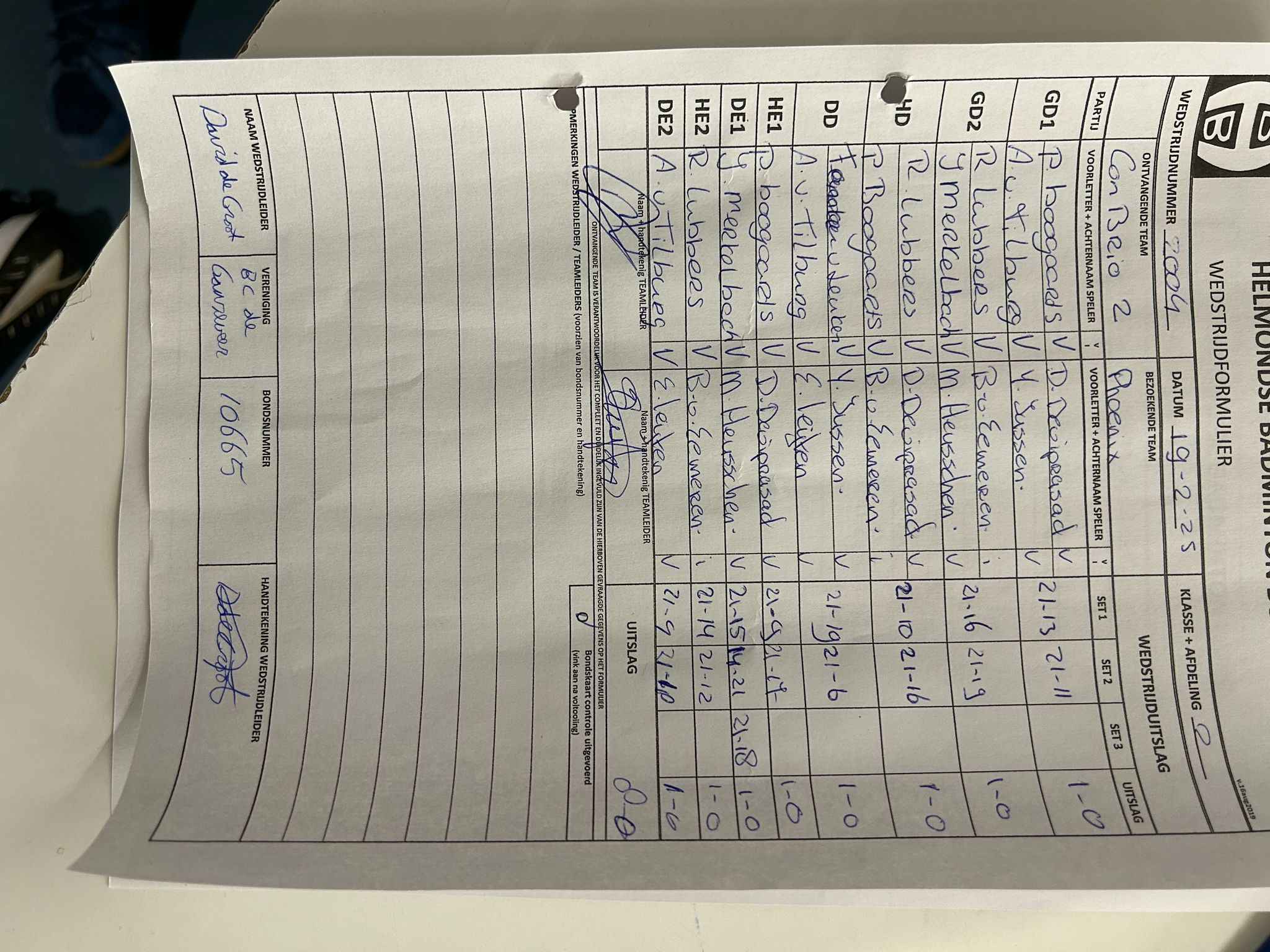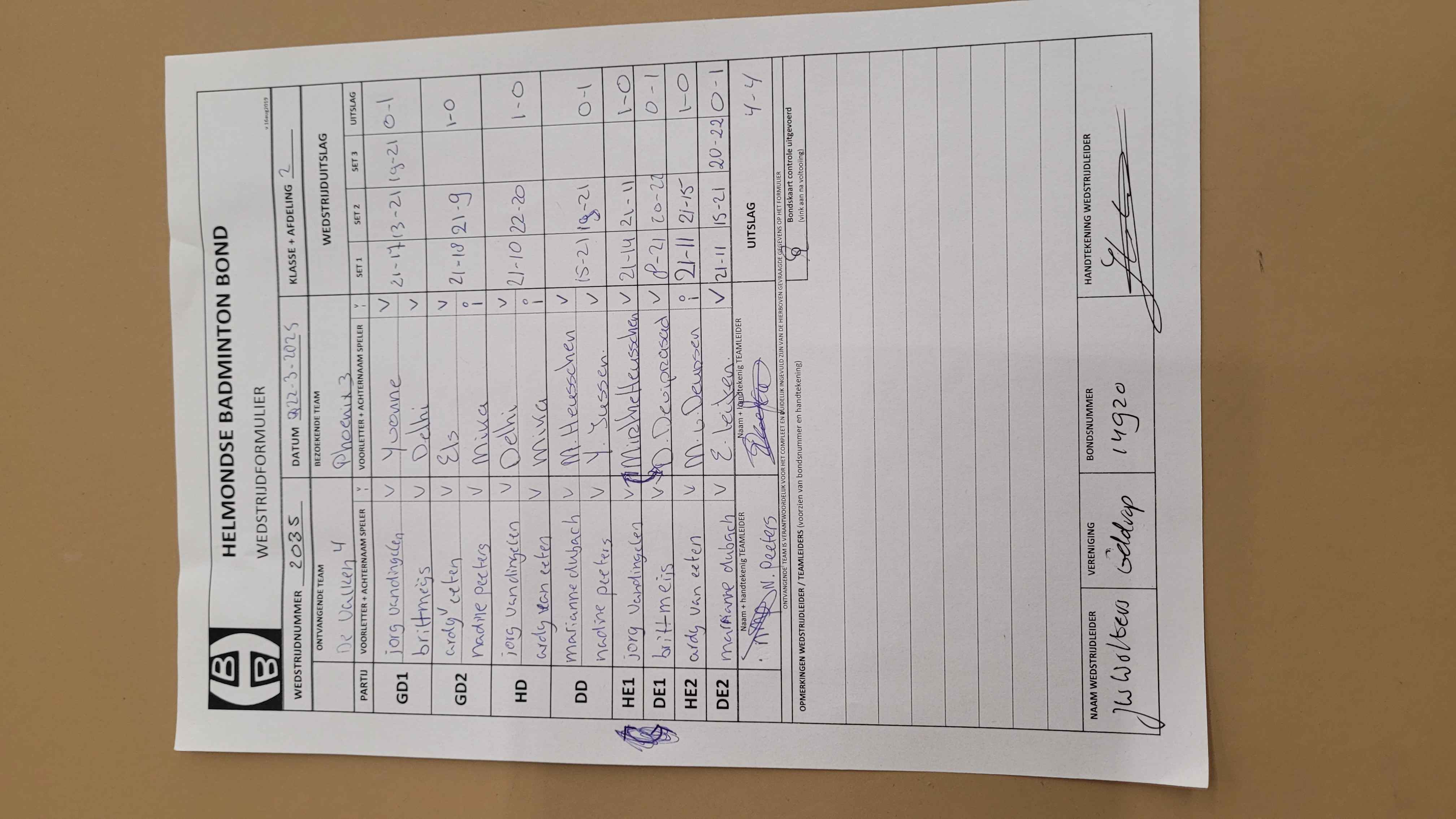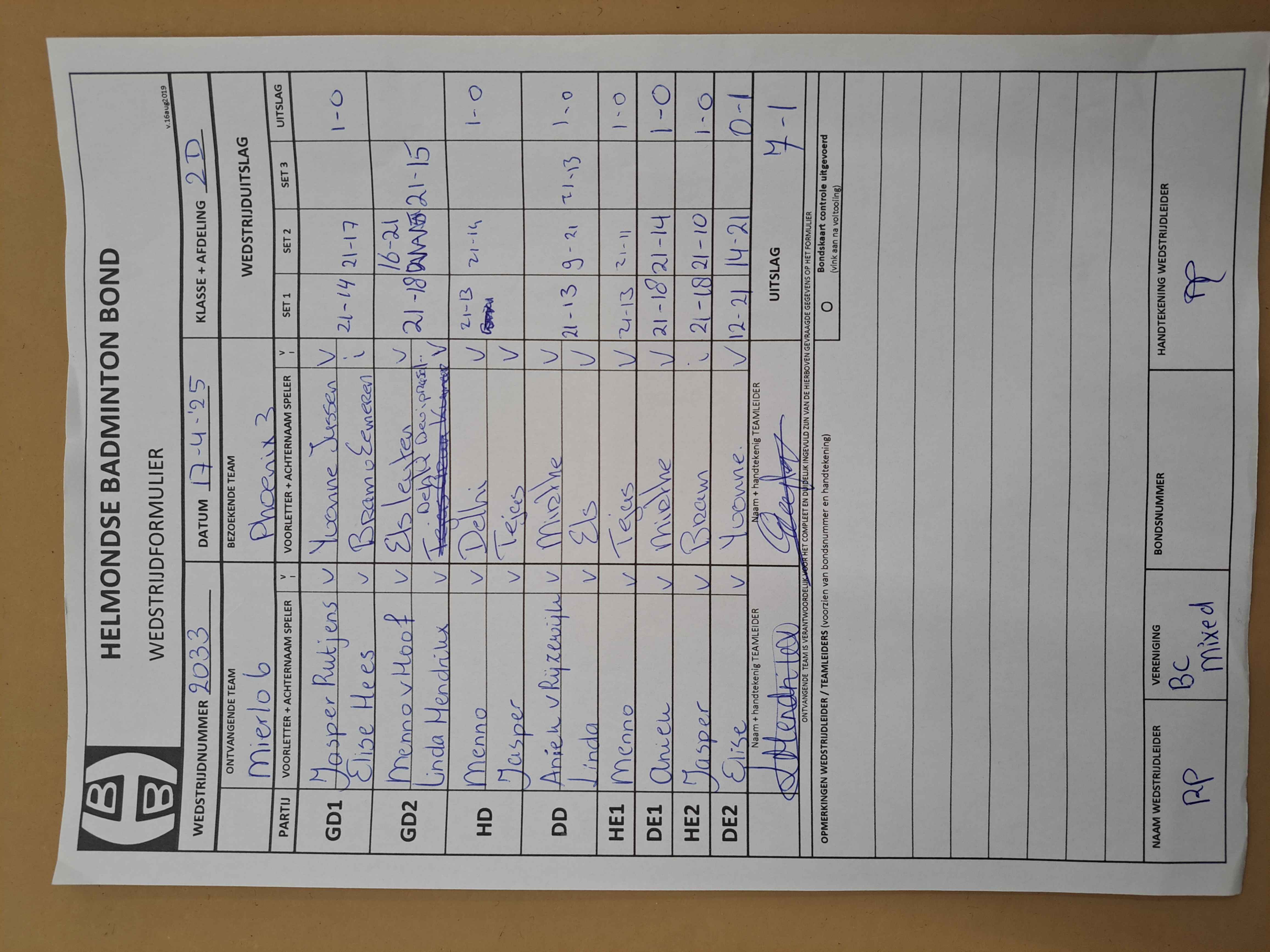 | 2033 | do. 17-04-2025 | Mierlo 6 | - | Phoenix 3 | 11 | 7 - 1 | |||