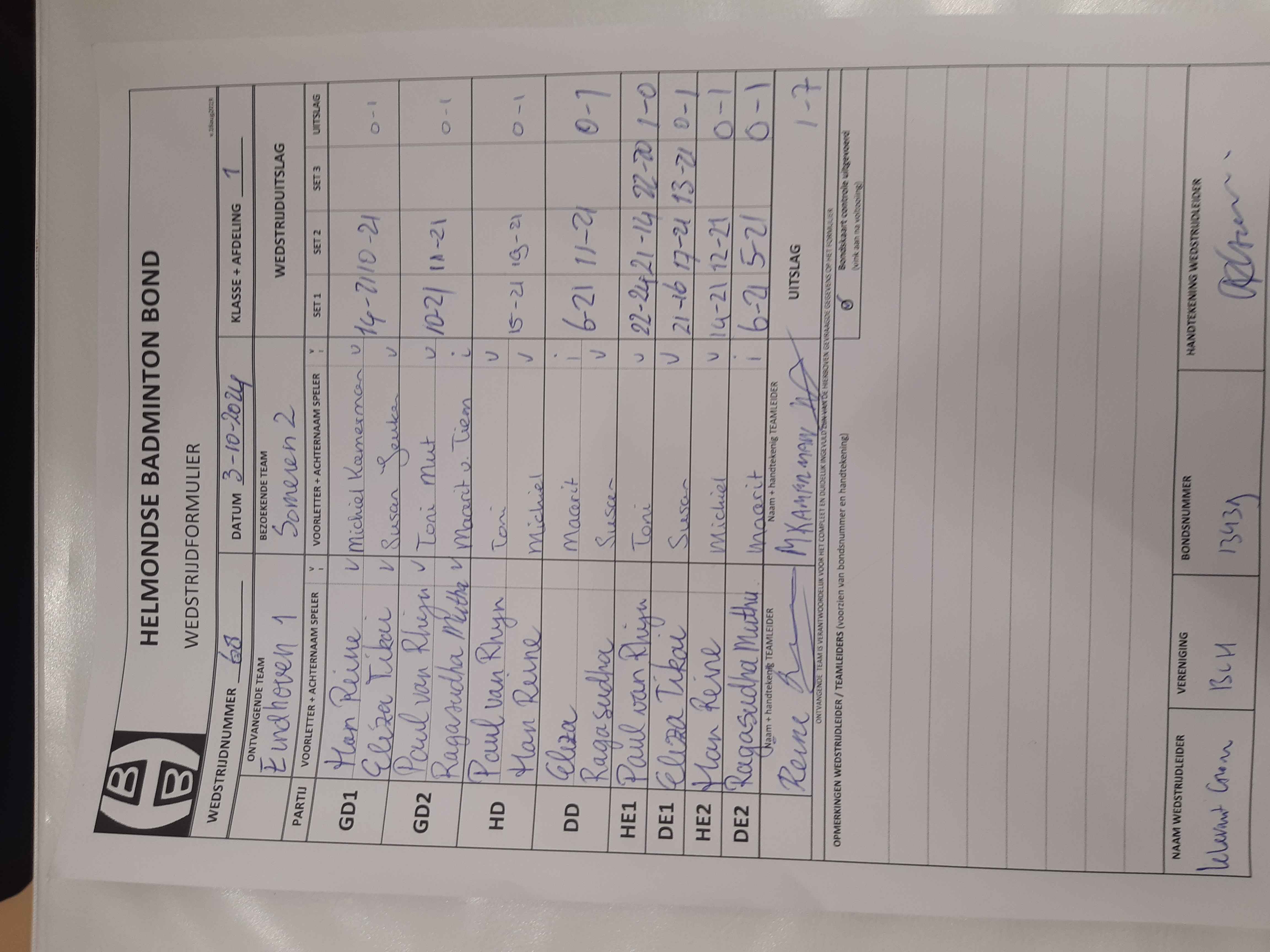 | 68 | do. 03-10-2024 | Eindhoven 1 | - | Someren 2 | 4 | 1 - 7 | |||