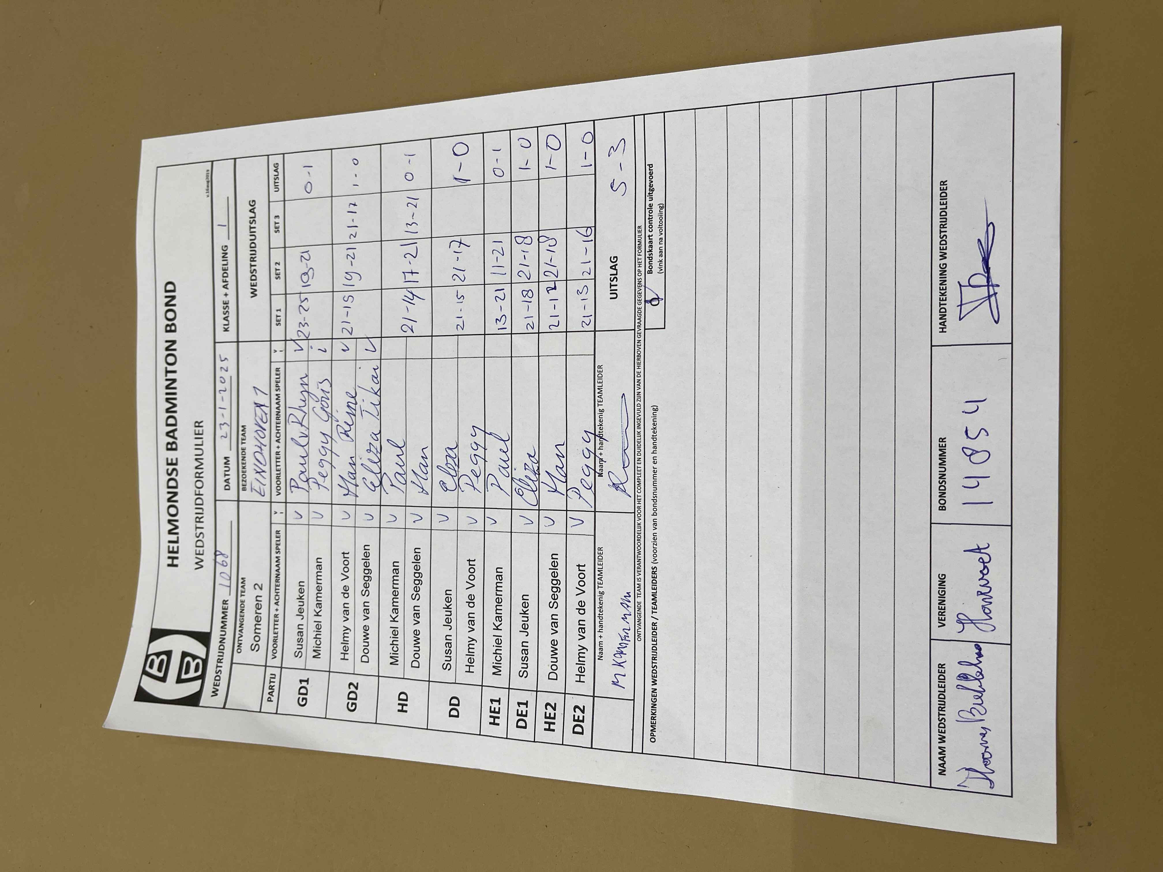 | 1068 | do. 23-01-2025 | Someren 2 | - | Eindhoven 1 | 3 | 5 - 3 | |||