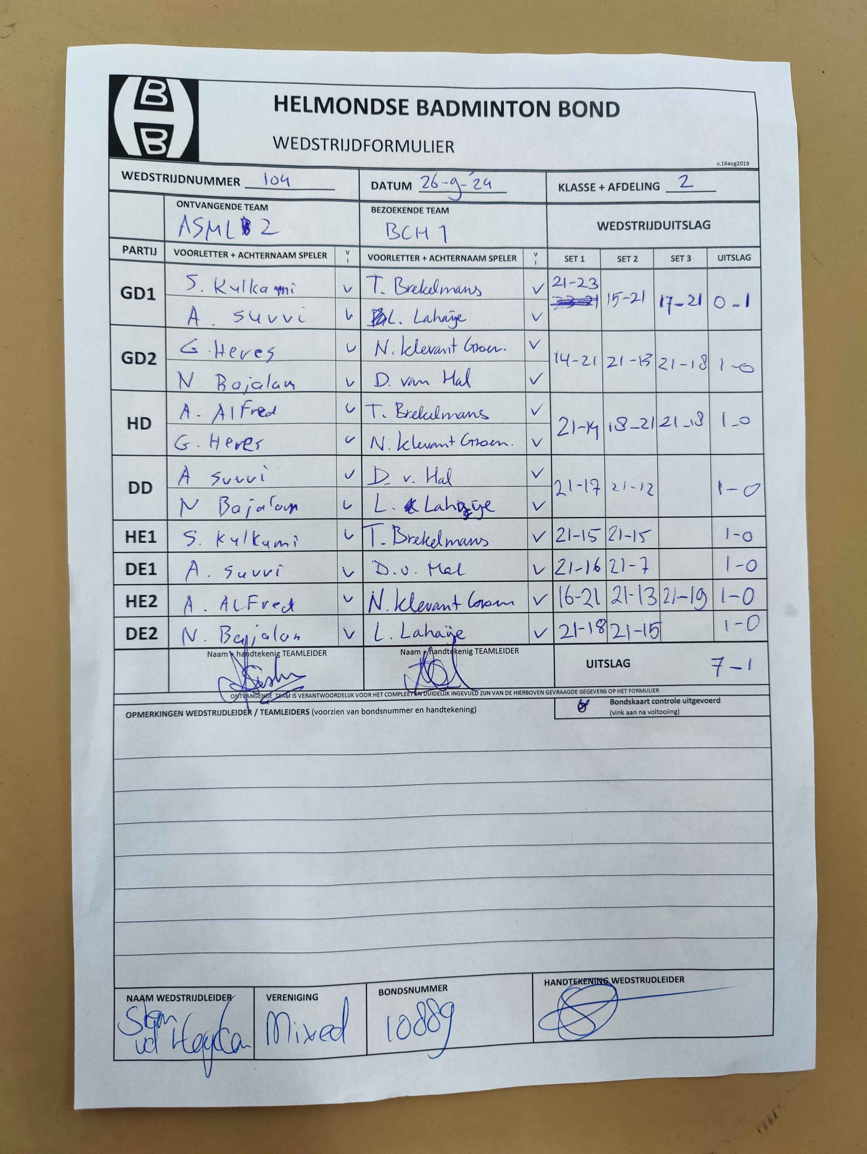 | 104 | do. 26-09-2024 | ASML 2 | - | Hanevoet 1 | 4 | 7 - 1 | |||
