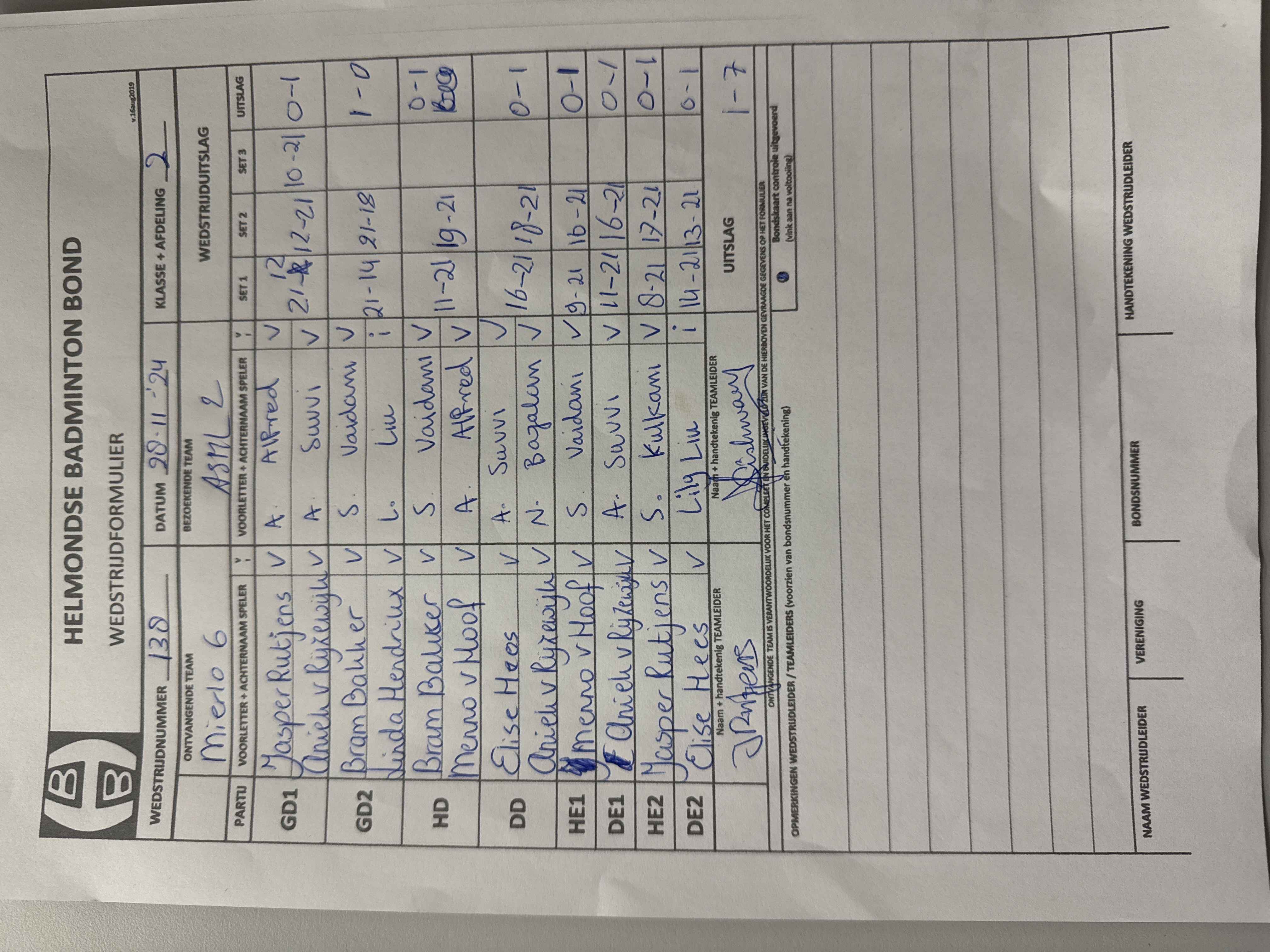 | 138 | do. 28-11-2024 | Mierlo 6 | - | ASML 2 | 11 | 1 - 7 | |||