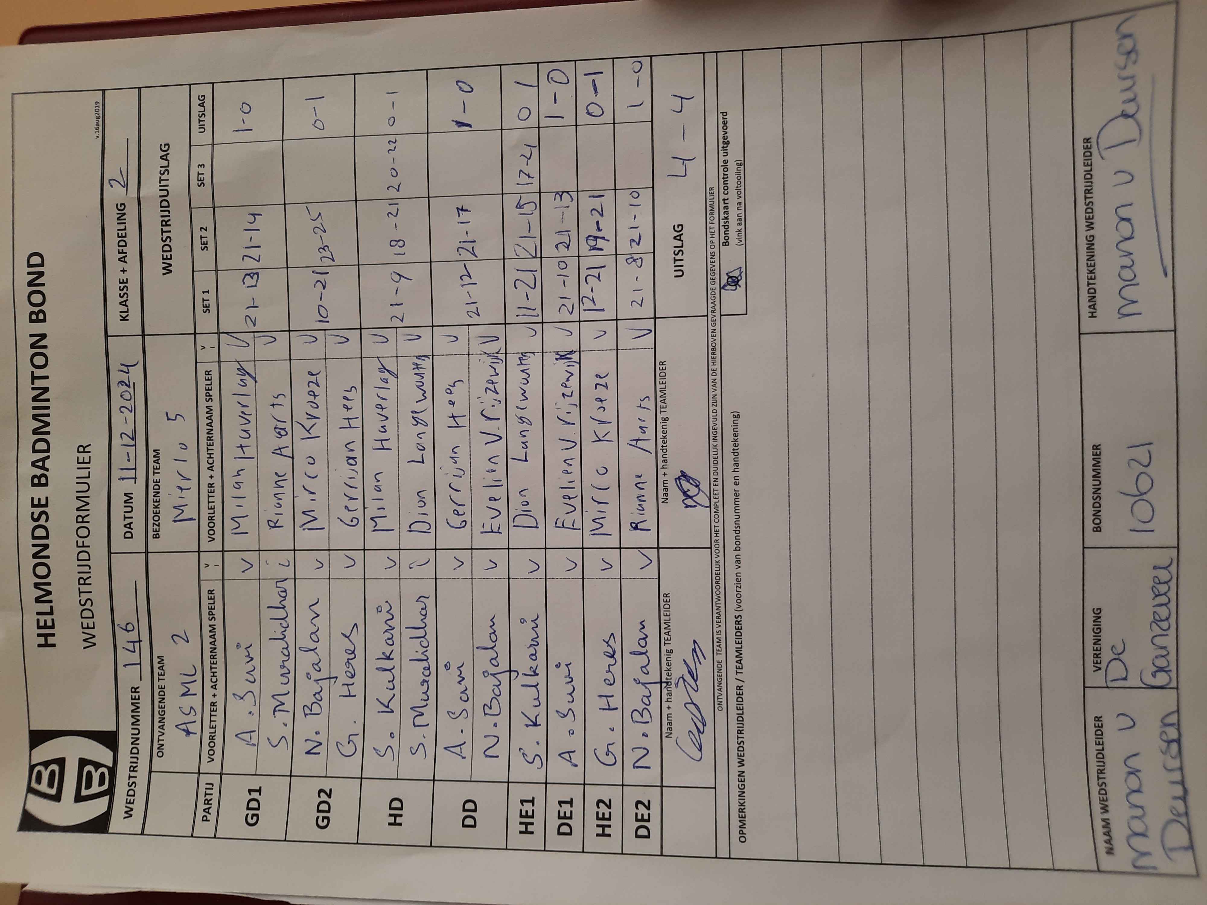 | 146 | wo. 11-12-2024 | ASML 2 | - | Mierlo 5 | 3 | 4 - 4 | |||