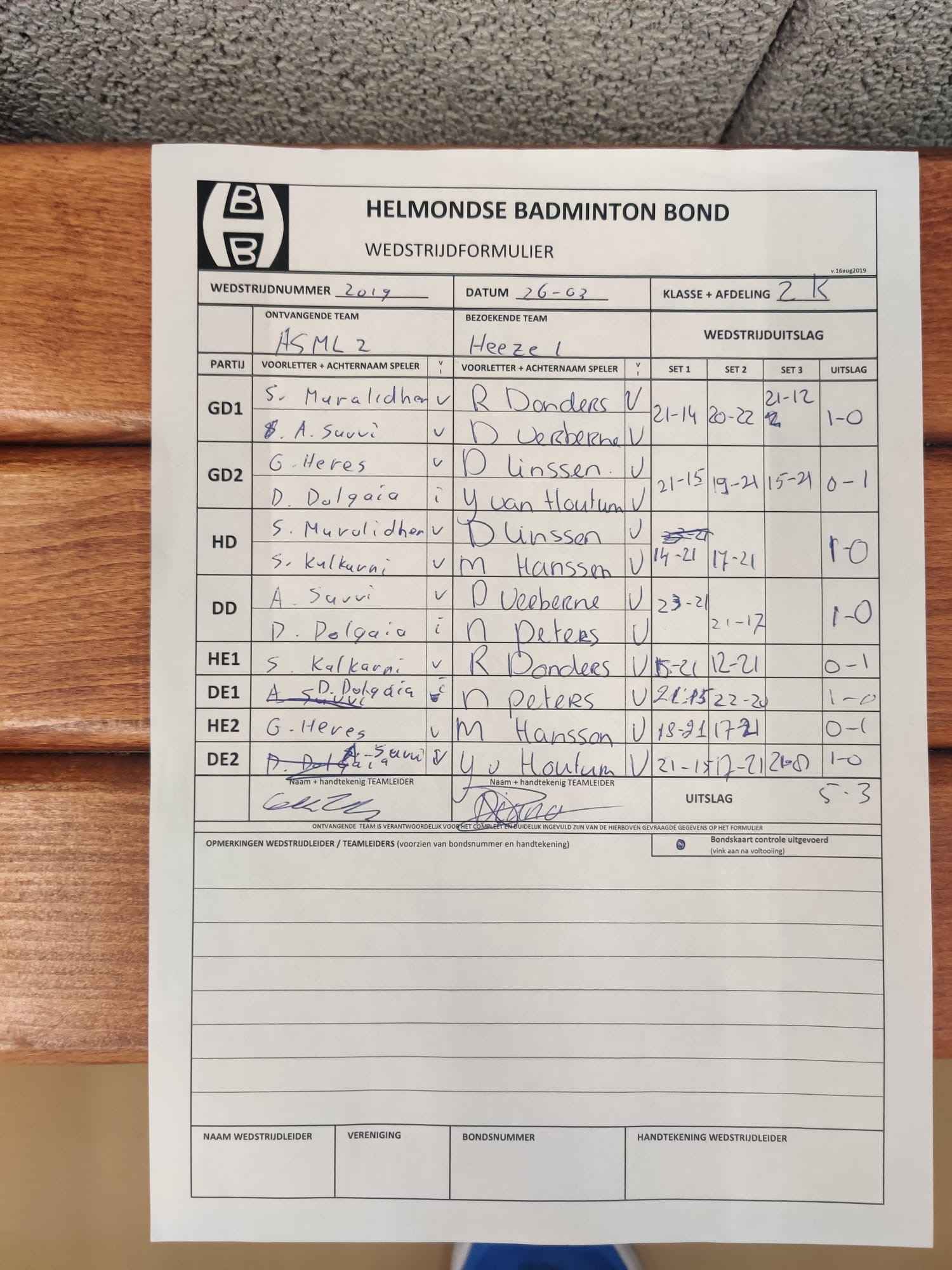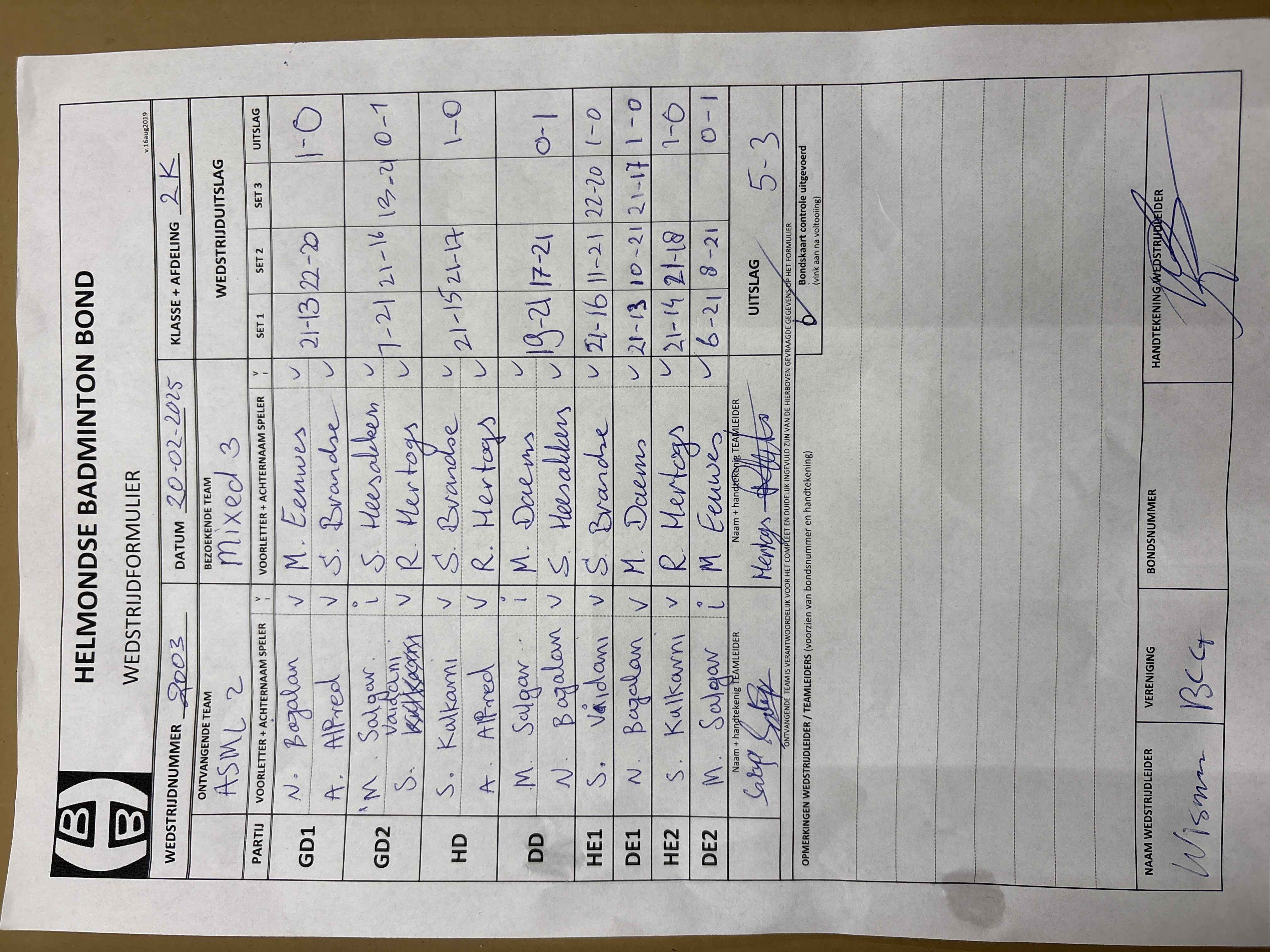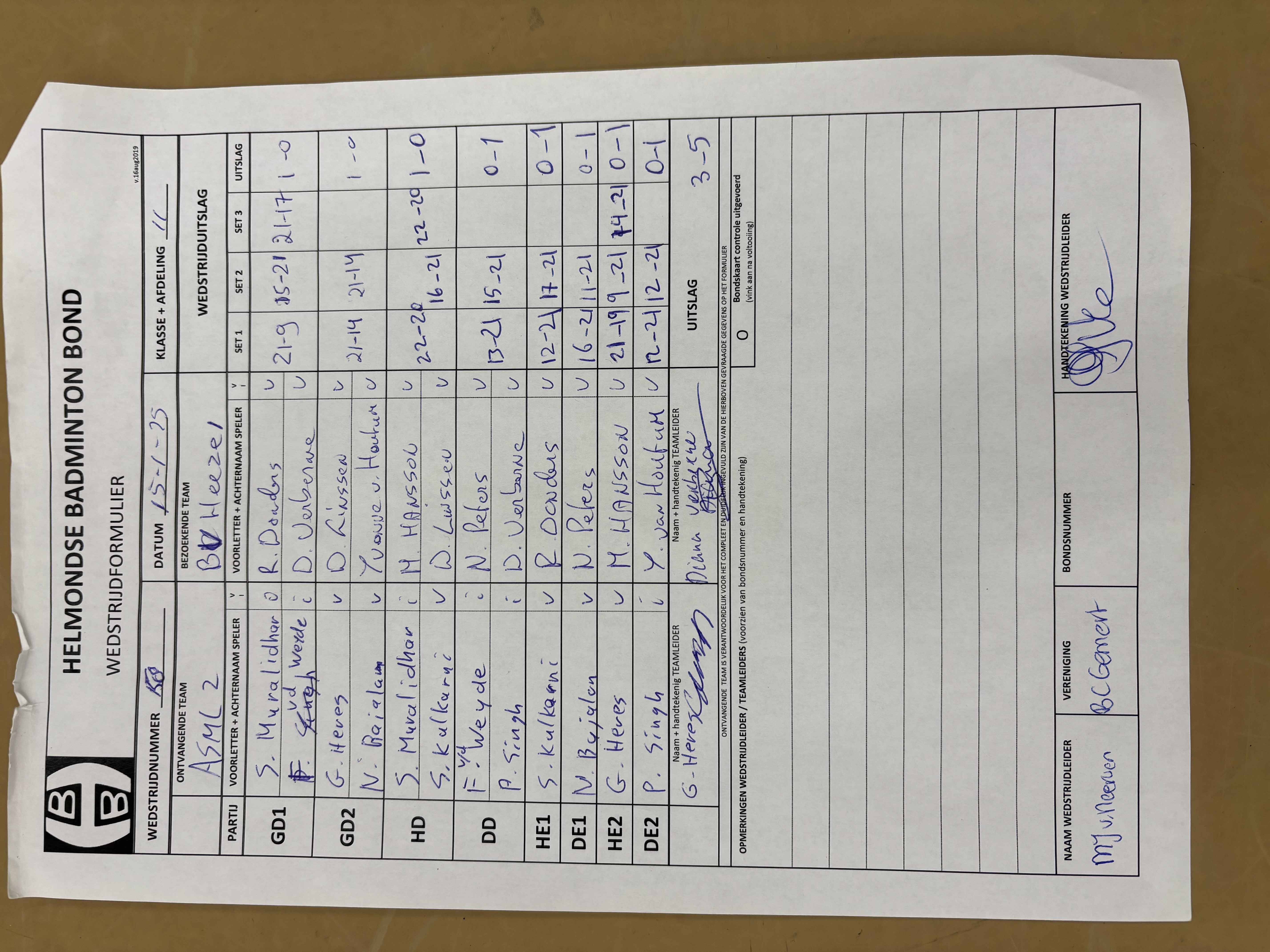 | 158 | wo. 15-01-2025 | ASML 2 | - | Heeze 1 | 4 | 3 - 5 | |||