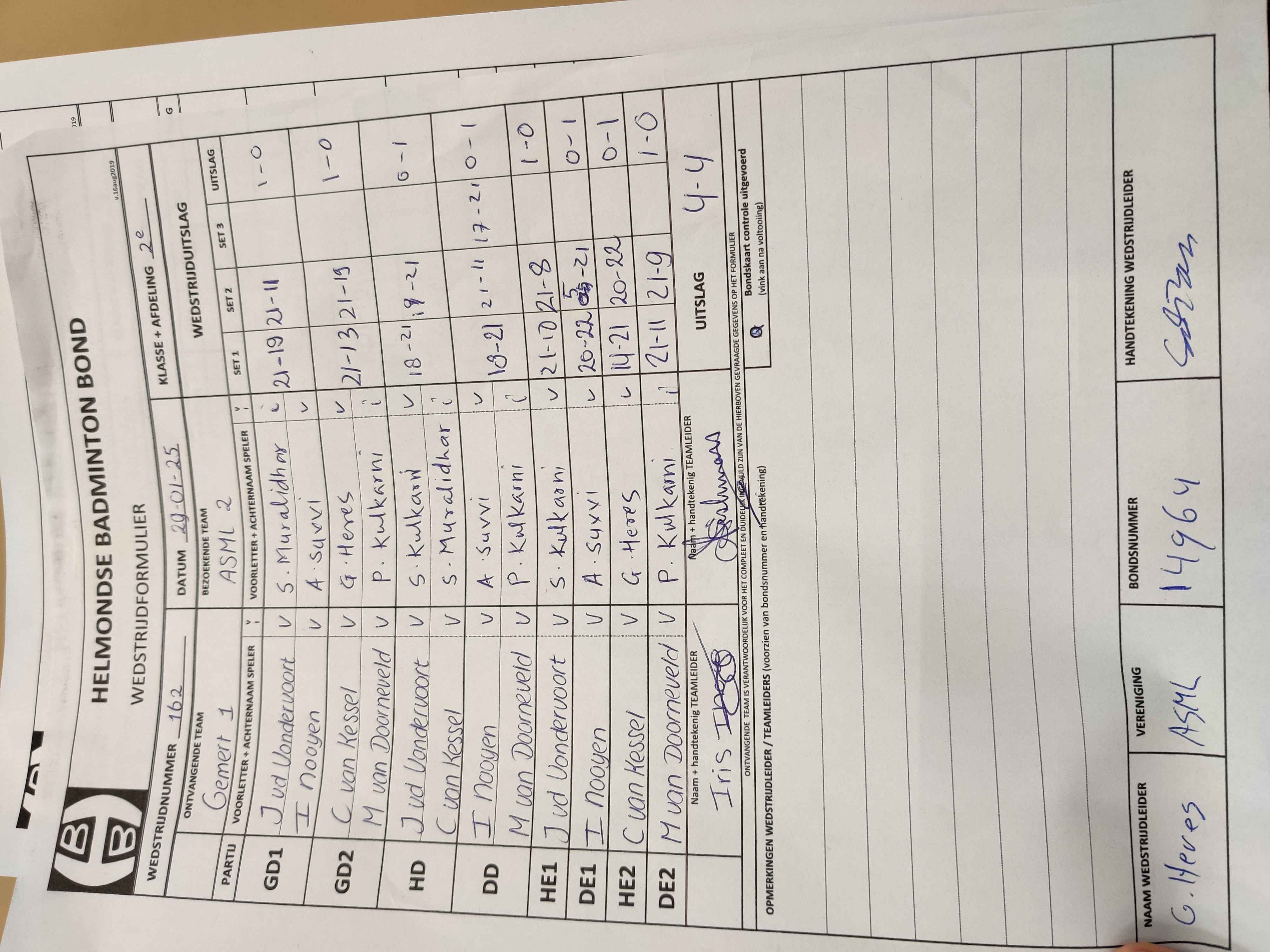 | 162 | wo. 29-01-2025 | Gemert 1 | - | ASML 2 | 12 | 4 - 4 | |||