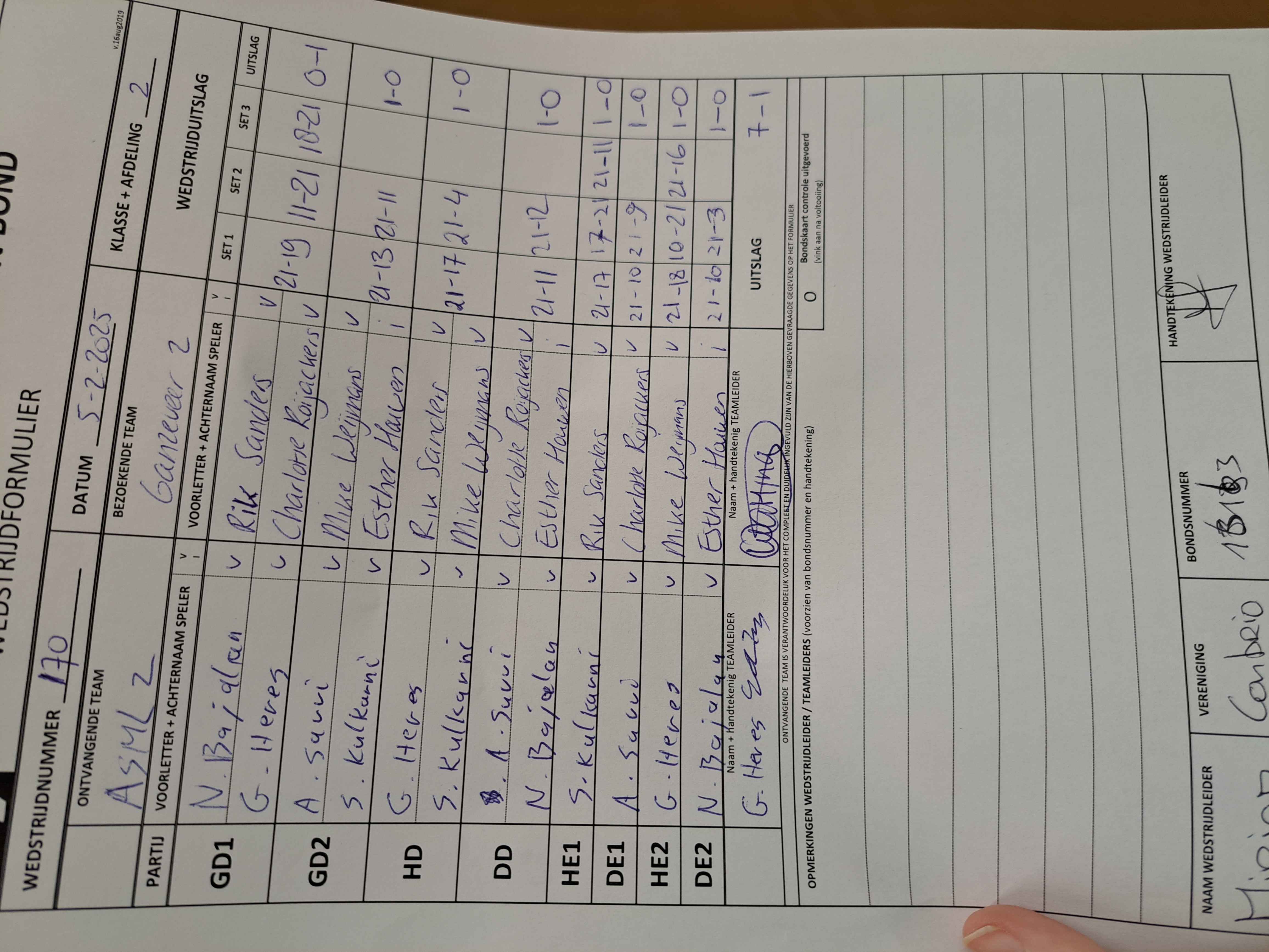 | 170 | wo. 05-02-2025 | ASML 2 | - | Ganzeveer 2 | 3 | 7 - 1 | |||