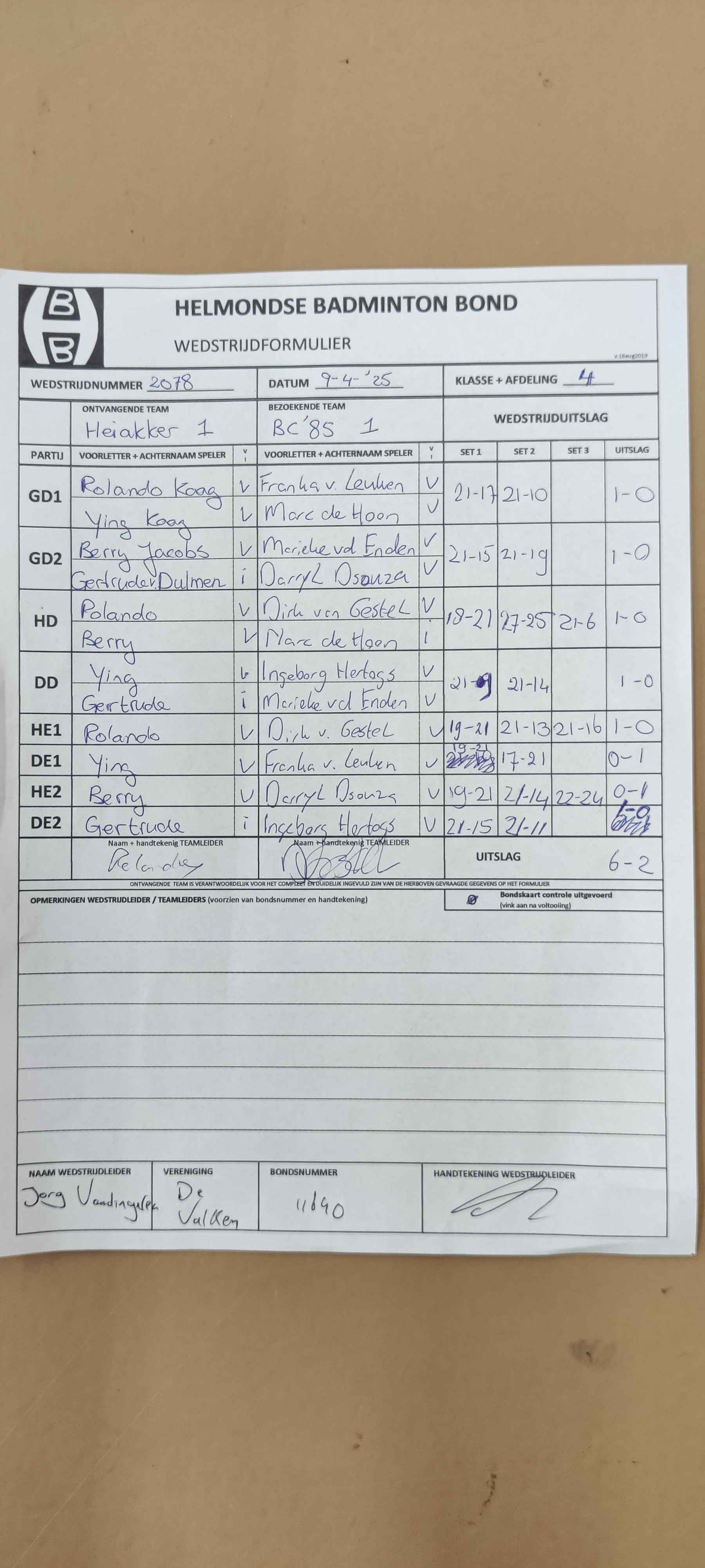 | 2078 | wo. 09-04-2025 | Heiakker 1 | - | BC '85 1 | 15 | 6 - 2 | |||