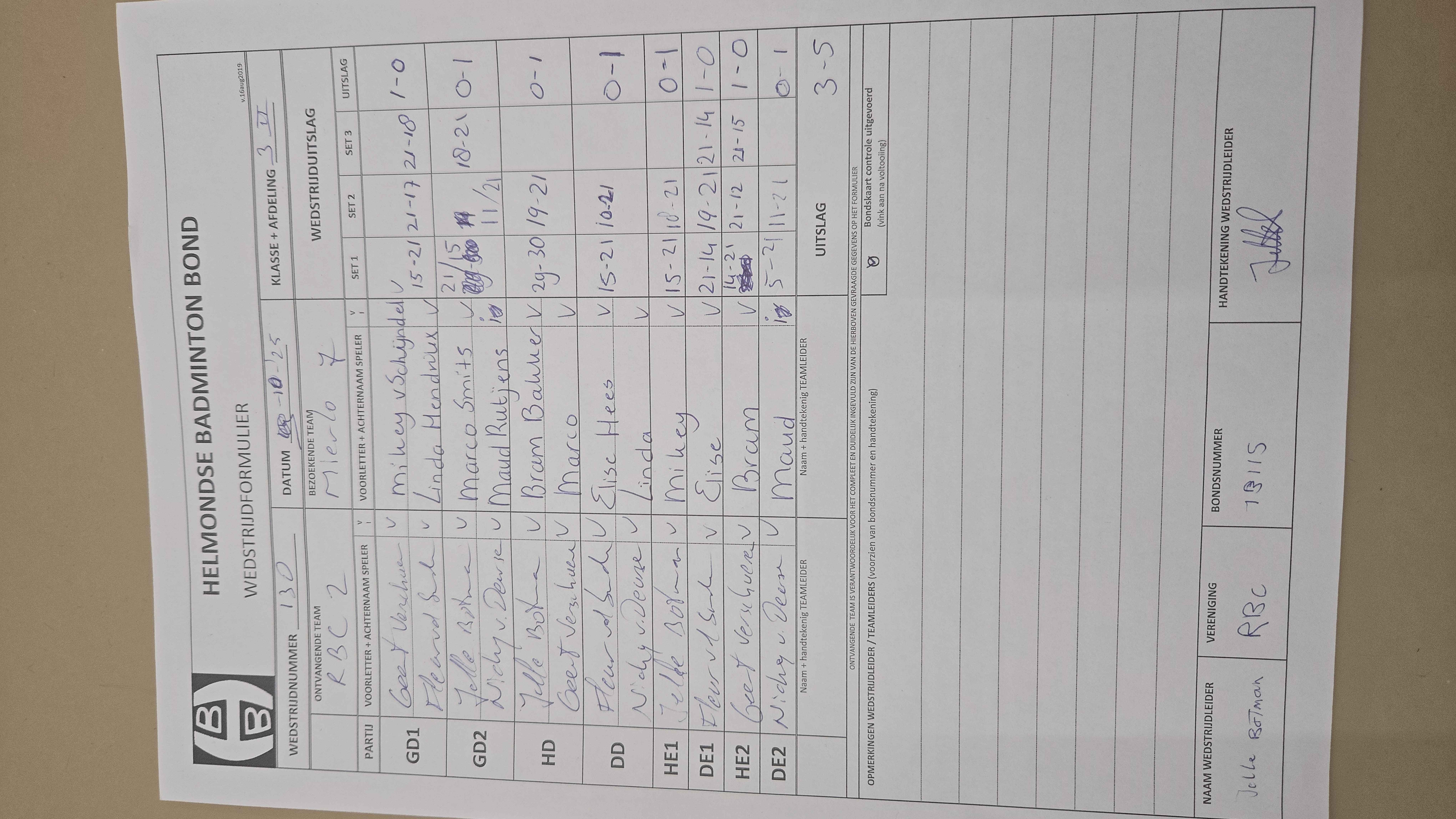 | 130 | do. 09-10-2025 | RBC 2 | - | Mierlo 7 | 4 | 3 - 5 | |||