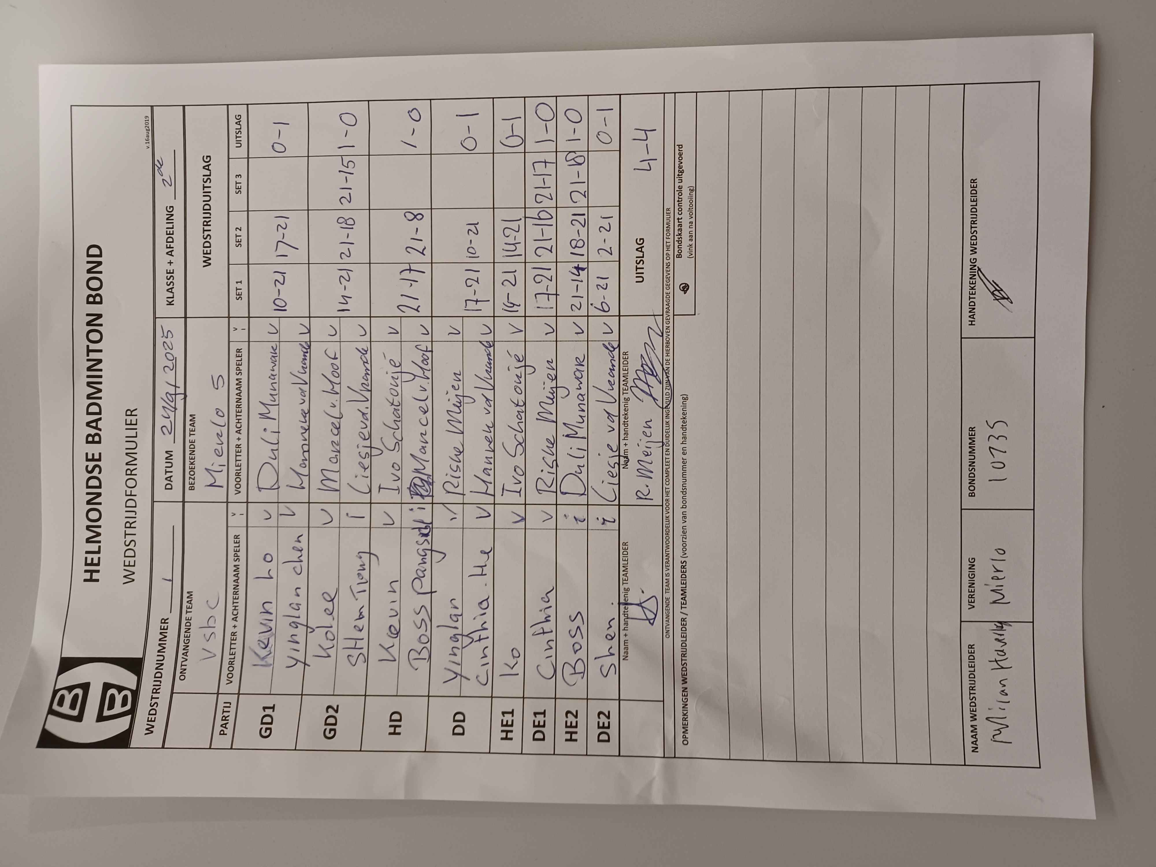 | 104 | wo. 29-10-2025 | Mierlo 5 | - | Mixed 3 | 5 | 2 - 6 | |||