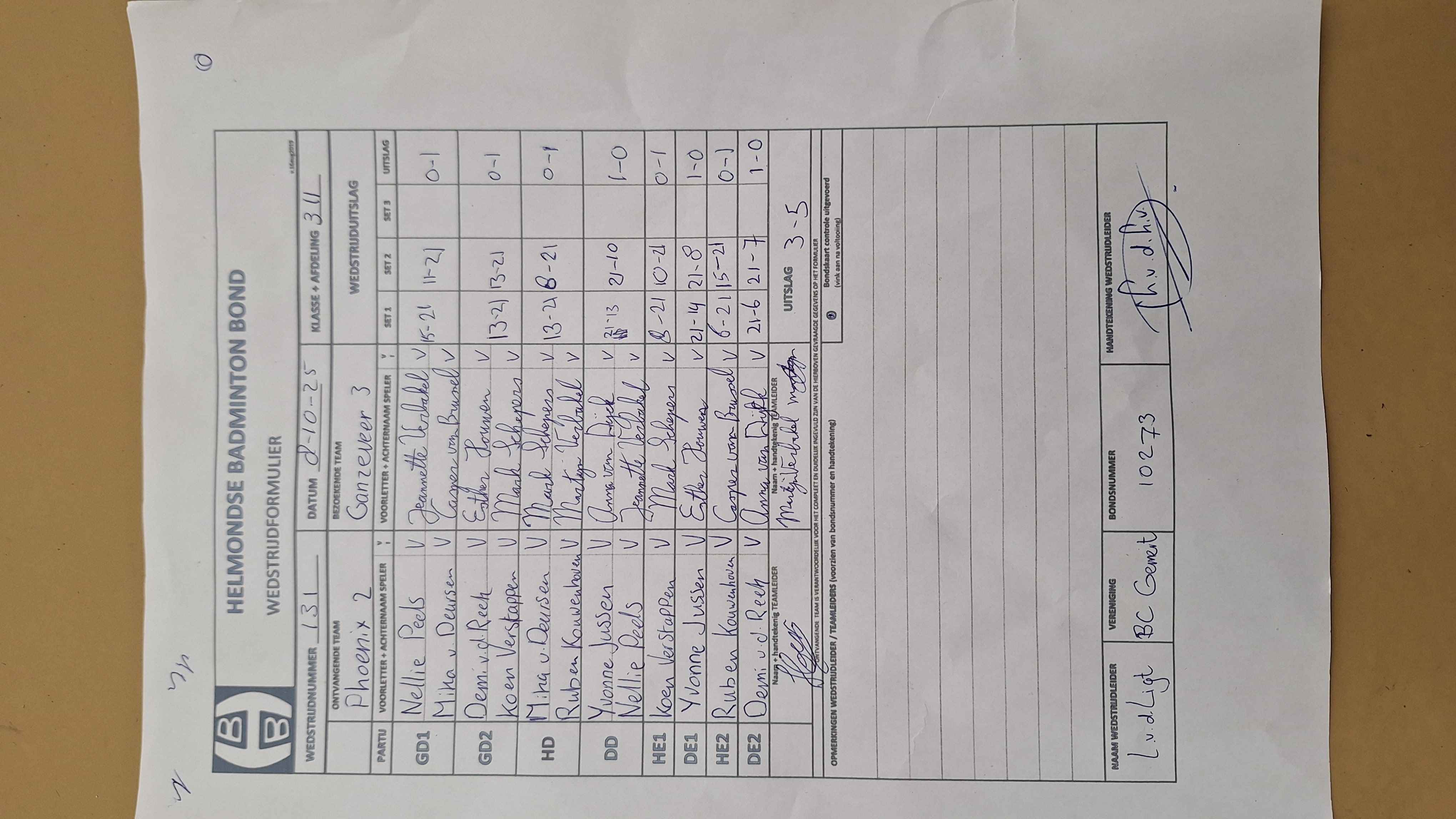 | 131 | wo. 08-10-2025 | Phoenix 2 | - | Ganzeveer 3 | 5 | 3 - 5 | |||