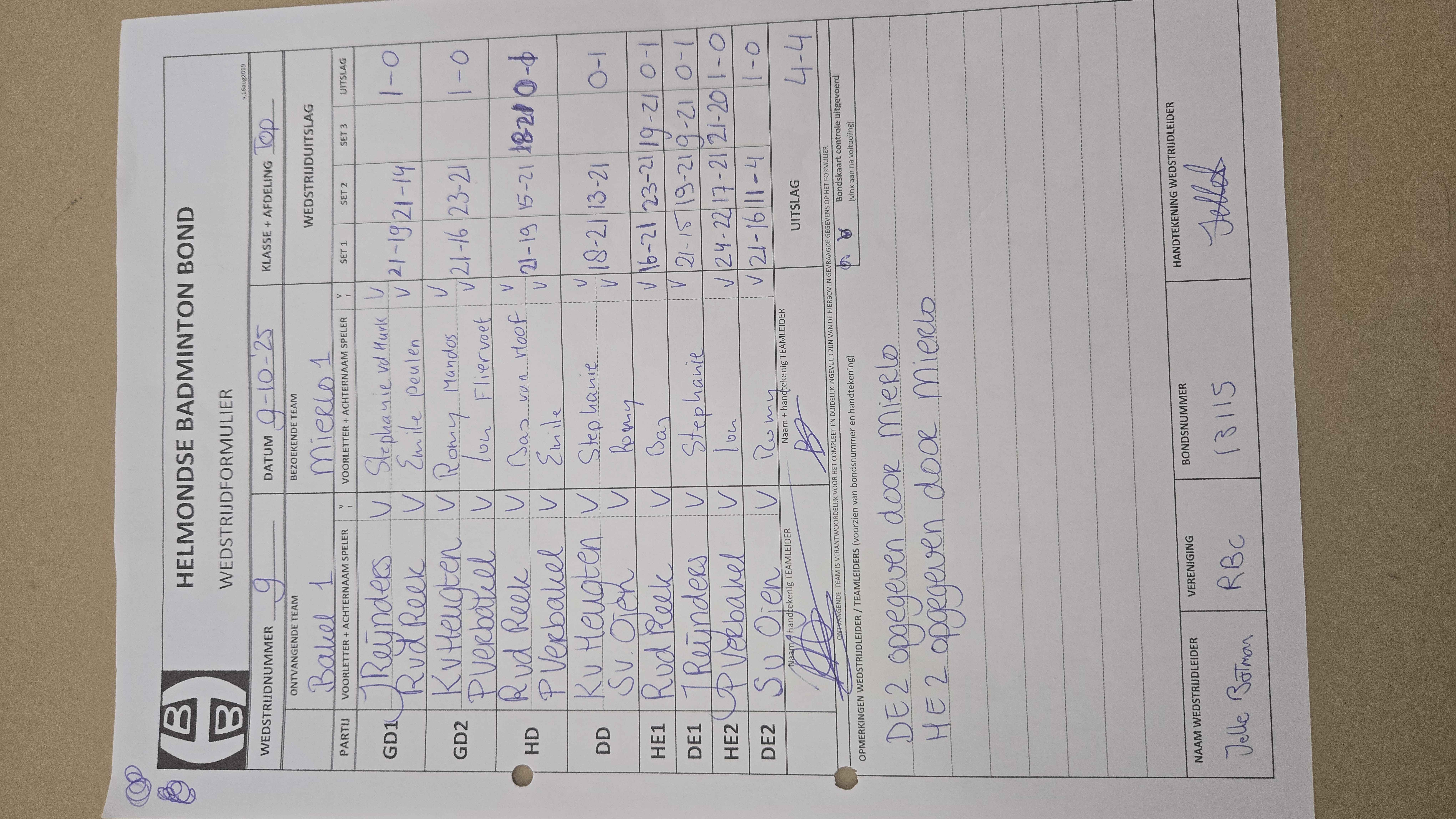 | 1009 | do. 05-02-2026 | Mierlo 1 | - | Bakel 1 | 2 | - | |||