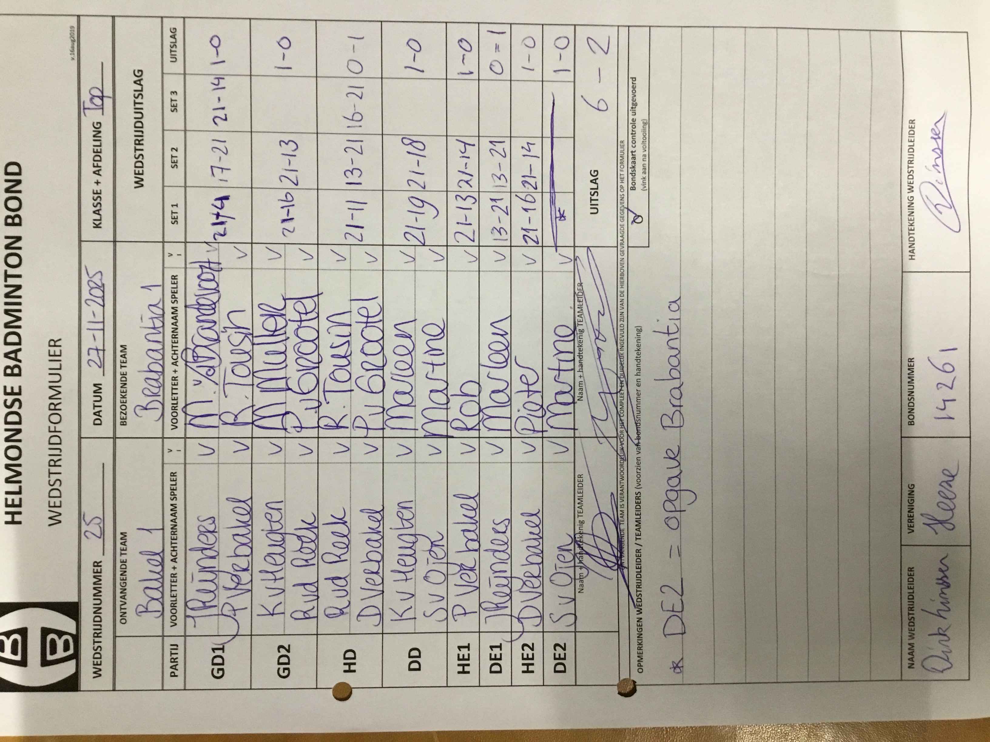 | 25 | do. 27-11-2025 | Bakel 1 | - | Brabantia 1 | 4 | - | |||