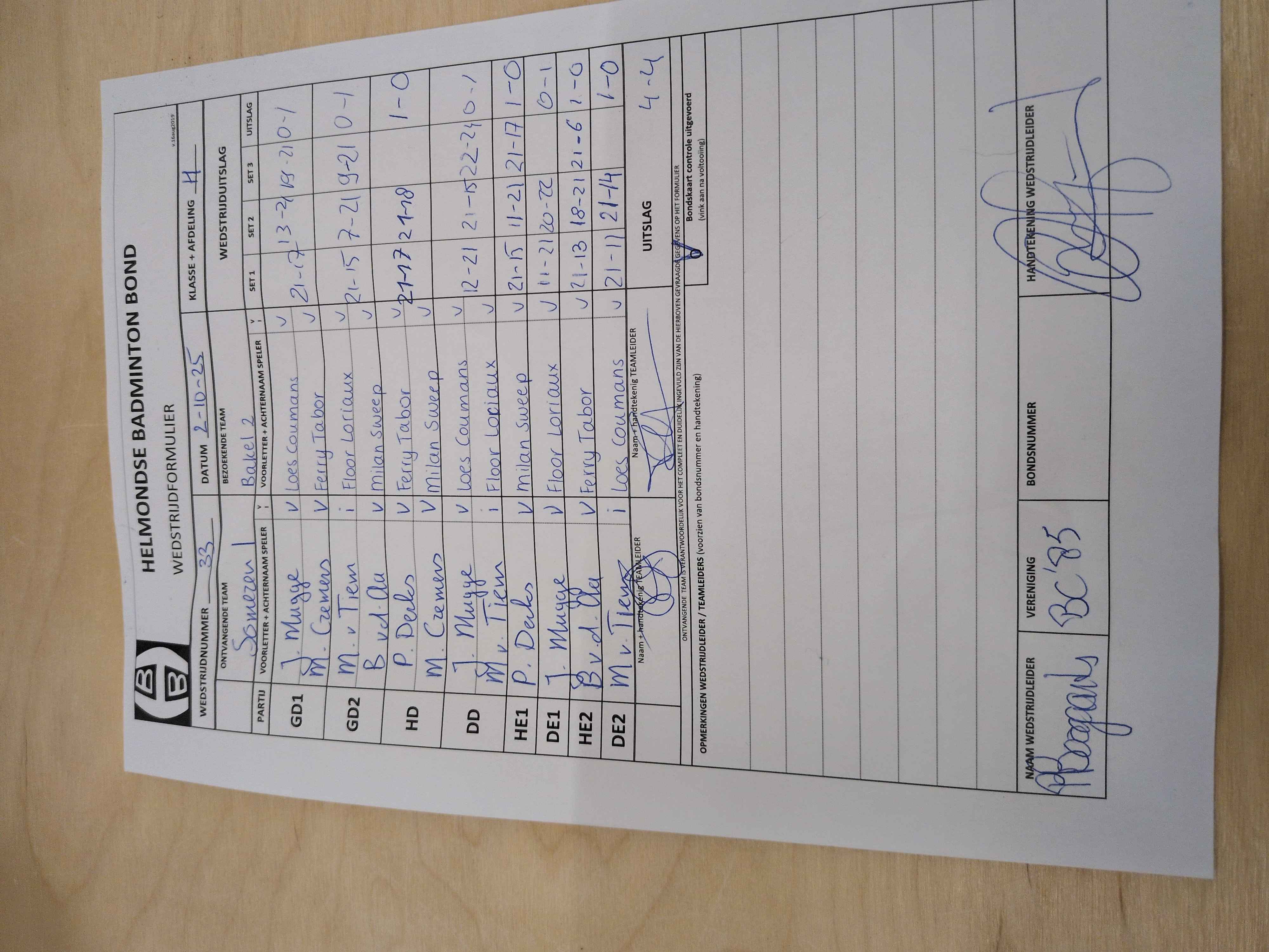 | 45 | do. 06-11-2025 | Bakel 2 | - | Mierlo 2 | 3 | - | |||