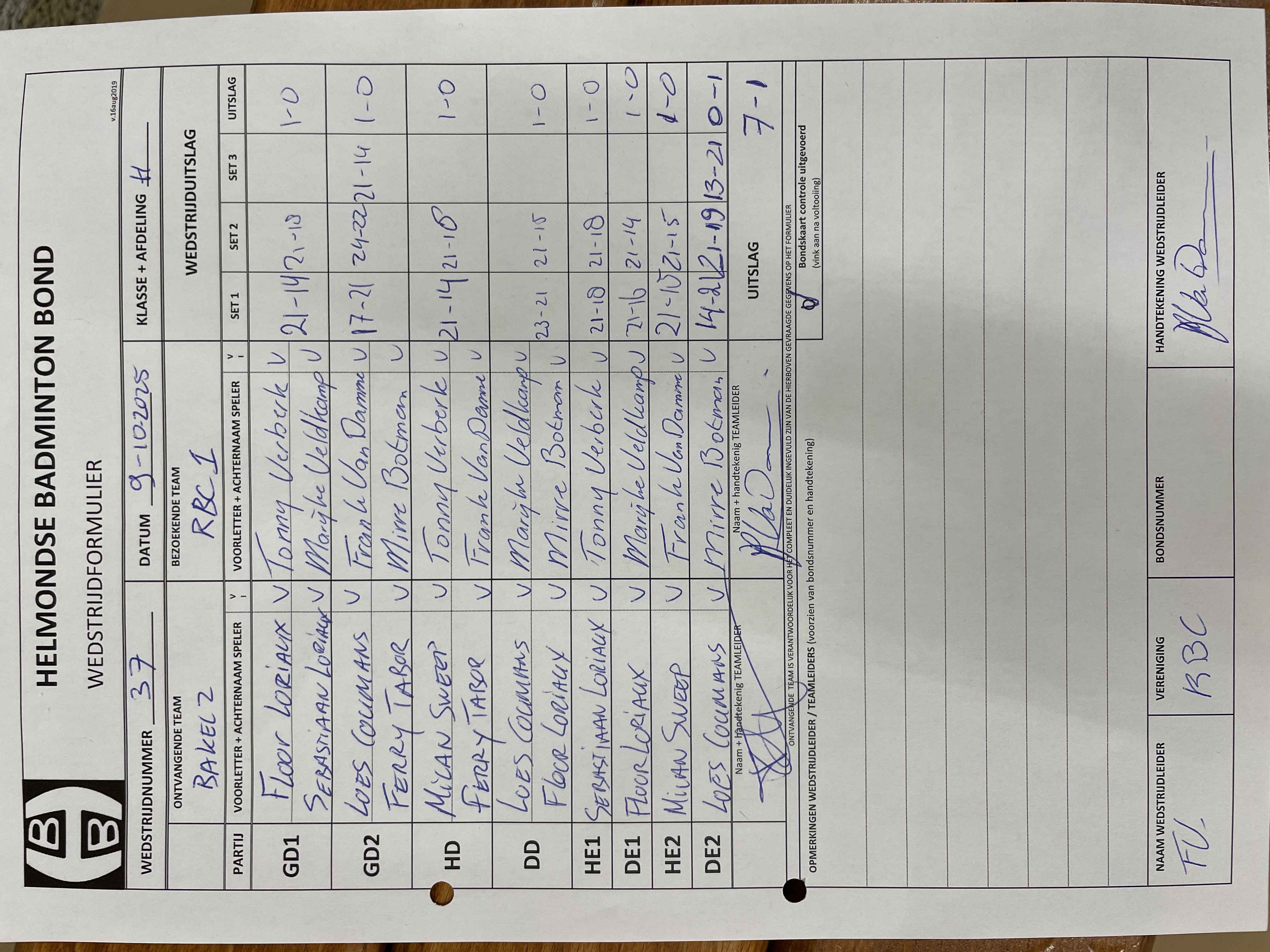 | 37 | do. 09-10-2025 | Bakel 2 | - | RBC 1 | 14 | 7 - 1 | |||