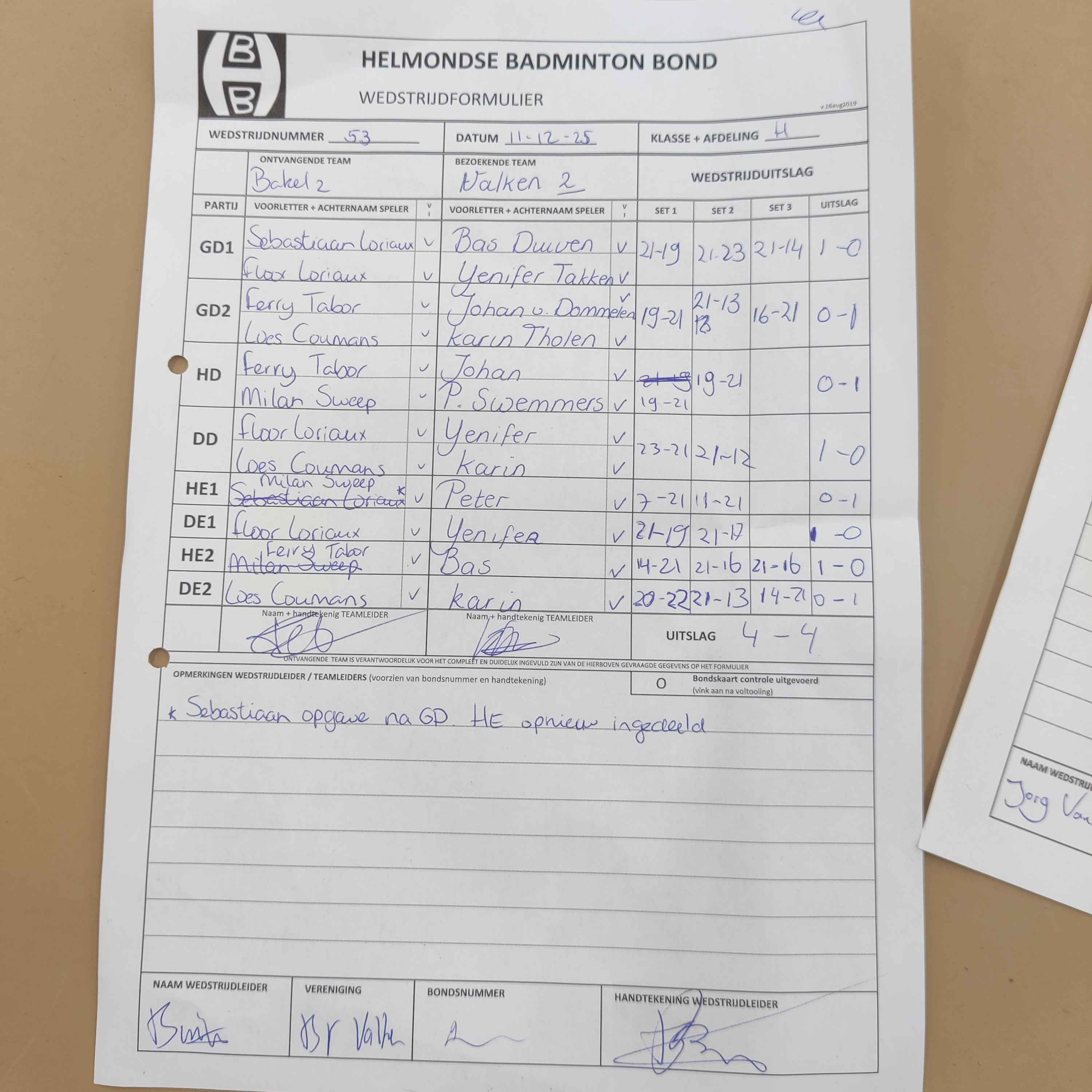 | 53 | do. 11-12-2025 | Bakel 2 | - | De Valken 2 | 2 | - | |||