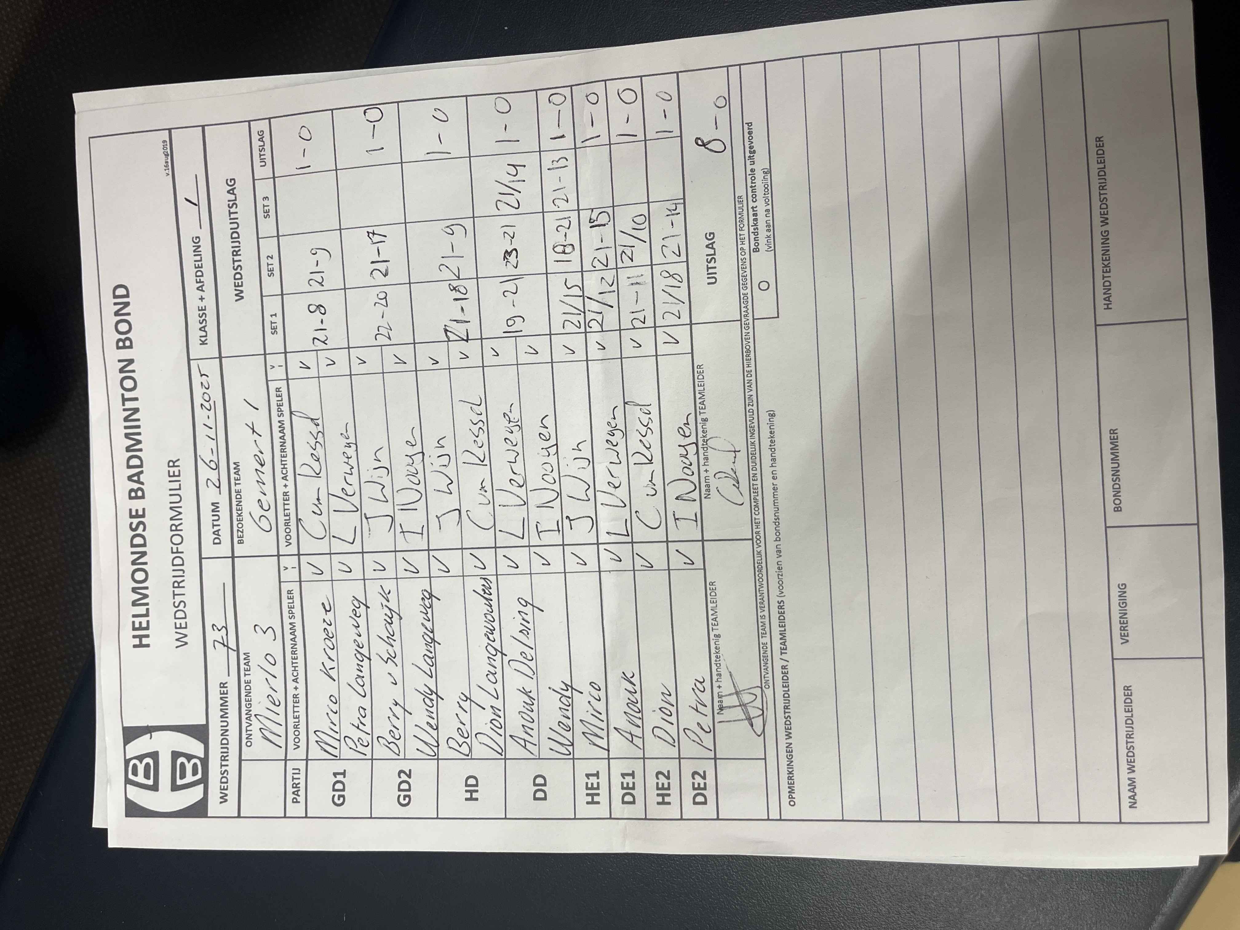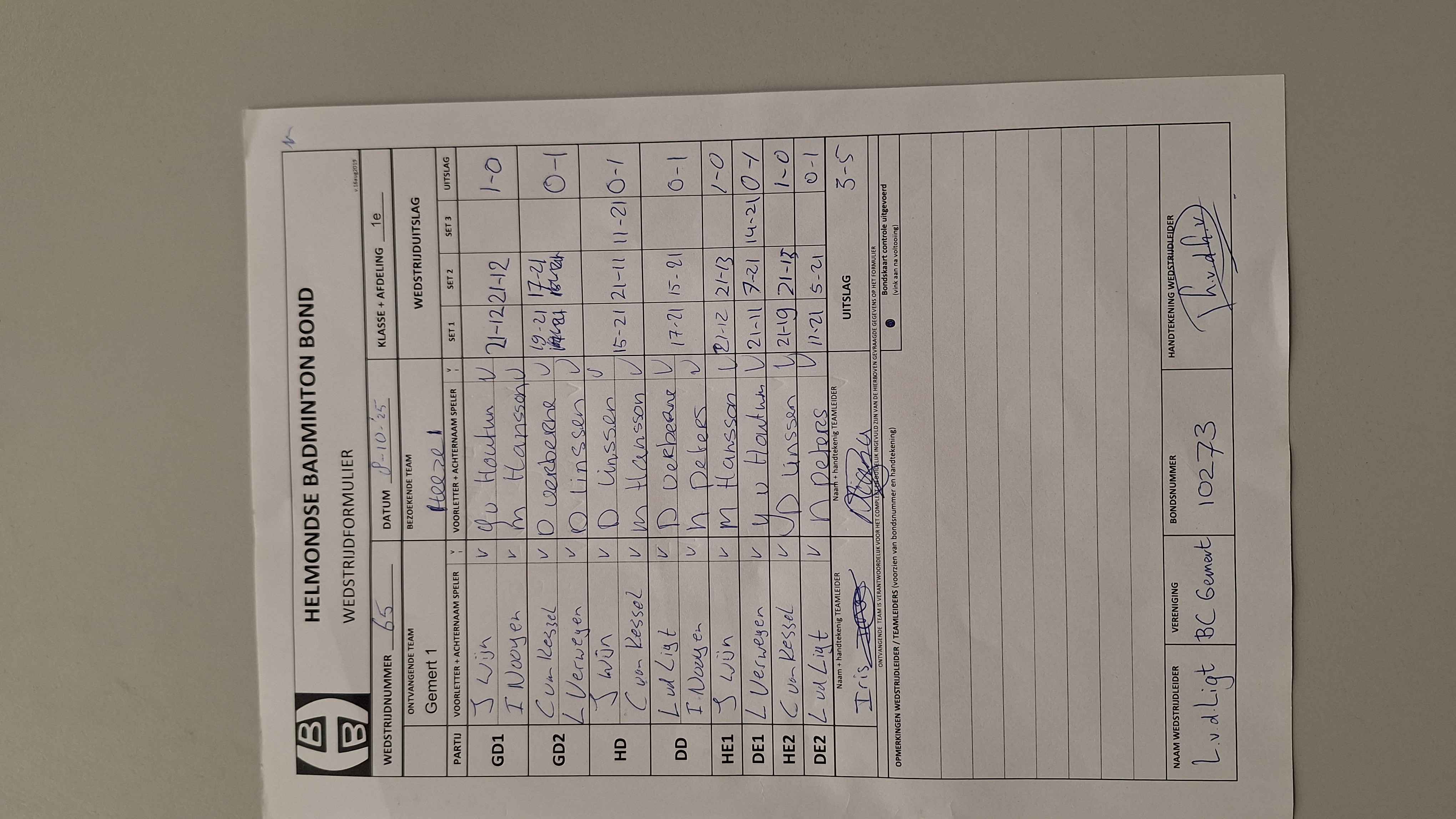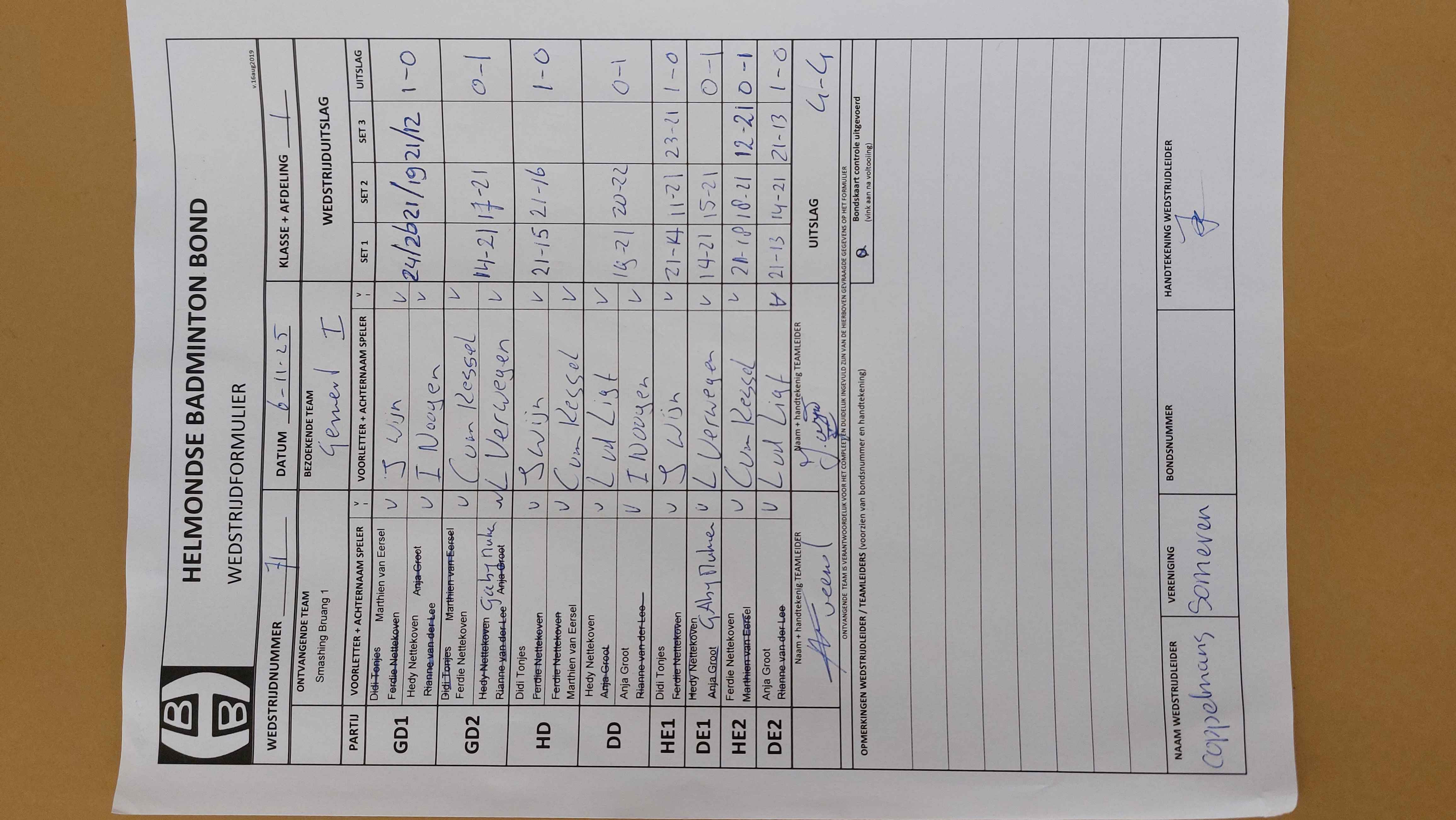 | 1071 | wo. 25-02-2026 | Gemert 1 | - | Smashing Bruang 1 | 13 | - | |||