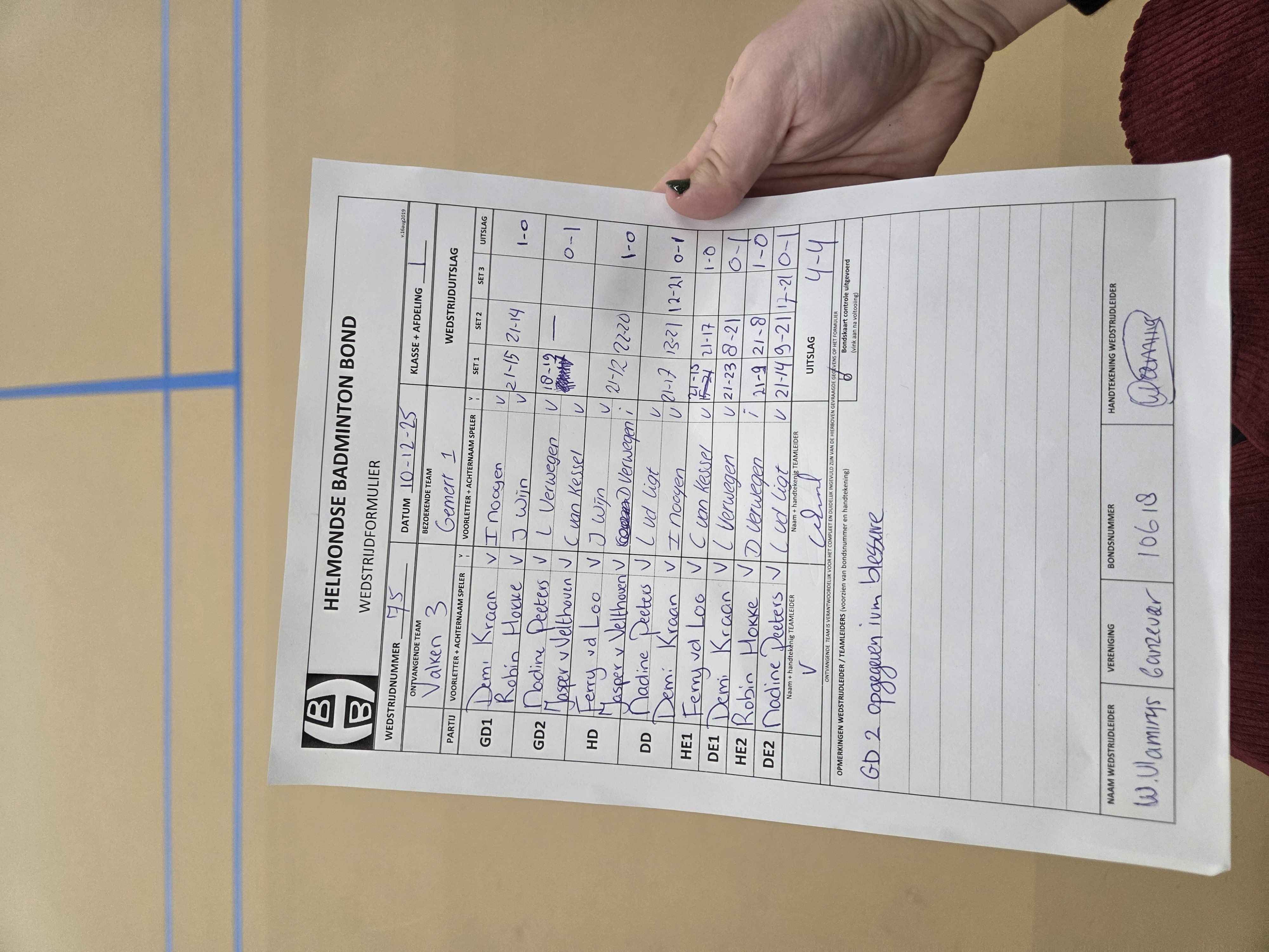 | 1065 | wo. 04-02-2026 | Heeze 1 | - | Gemert 1 | 1 | - | |||