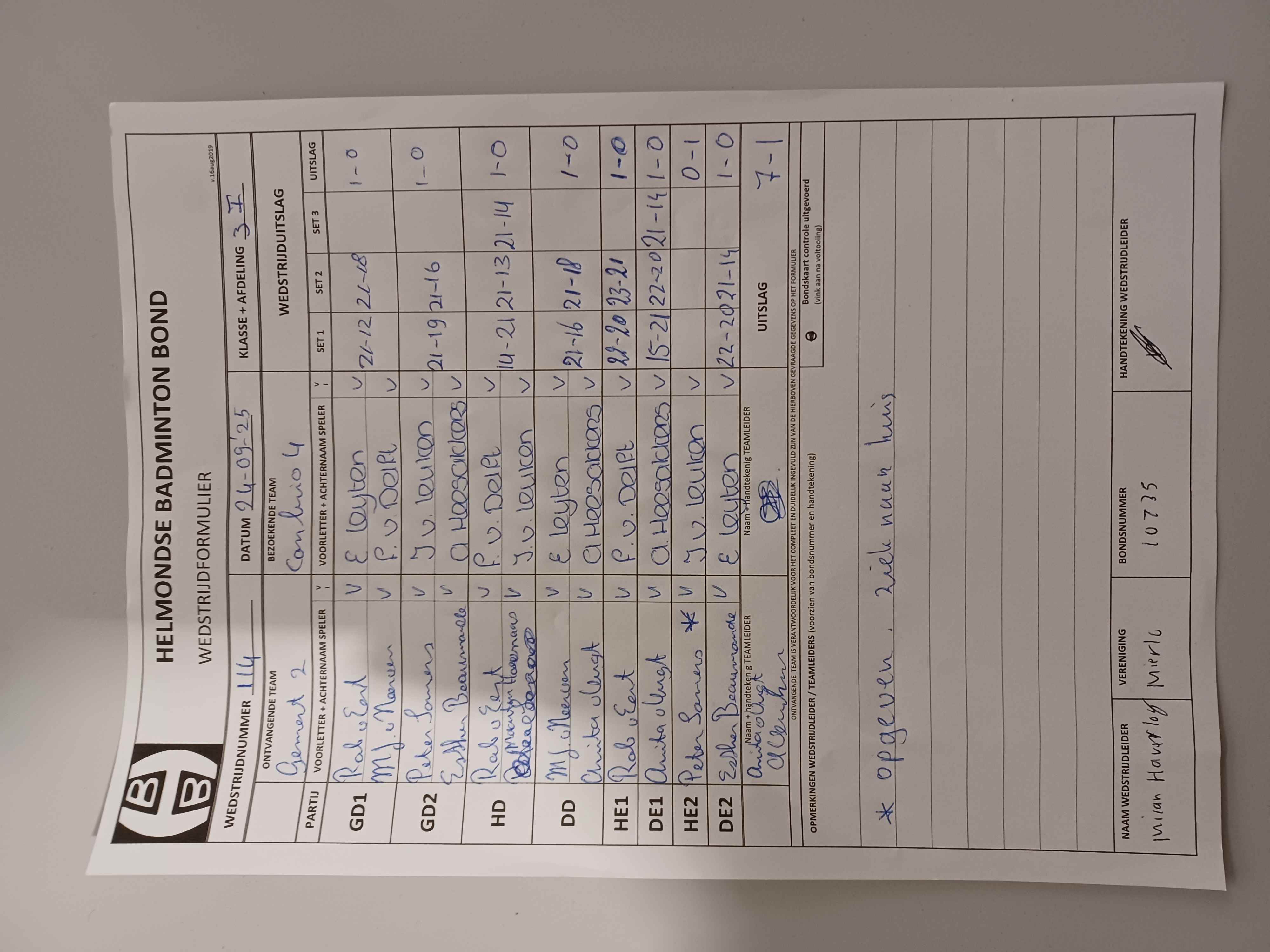 | 114 | wo. 24-09-2025 | Gemert 2 | - | Con Brio 4 | 15 | 7 - 1 | |||