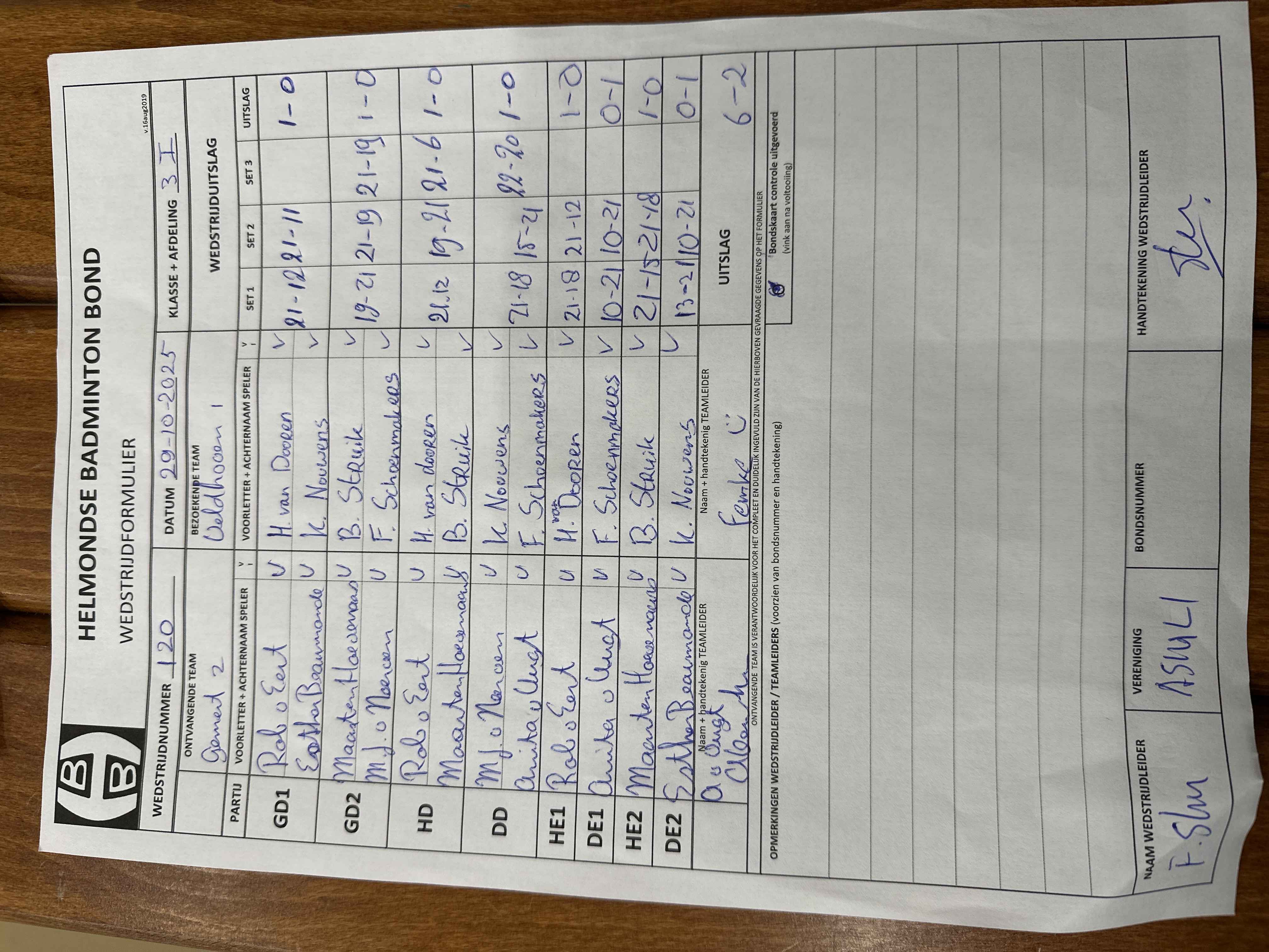 | 120 | wo. 29-10-2025 | Gemert 2 | - | Veldhoven 1 | 11 | 6 - 2 | |||