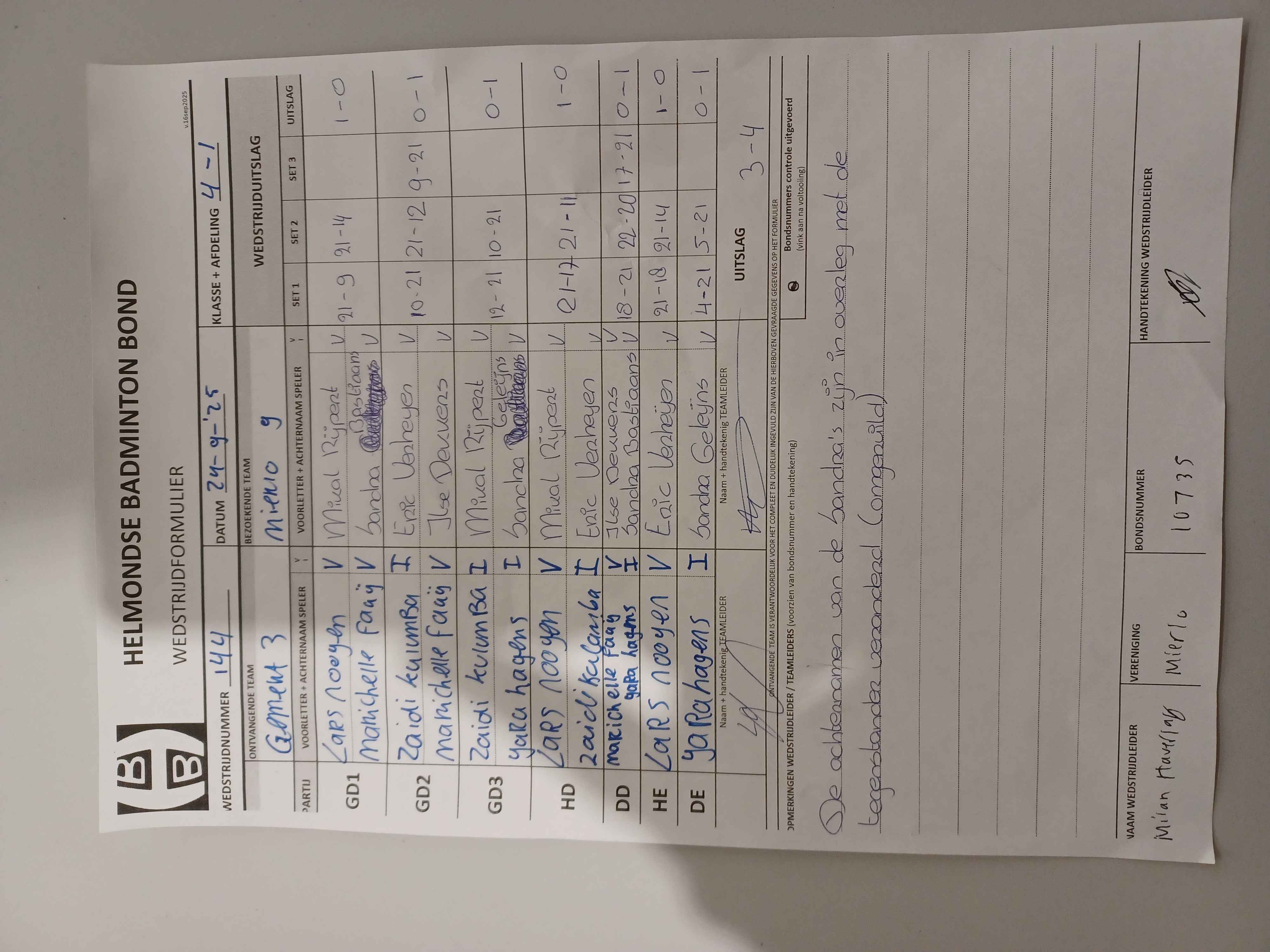 | 144 | wo. 24-09-2025 | Gemert 3 | - | Mierlo 9 | 3 | 3 - 4 | |||