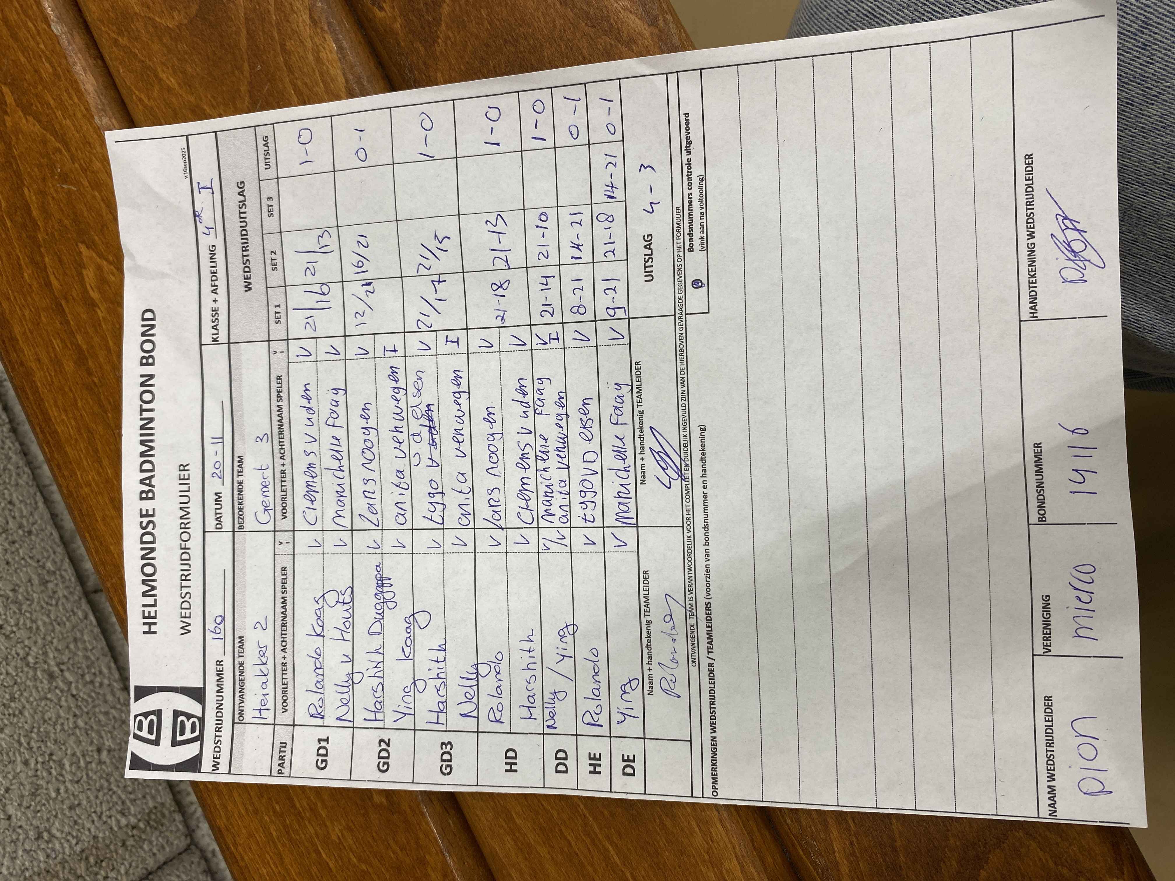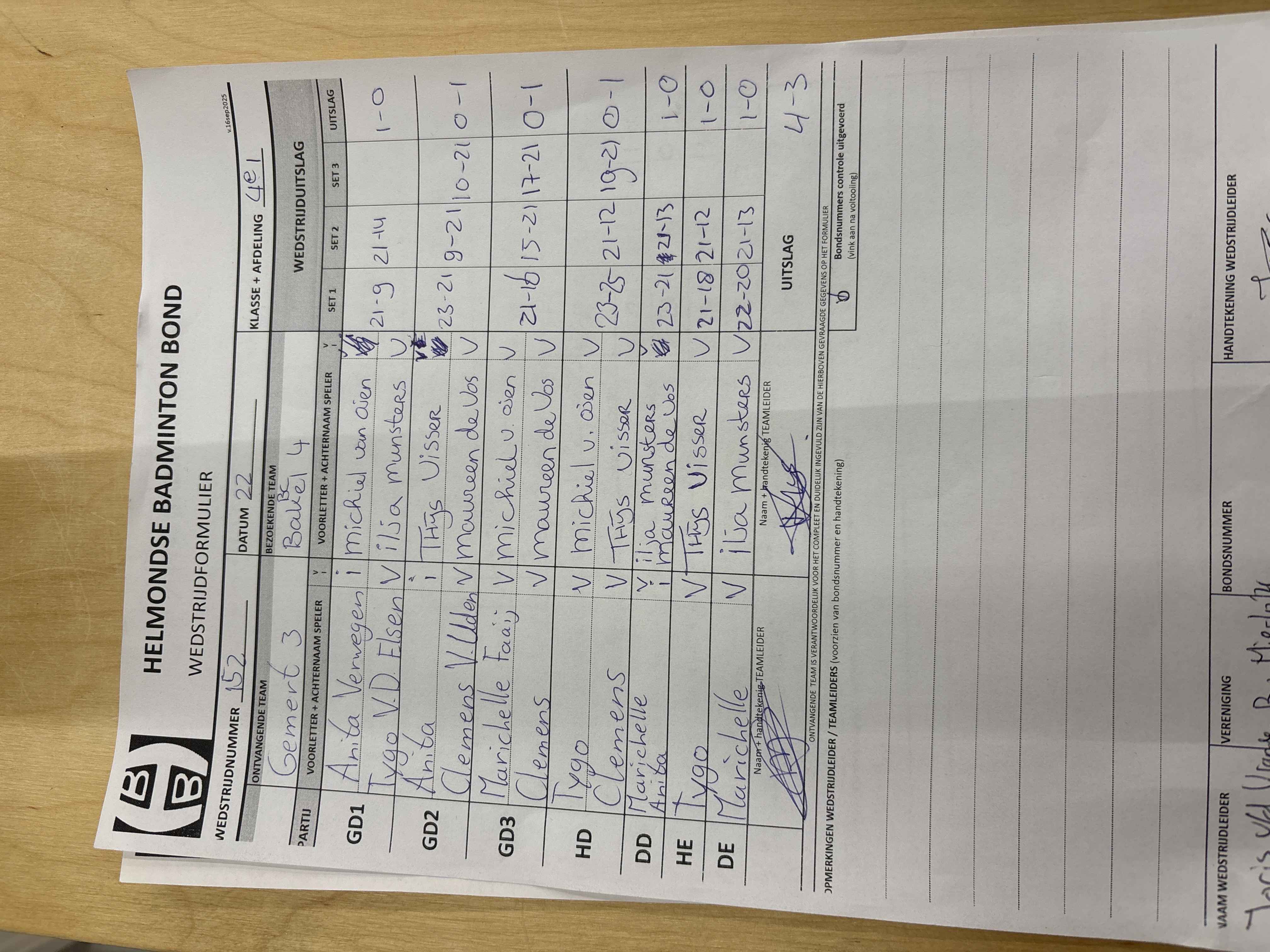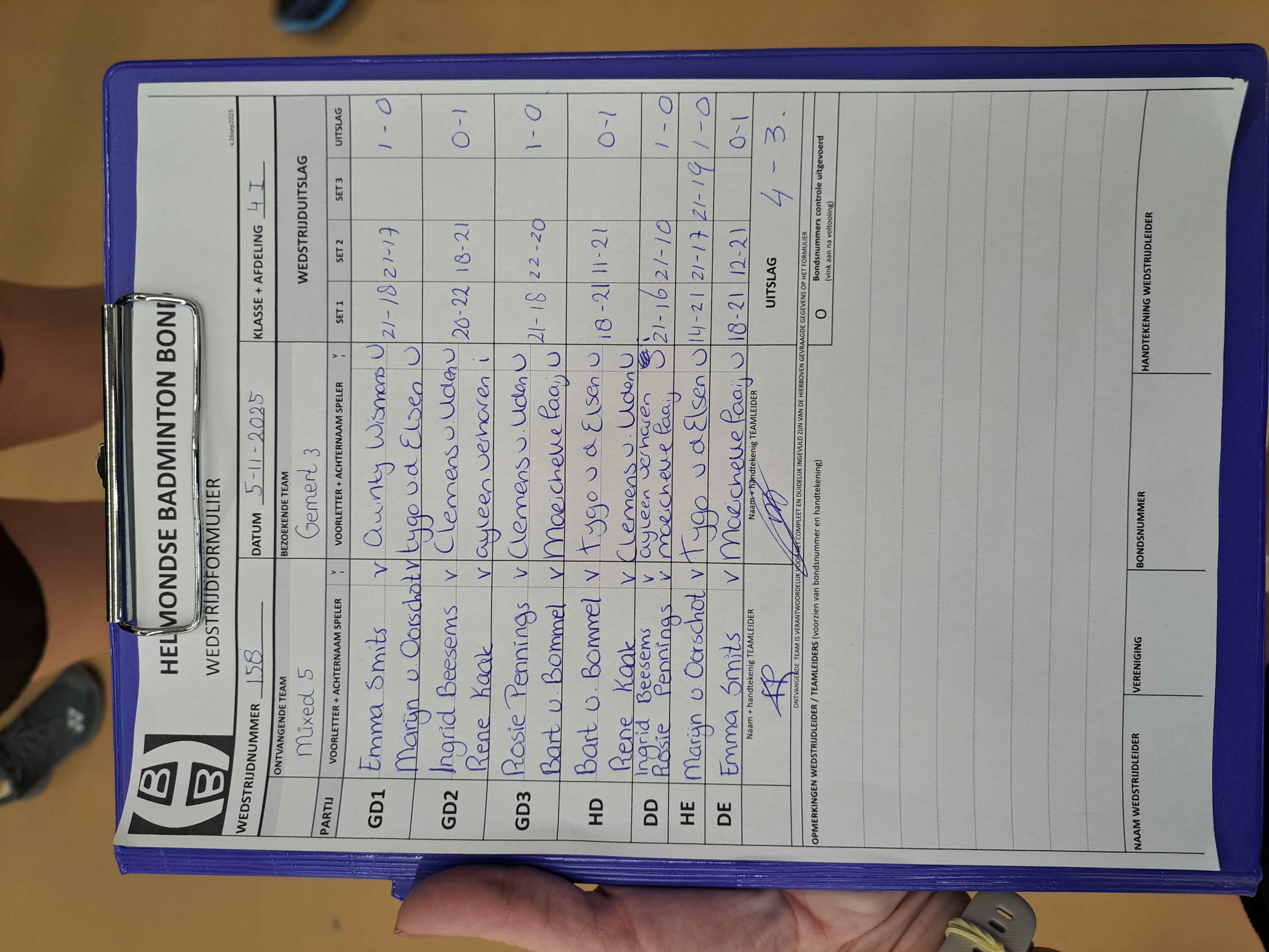 | 158 | wo. 05-11-2025 | Mixed 5 | - | Gemert 3 | 11 | 4 - 3 | |||