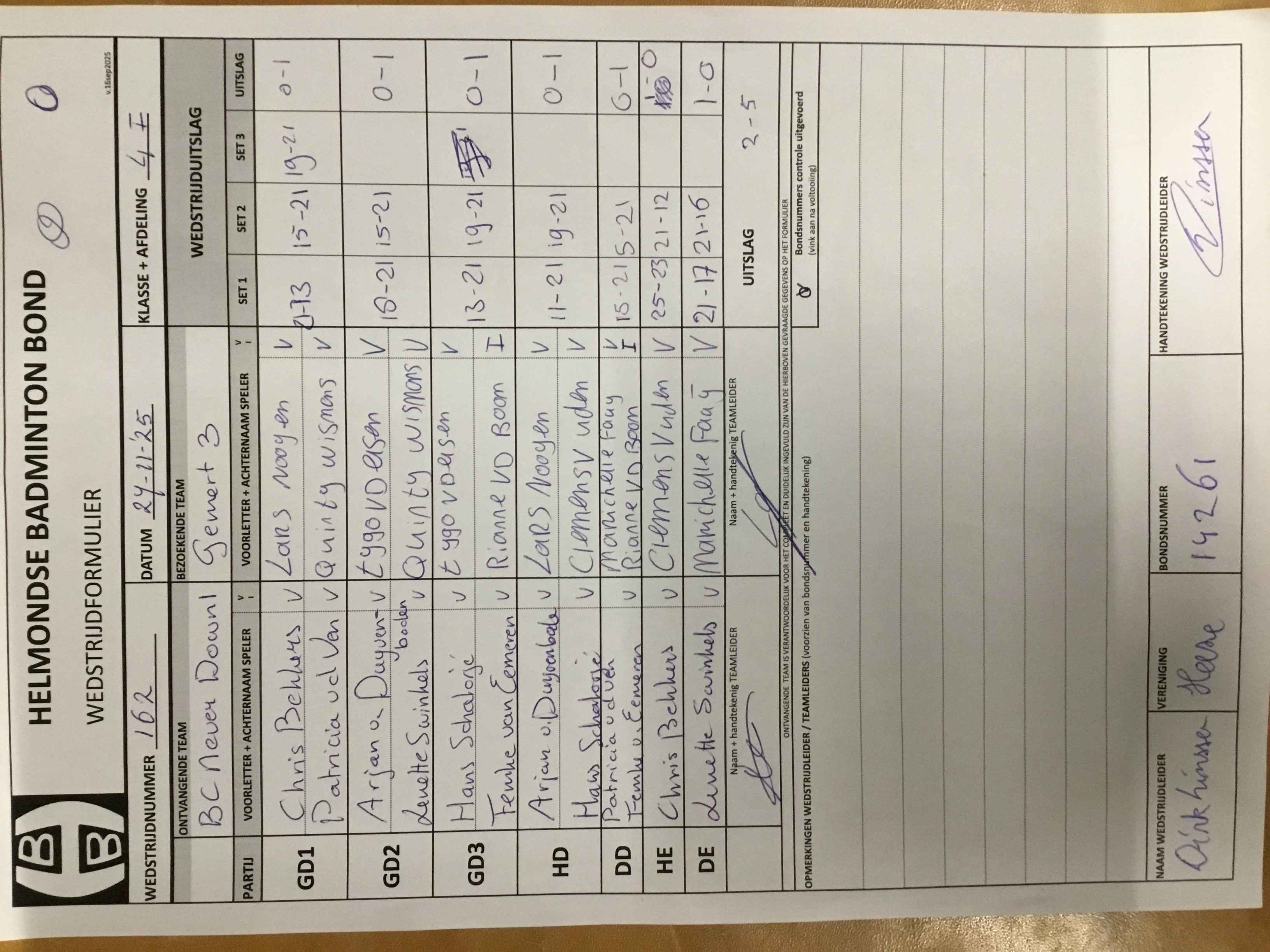 | 162 | do. 27-11-2025 | Never Down 1 | - | Gemert 3 | 13 | - | |||