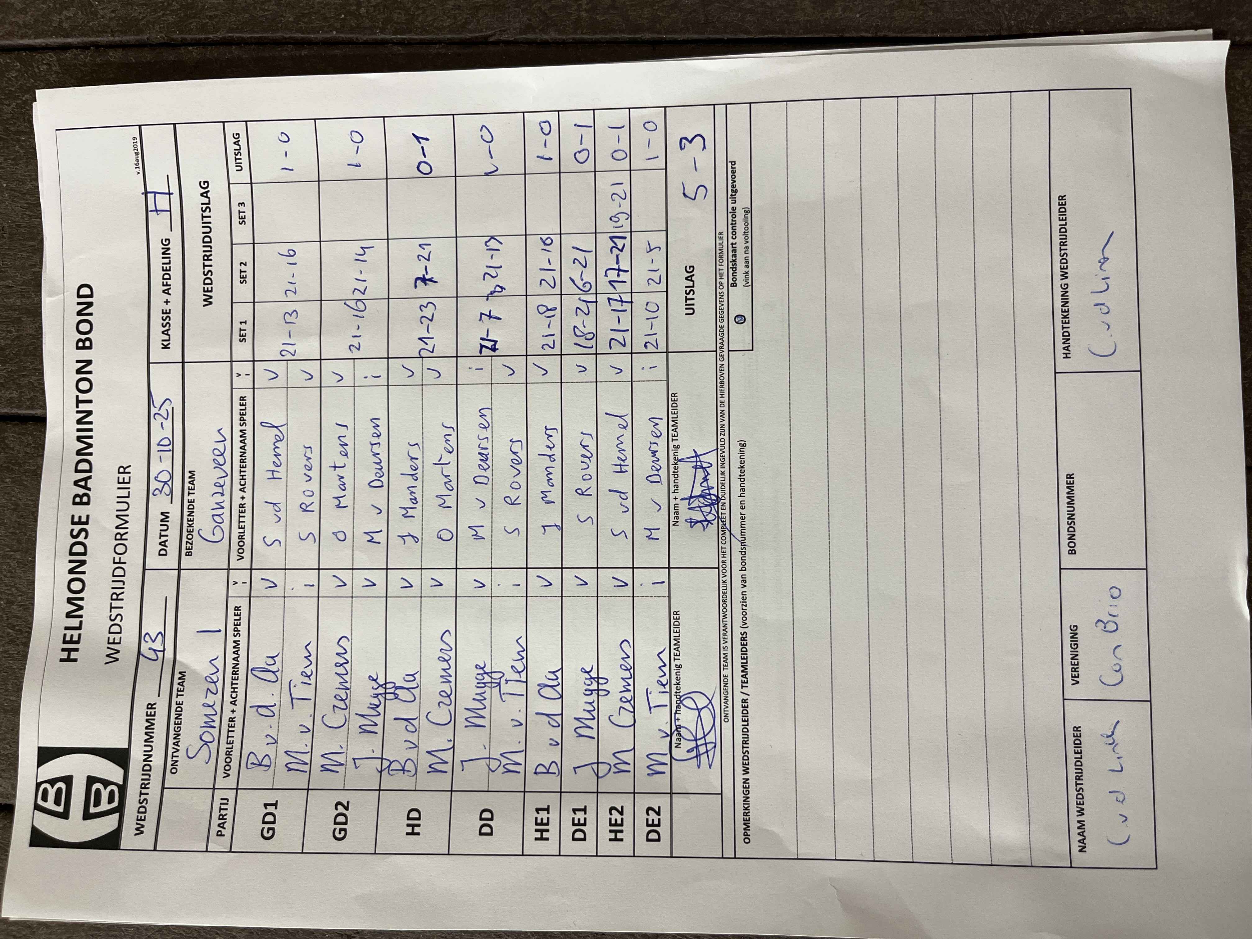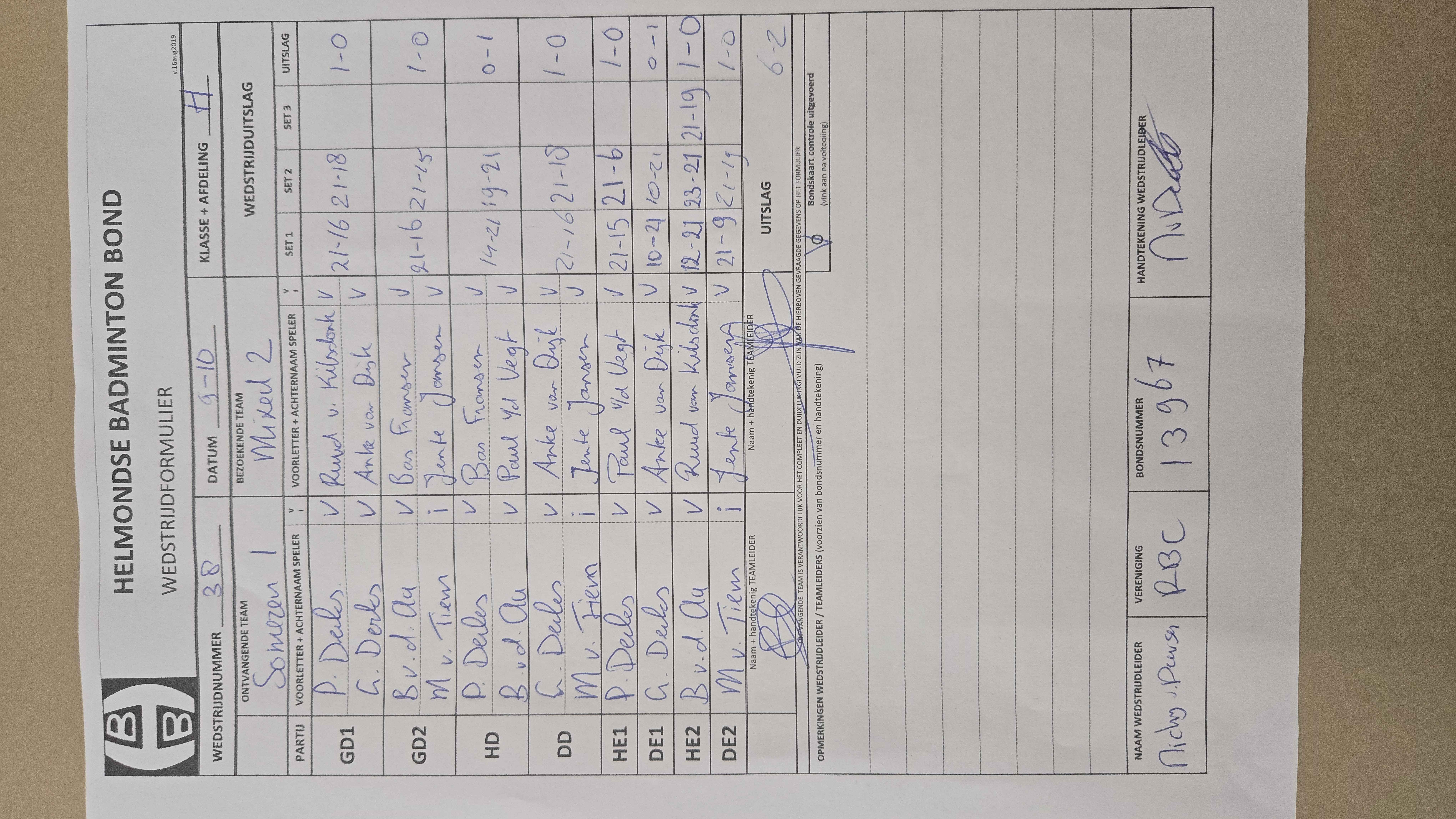 | 38 | do. 09-10-2025 | Someren 1 | - | Mixed 2 | 15 | 6 - 2 | |||