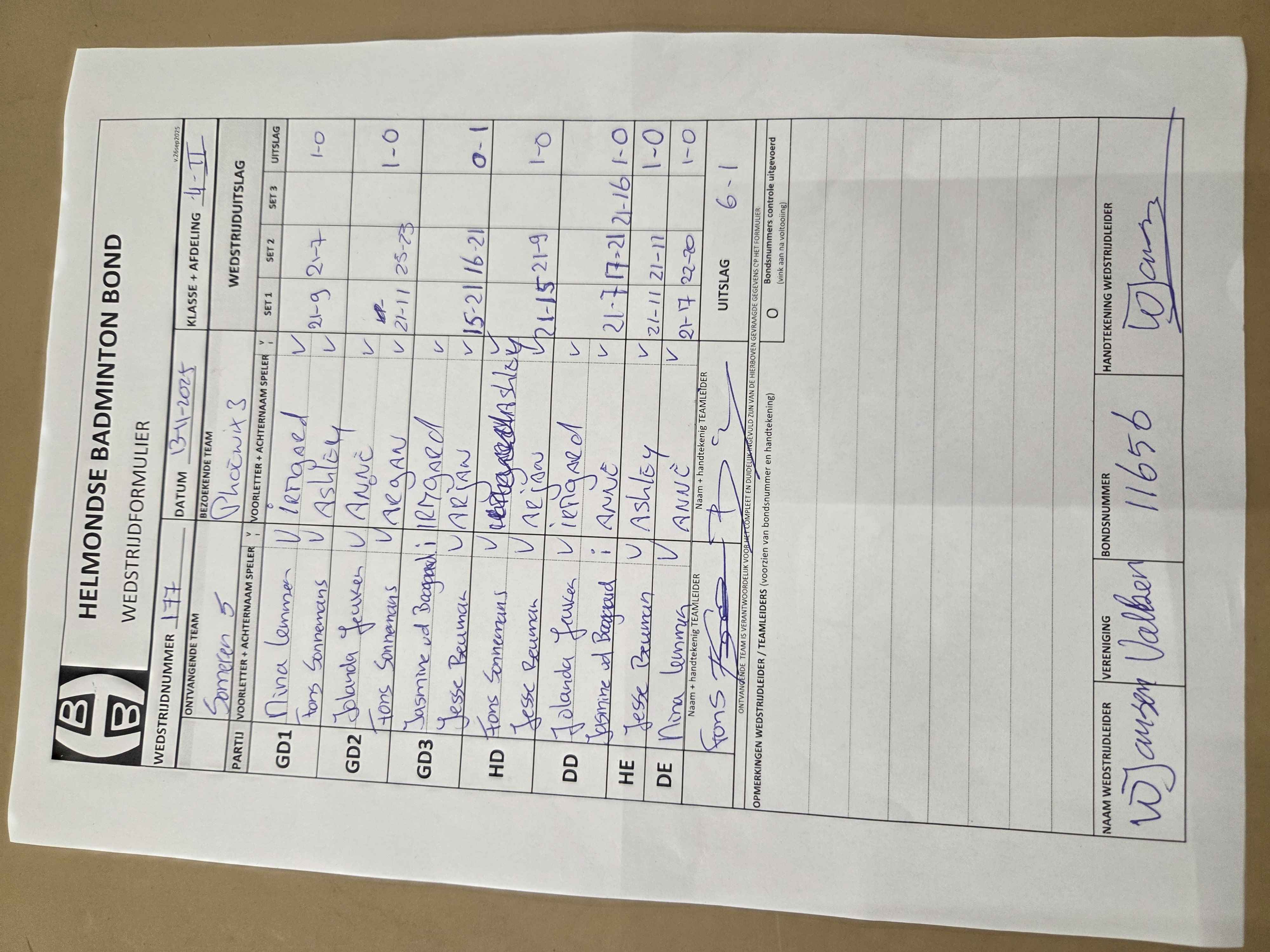 | 177 | do. 13-11-2025 | Someren 5 | - | Phoenix 3 | 5 | - | |||