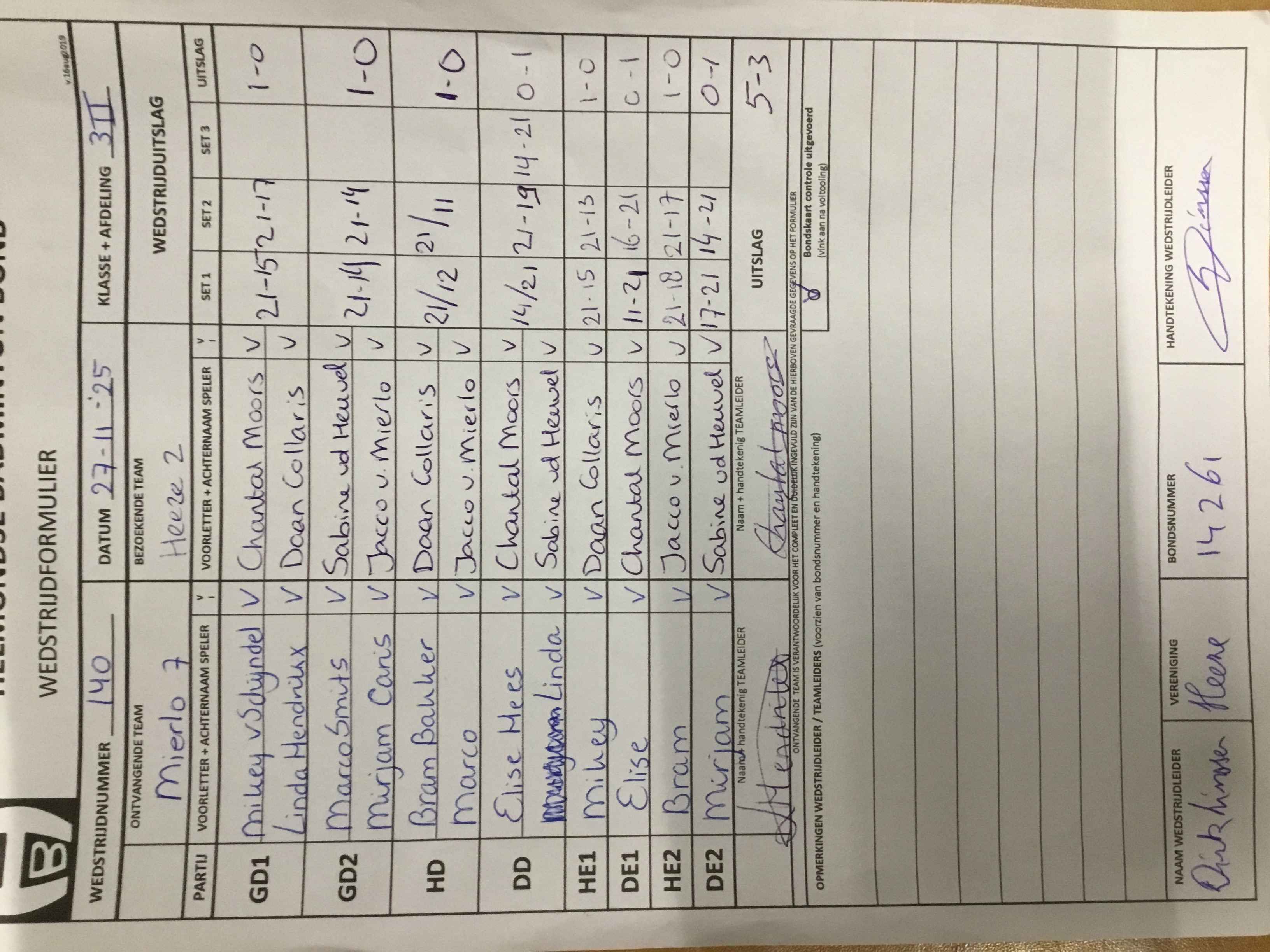 | 140 | do. 27-11-2025 | Mierlo 7 | - | Heeze 2 | 3 | - | |||