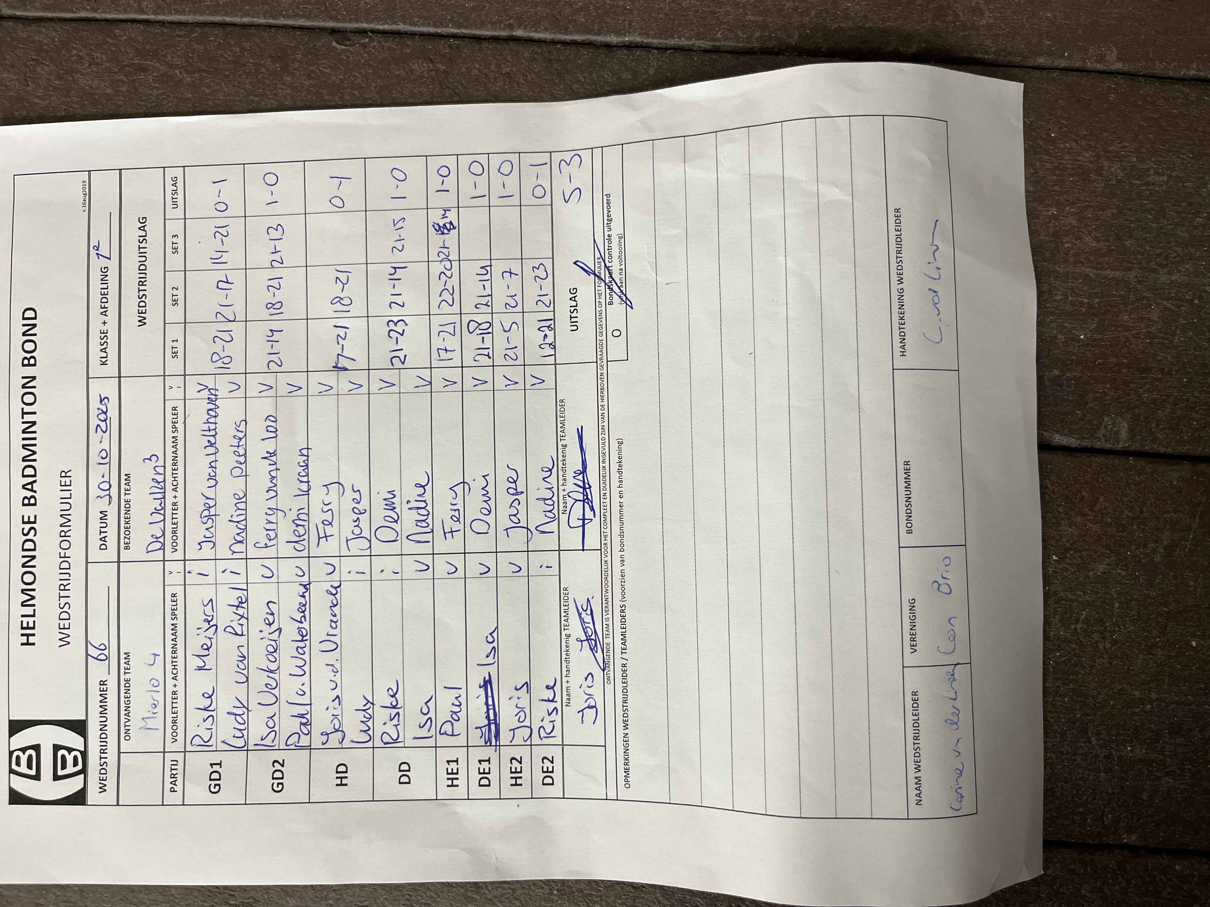| 63 | wo. 08-10-2025 | De Valken 3 | - | Smashing Bruang 1 | 13 | 4 - 4 | |||