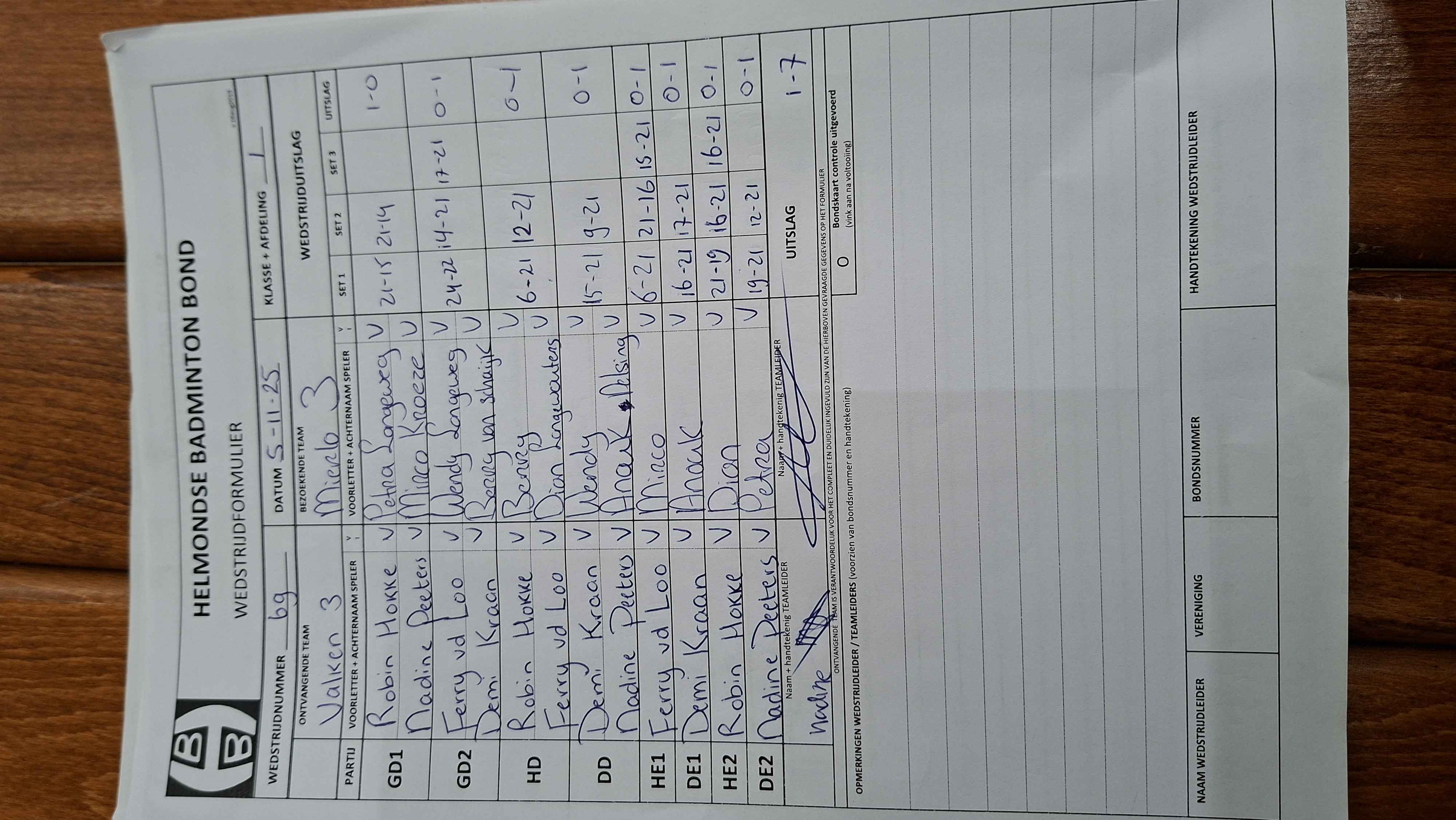 | 69 | wo. 05-11-2025 | De Valken 3 | - | Mierlo 3 | 3 | 1 - 7 | |||