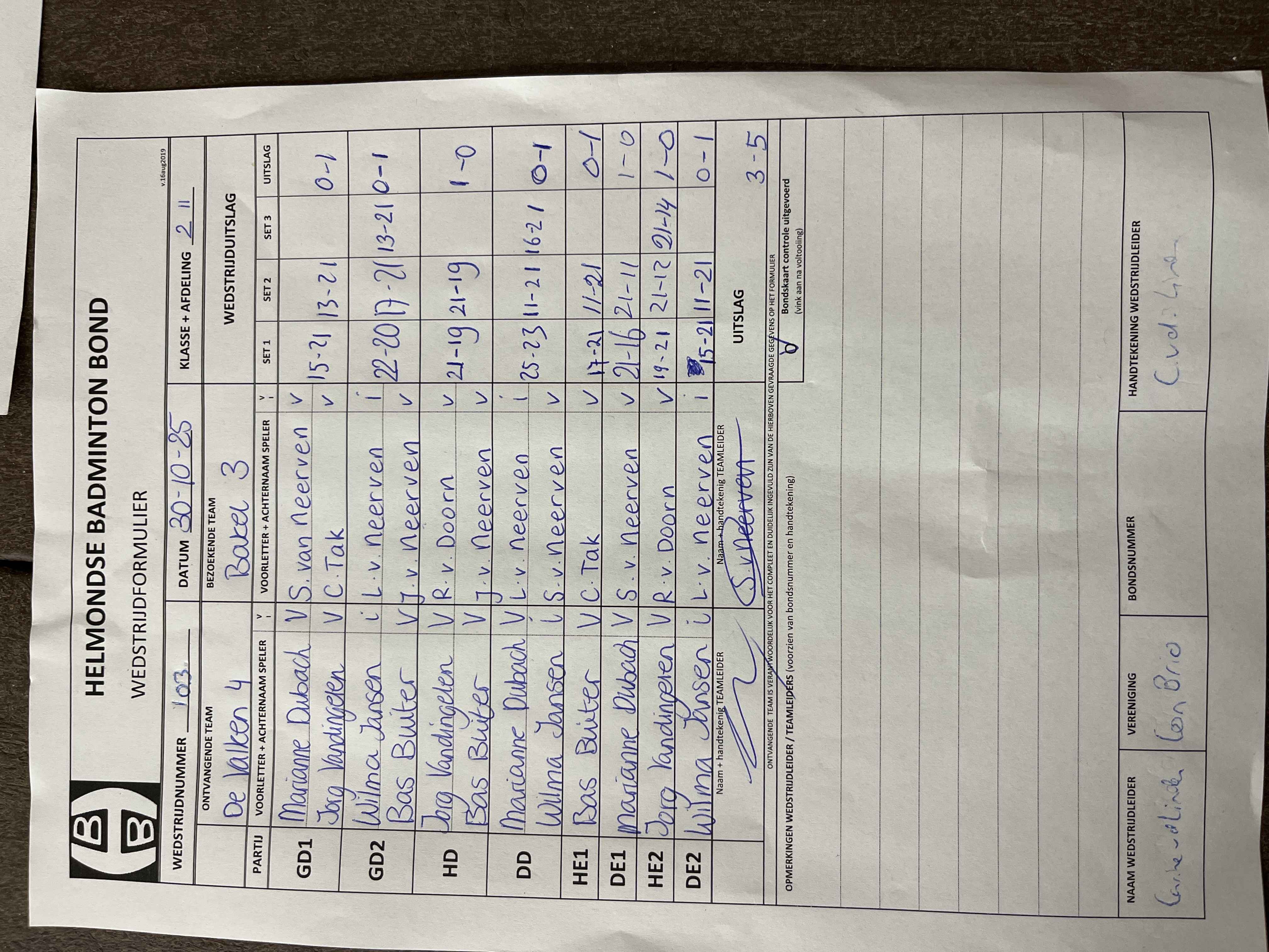 | 102 | do. 30-10-2025 | De Valken 4 | - | Bakel 3 | 14 | 3 - 5 | |||