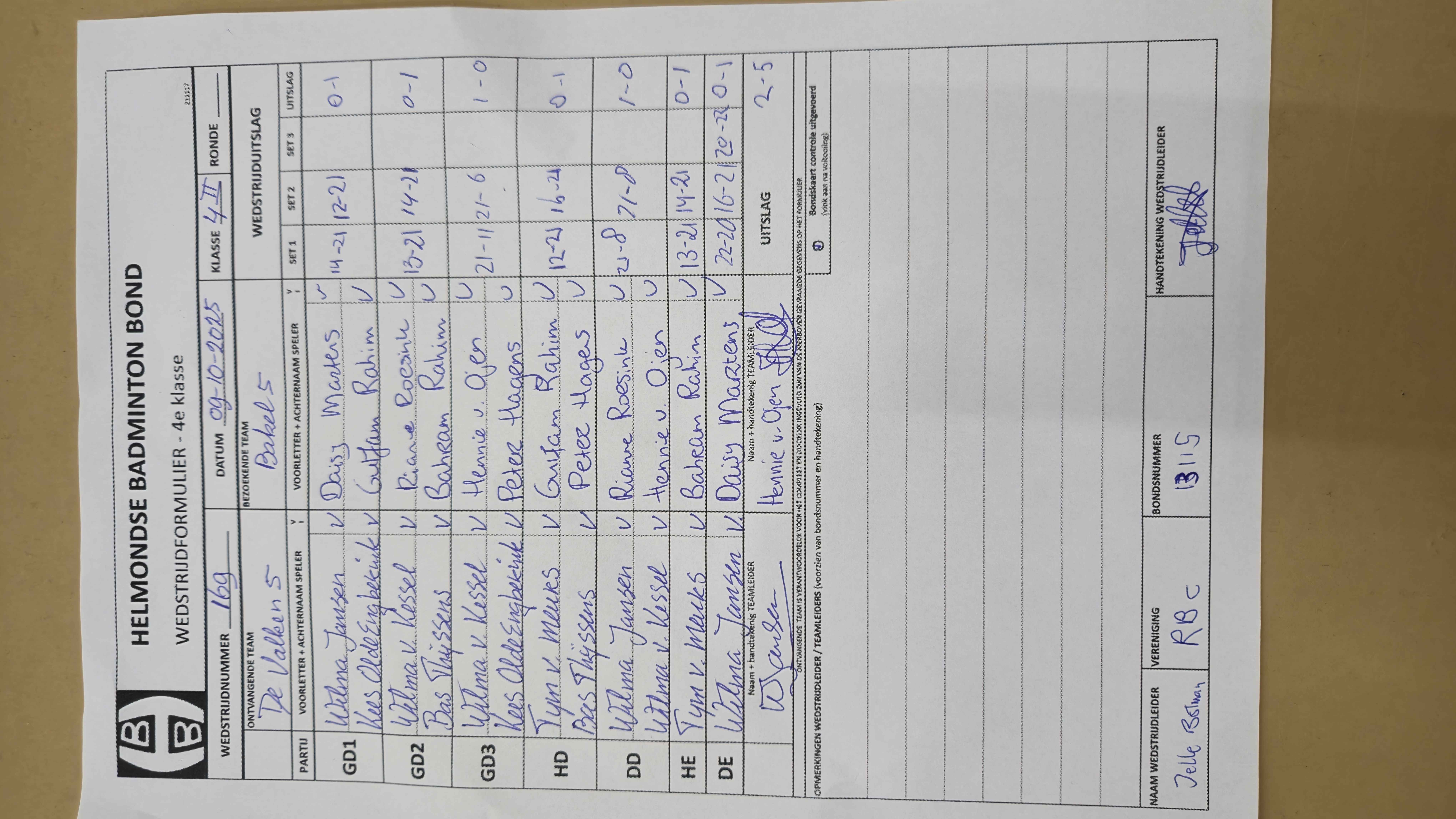 | 169 | do. 09-10-2025 | De Valken 5 | - | Bakel 5 | 2 | 2 - 5 | |||