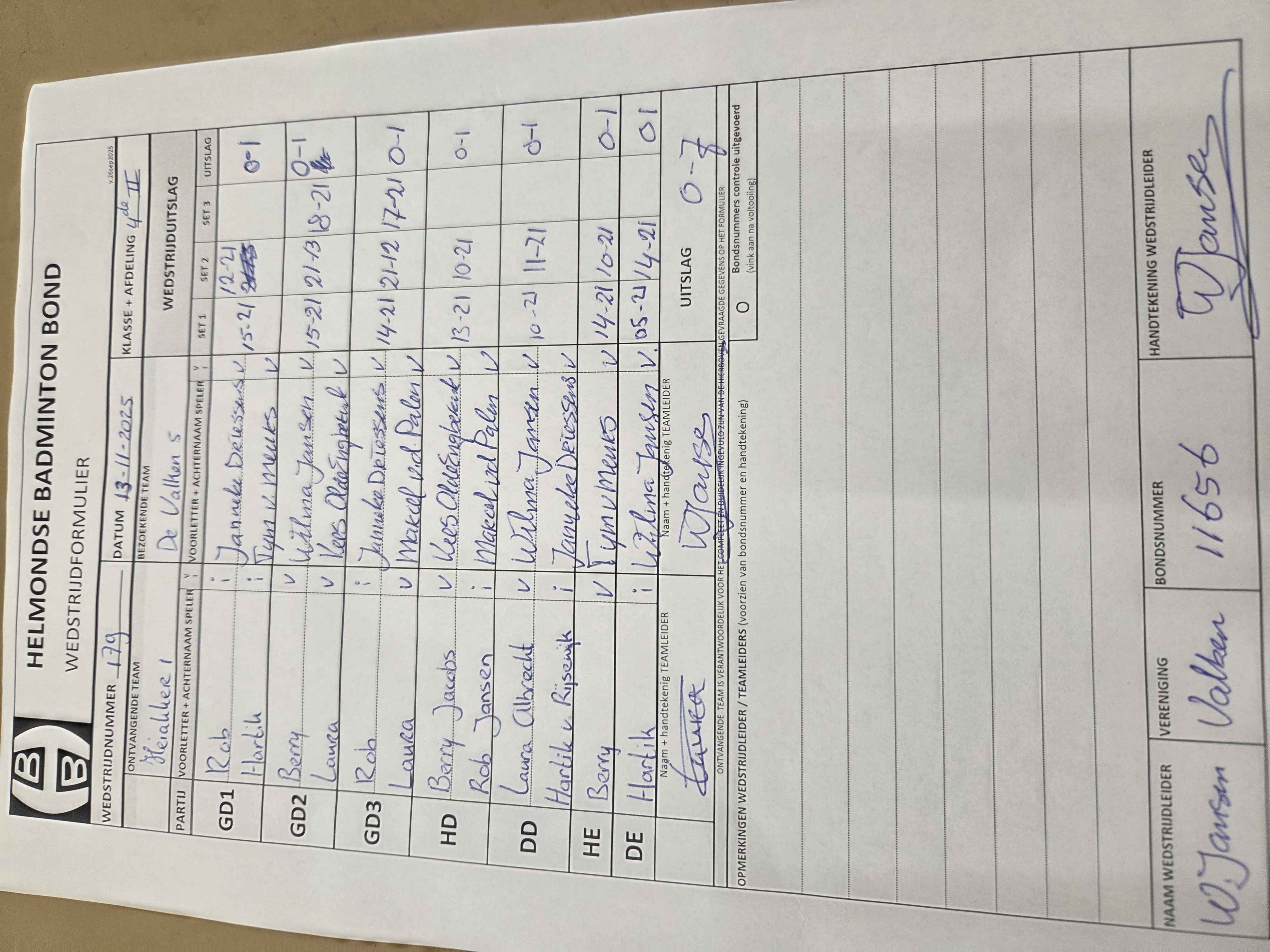 | 179 | do. 13-11-2025 | Heiakker 1 | - | De Valken 5 | 12 | - | |||