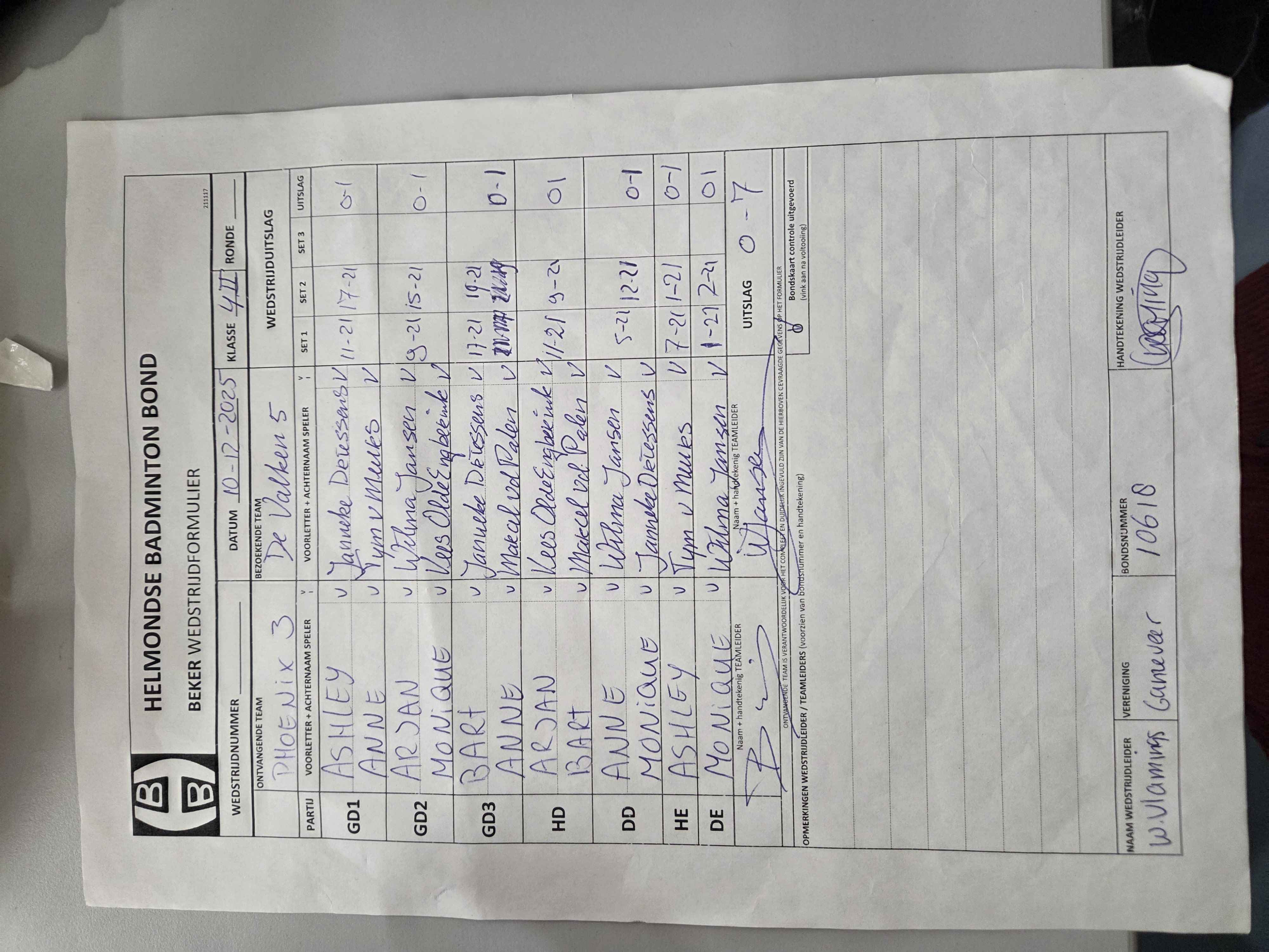 | 3017 | wo. 03-12-2025 | Mixed 5 | - | De Valken 5 | 14 | - | |||
