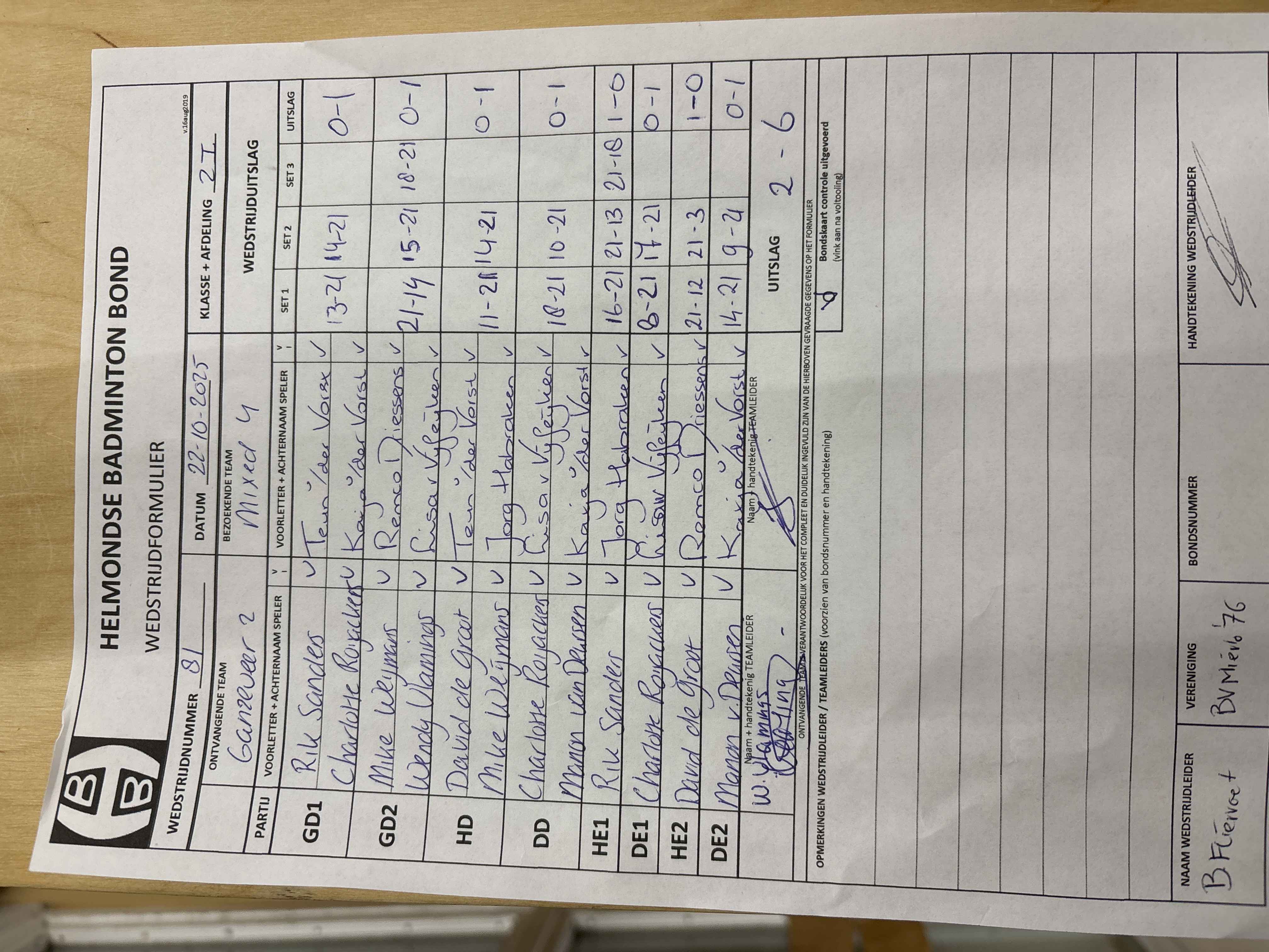 | 81 | wo. 22-10-2025 | Ganzeveer 2 | - | Mixed 4 | 3 | 2 - 6 | |||